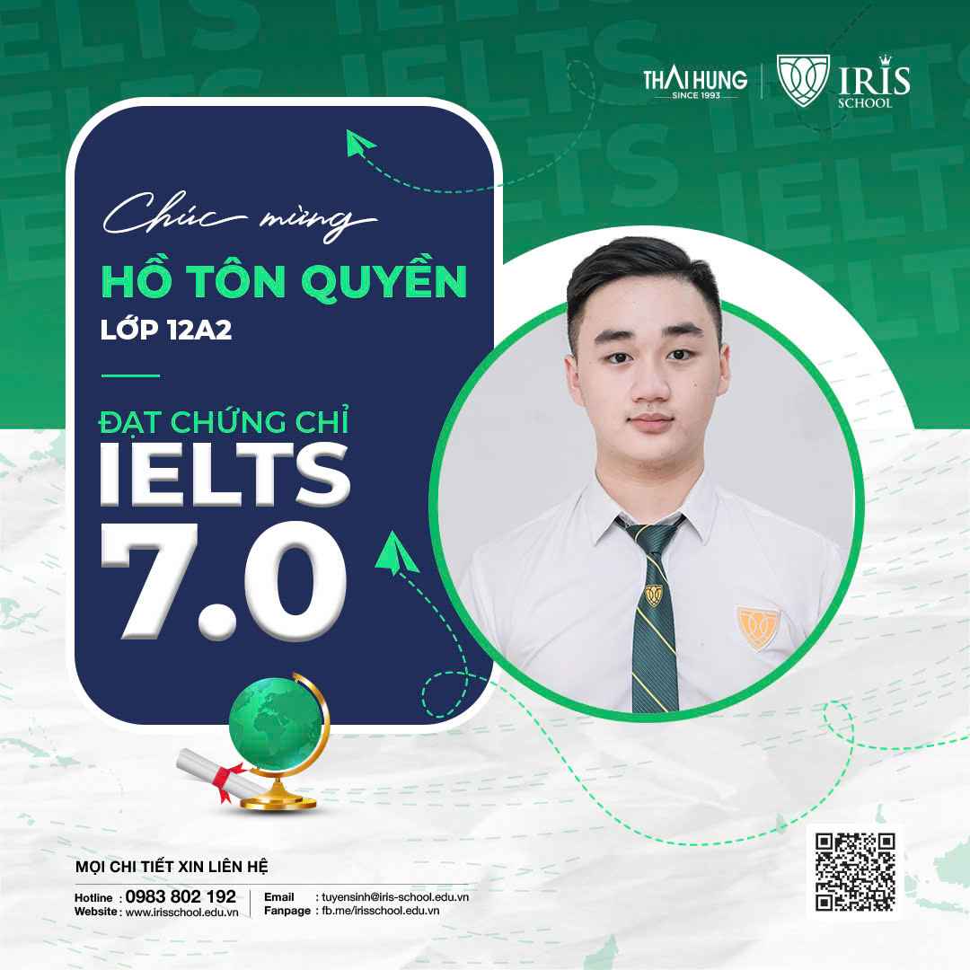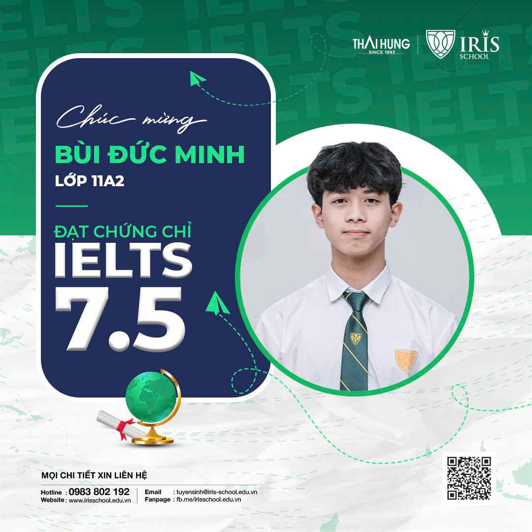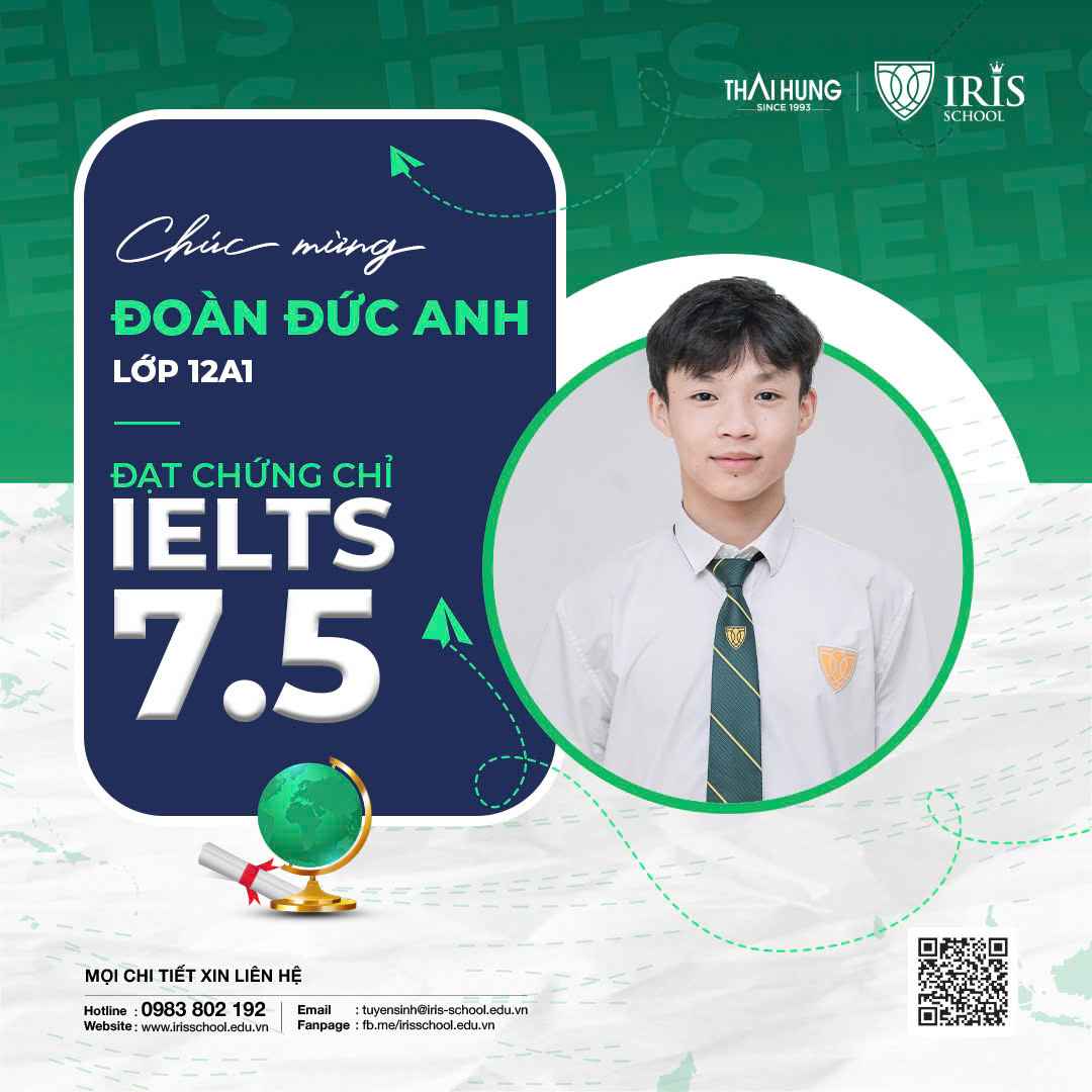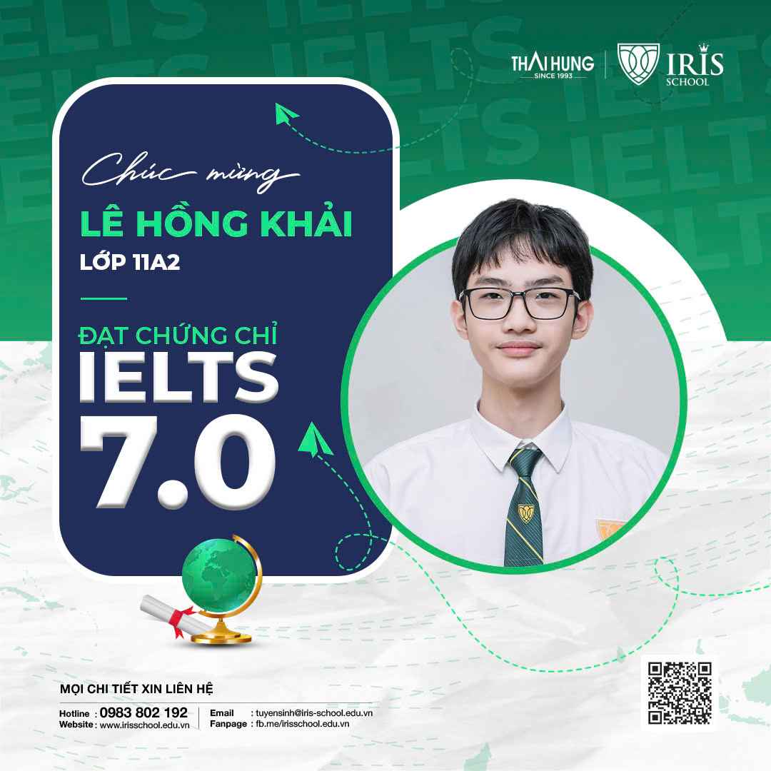 Trong thời gian vừa qua, niềm vui lớn đã đến với thầy cô và Irisers khi nhận được tin vui về thành tích vượt trội của các học sinh trong kỳ thi IELTS – một trong những chứng chỉ tiếng Anh quốc tế được công nhận toàn cầu.