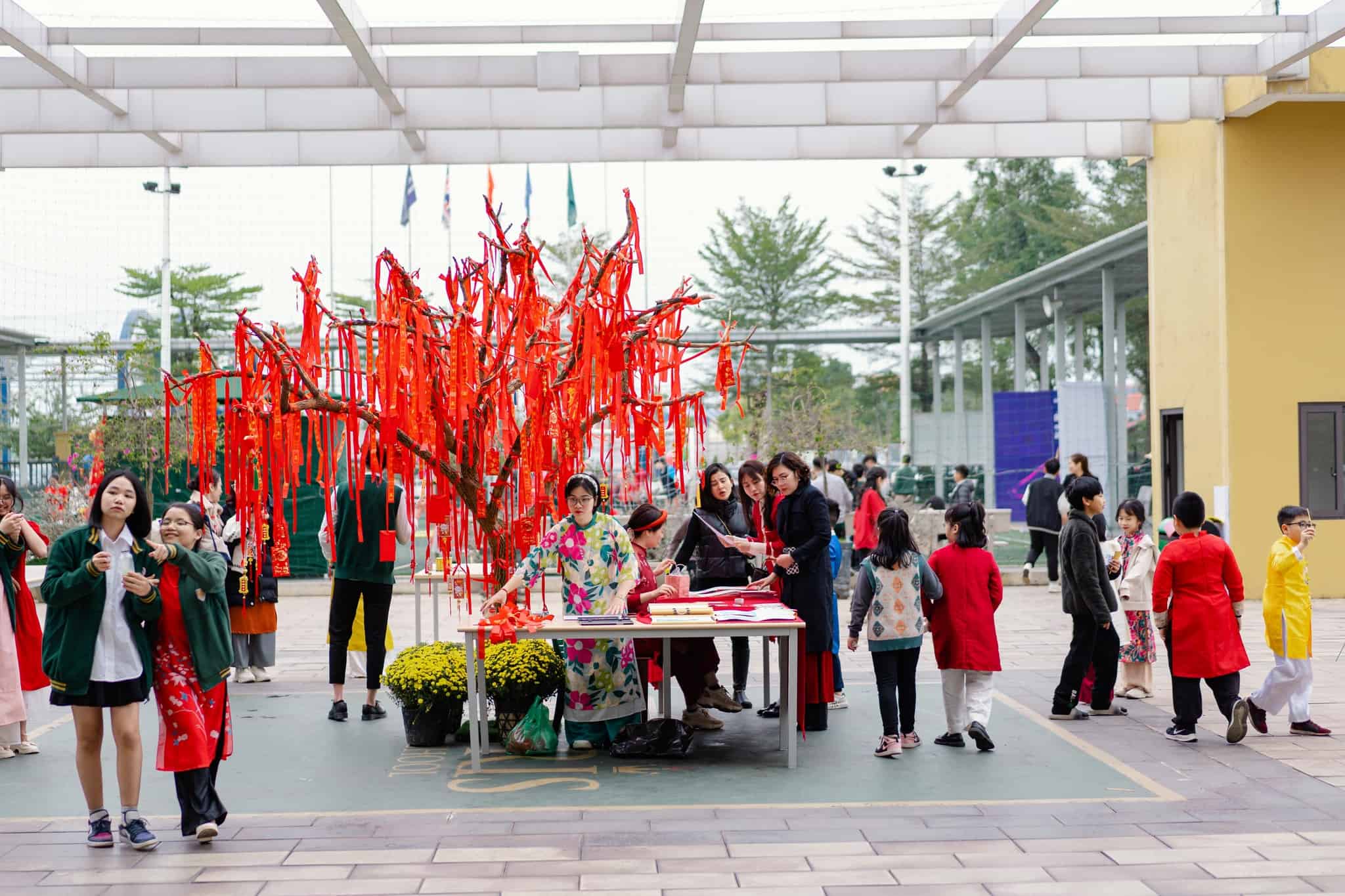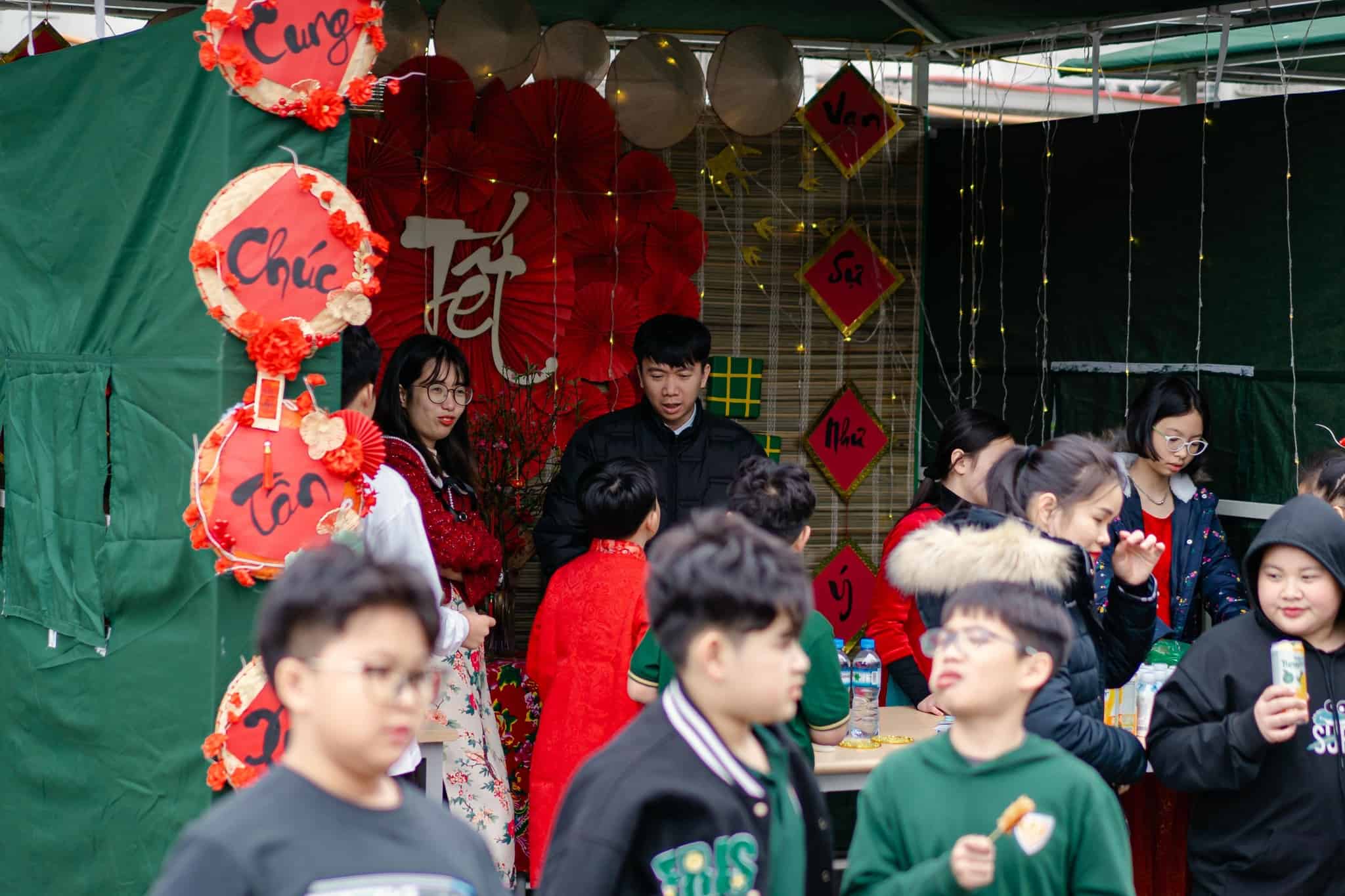 Gian hàng của các bạn học sinh bày bán đầy đủ các mặt hàng từ ẩm thực, đồ uống đến những đồ trang trí Tết. 40% lợi nhuận thu được sẽ được các lớp giữ lại để tổ chức các hoạt động chung của lớp và 60% sẽ được trích gửi vào quỹ Từ thiện của nhà trường. Đây là một hoạt động vô cùng ý nghĩa nhằm nâng cao tinh thần “tương thân tương ái”, giúp các con biết yêu thương và sống có trách nhiệm hơn.