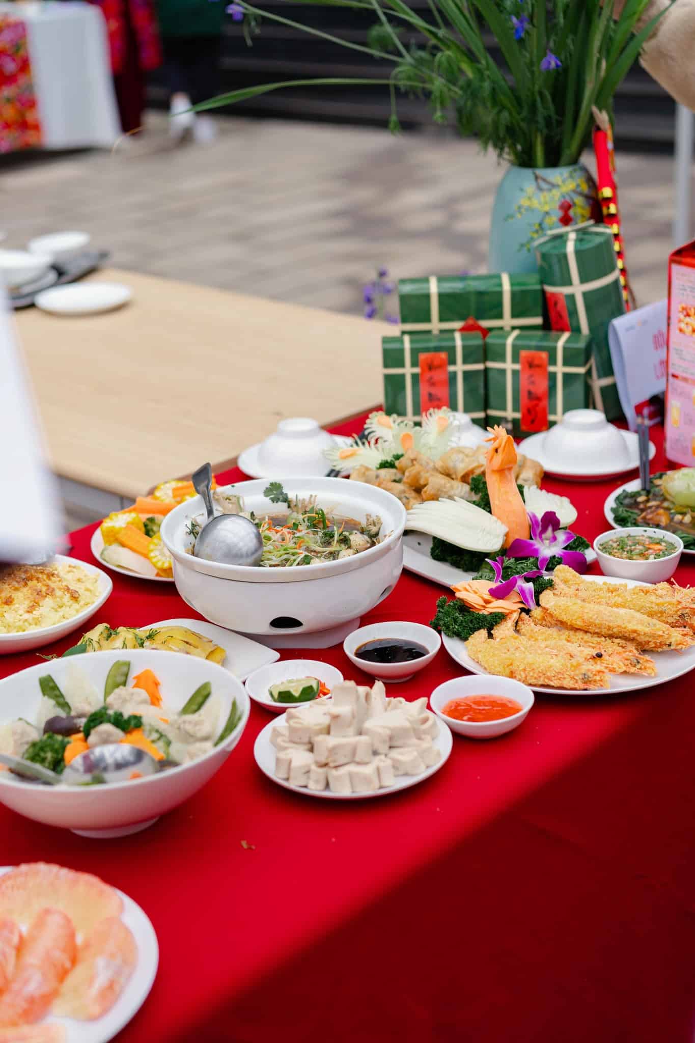 Đến với Hội thi nấu ăn “Ẩm thực mùa Xuân”, Irisers đã mang đến rất nhiều món ăn đặc trưng ngày Tết như: Bánh chưng, gà luộc, giò lụa, nem rán, xôi gấc, canh măng, canh bóng, dưa hành, củ kiệu… Bên cạnh đó, các bạn cũng kết hợp những món ăn mới để tăng hương vị ngày Tết như beef steak, salad…