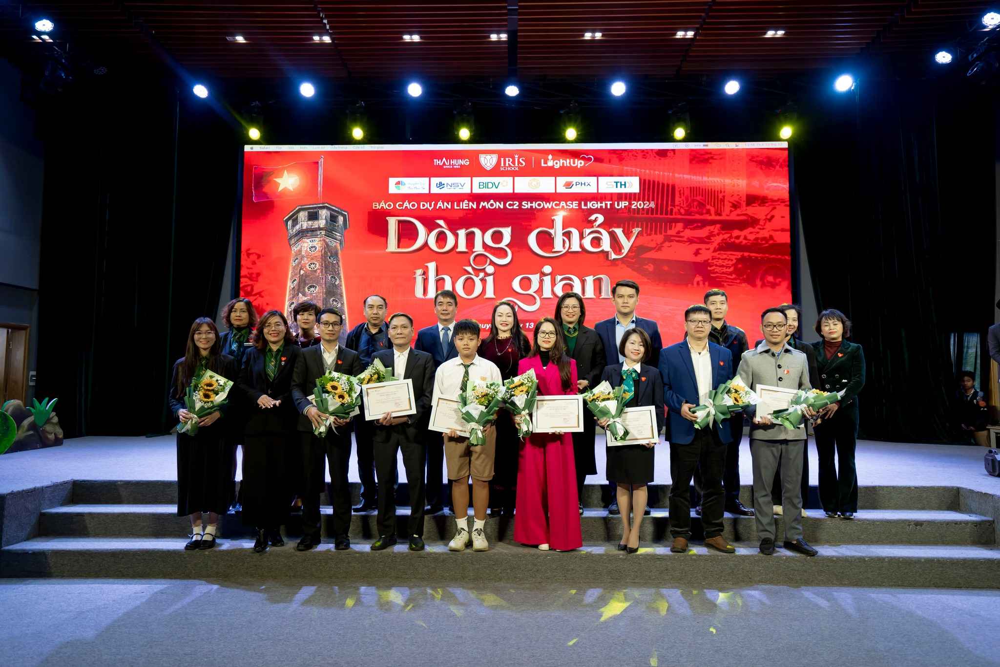 Ngày 13/12/2024, thầy cô và các con học sinh cấp THCS đã tổ chức báo cáo dự án liên môn Lịch sử – Địa lí – Ngữ văn – Mĩ thuật – Âm nhạc – GDCD – Công nghệ và LiM (Leader In Me – Chương trình Lãnh đạo bản thân) C2 Showcase Light Up 2024 với chủ đề “Dòng chảy thời gian” nhằm gây quỹ Hoa diên vĩ xứ Trà với các hoạt động: Biểu diễn nhạc kịch, triển lãm dự án học tập liên môn, bán hàng gây quỹ cũng như kêu gọi sự đồng hành, hỗ trợ từ các Nhà tài trợ, Nhà hảo tâm.