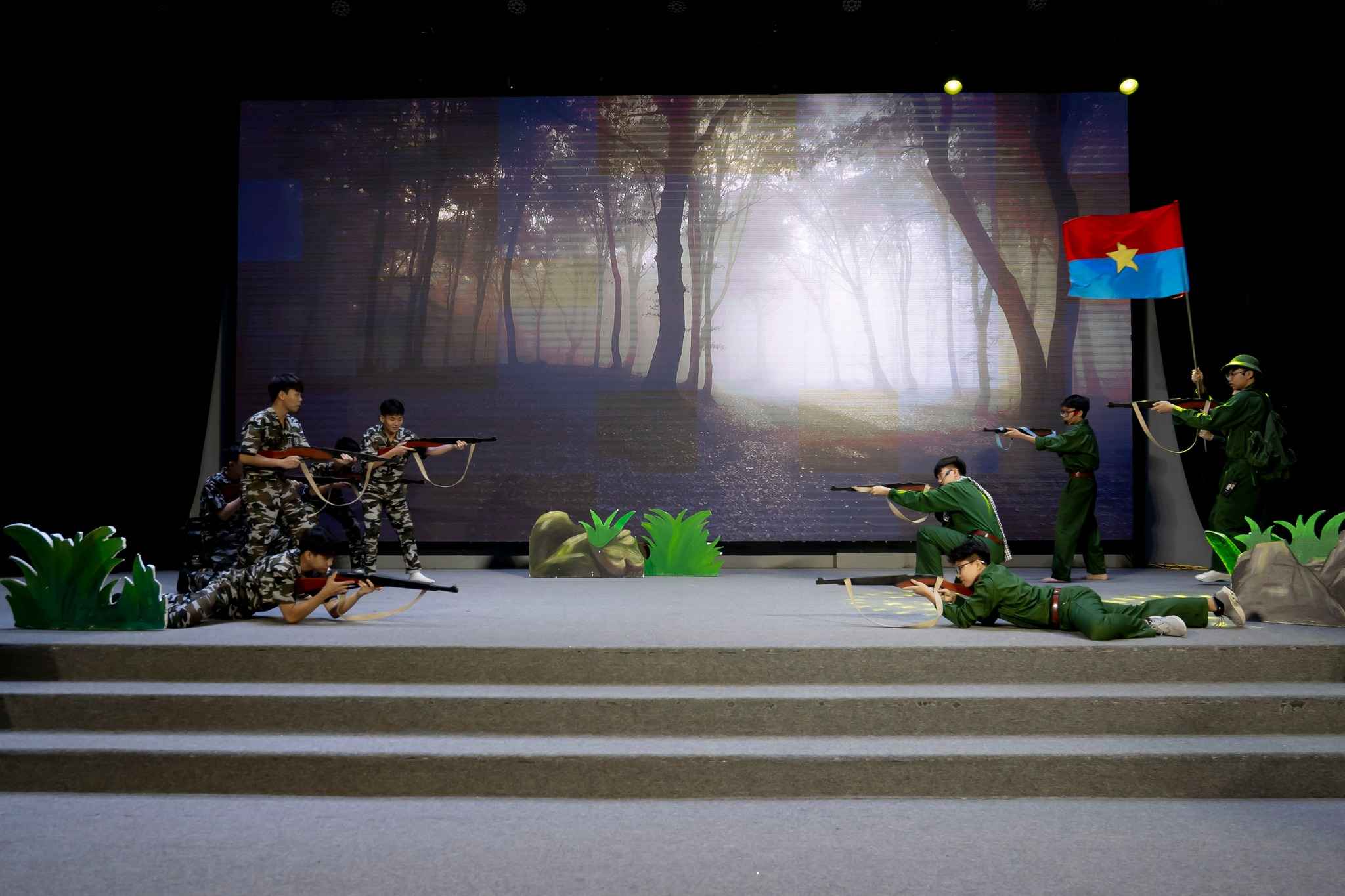 Điểm nhấn của sự kiện năm nay chính là vở nhạc kịch “Dòng chảy thời gian” – nơi mọi câu chuyện từ cổ đại đến hiện đại, từ đất liền đến biển đảo được đan xen khéo léo thành một tác phẩm nghệ thuật đầy cảm xúc. Tại đây, học sinh từ khối 6 đến khối 9 đã cùng nhau thể hiện tài năng diễn xuất và truyền tải thông điệp ý nghĩa “Học tập không chỉ để biết, mà còn để cảm nhận, kết nối và cống hiến. Vở nhạc kịch với những phân cảnh cuối khi xe tăng của Quân Giải phóng tiến vào Dinh Độc Lập trưa ngày 30/4/1975 – giải phóng miền Nam, thống nhất đất nước đã khiến tất cả khách mời và các con học sinh đã có những phút giây xúc động và đầy tự hào về tinh thần trách nhiệm và lòng dũng cảm của các chiến sĩ, khắc ghi sự cống hiến và hy sinh thầm lặng của các thế hệ cha anh.