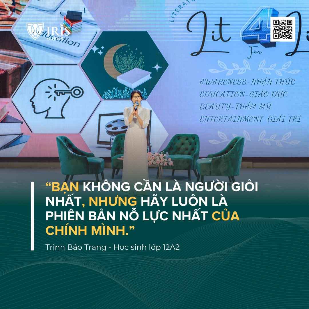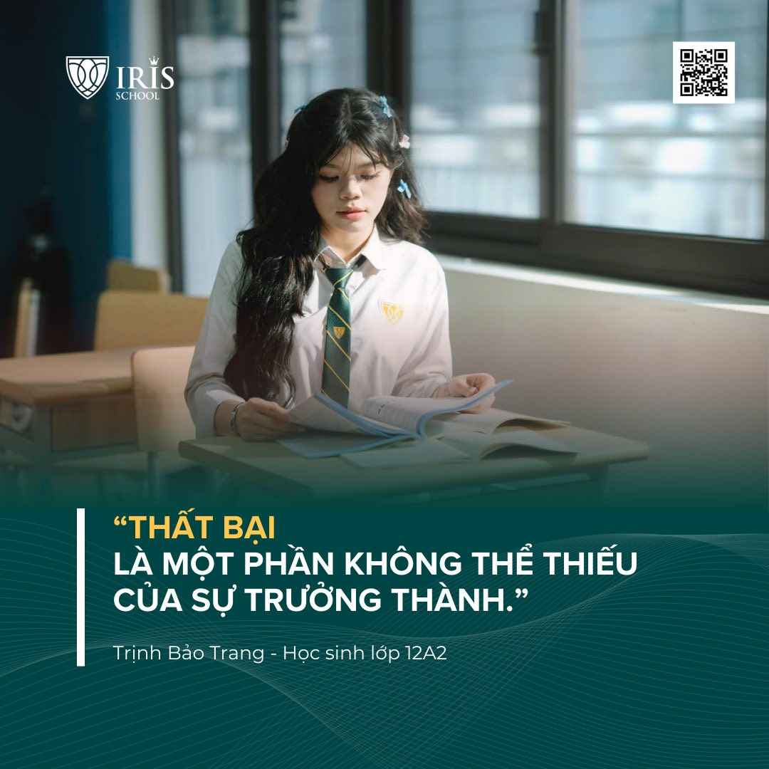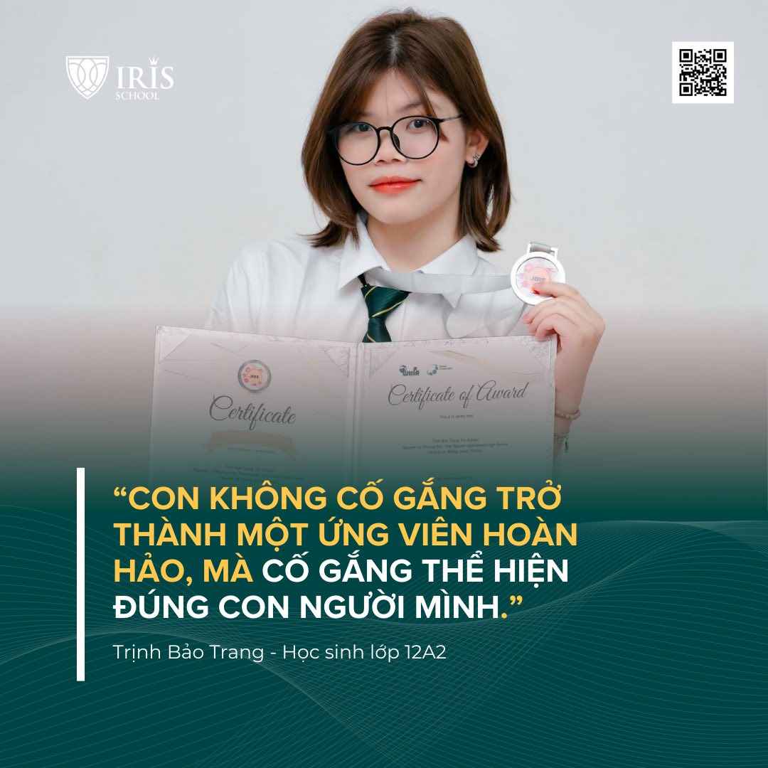 Trong hành trình chuẩn bị cho học bổng, Trang khẳng định Iris School chính là nền tảng vững chắc nhất. Tại đây, con không chỉ học kiến thức mà còn được sống trong một môi trường giàu cảm hứng – nơi khuyến khích học sinh dám thử, dám sai và trưởng thành từ những trải nghiệm thực tế. Những kỹ năng như phản biện, làm việc nhóm, quản lý thời gian hay sáng tạo nội dung đều được nuôi dưỡng từ chính các tiết học và hoạt động ngoại khóa tại trường.