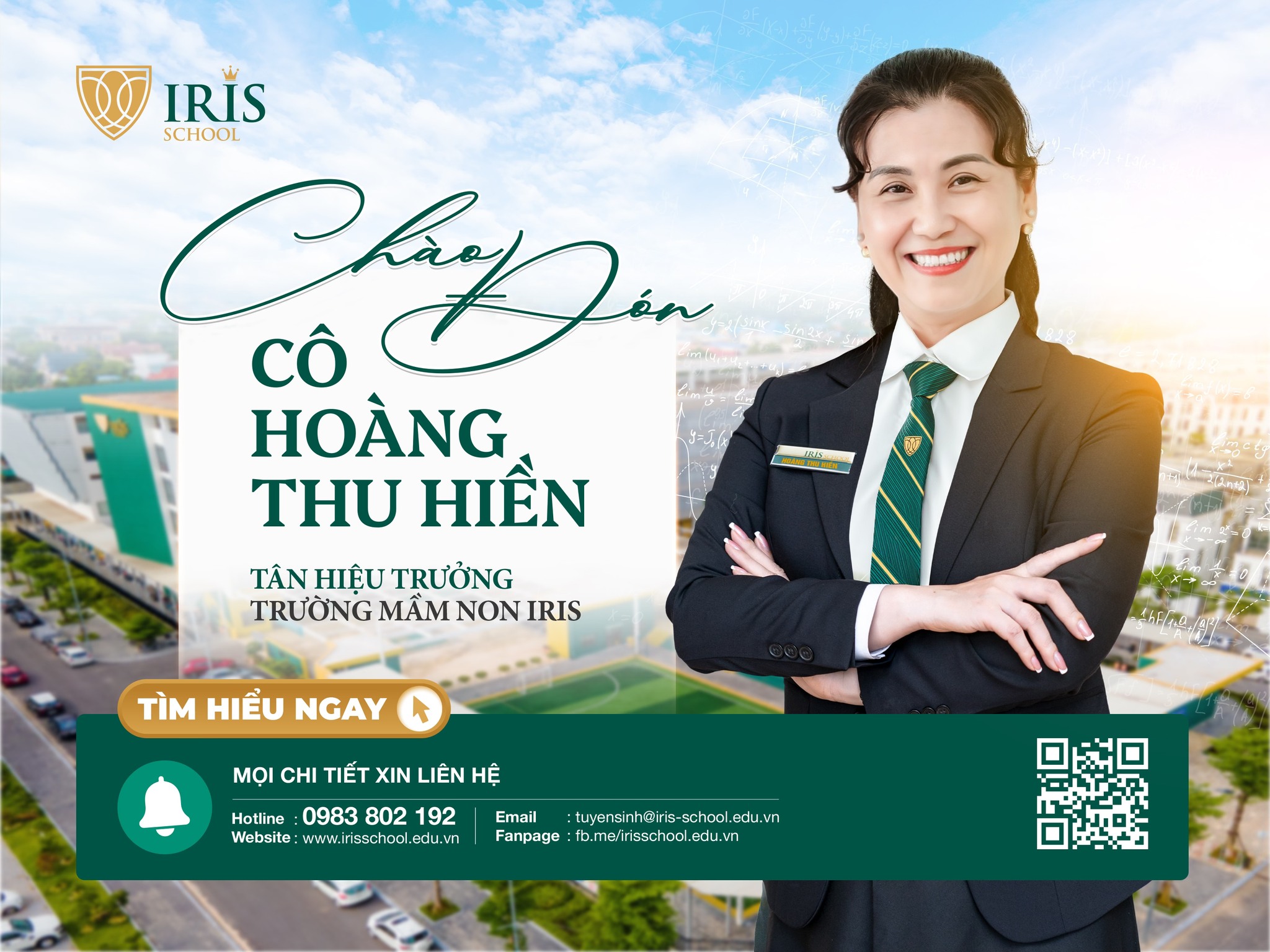 Từ tháng 8/2025, Trường Mầm non Iris chào đón cô Hoàng Thu Hiền – Tân Hiệu trưởng – người sẽ mang đến làn gió mới trong hành trình phát triển nhà trường. Với 33 năm kinh nghiệm trong lĩnh vực giáo dục mầm non và từng giữ nhiều vị trí quan trọng tại Phòng Giáo dục & Đào tạo thành phố, cô Hoàng Thu Hiền được biết đến như một nhà quản lý tận tâm, sáng tạo và giàu nhiệt huyết.