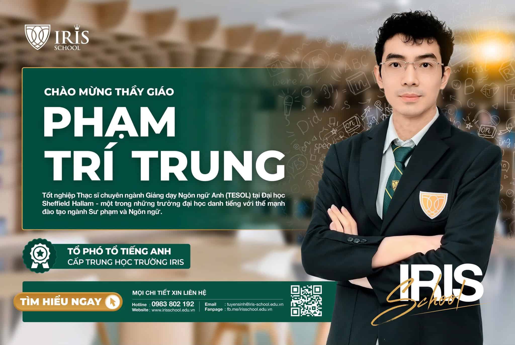 Trường Iris trân trọng chào đón Thạc sĩ Phạm Trí Trung, thầy giáo tâm huyết, giàu chuyên môn và kinh nghiệm sẽ gia nhập đội ngũ giáo viên Trung học với vai trò Tổ phó tổ Tiếng Anh cấp Trung học.