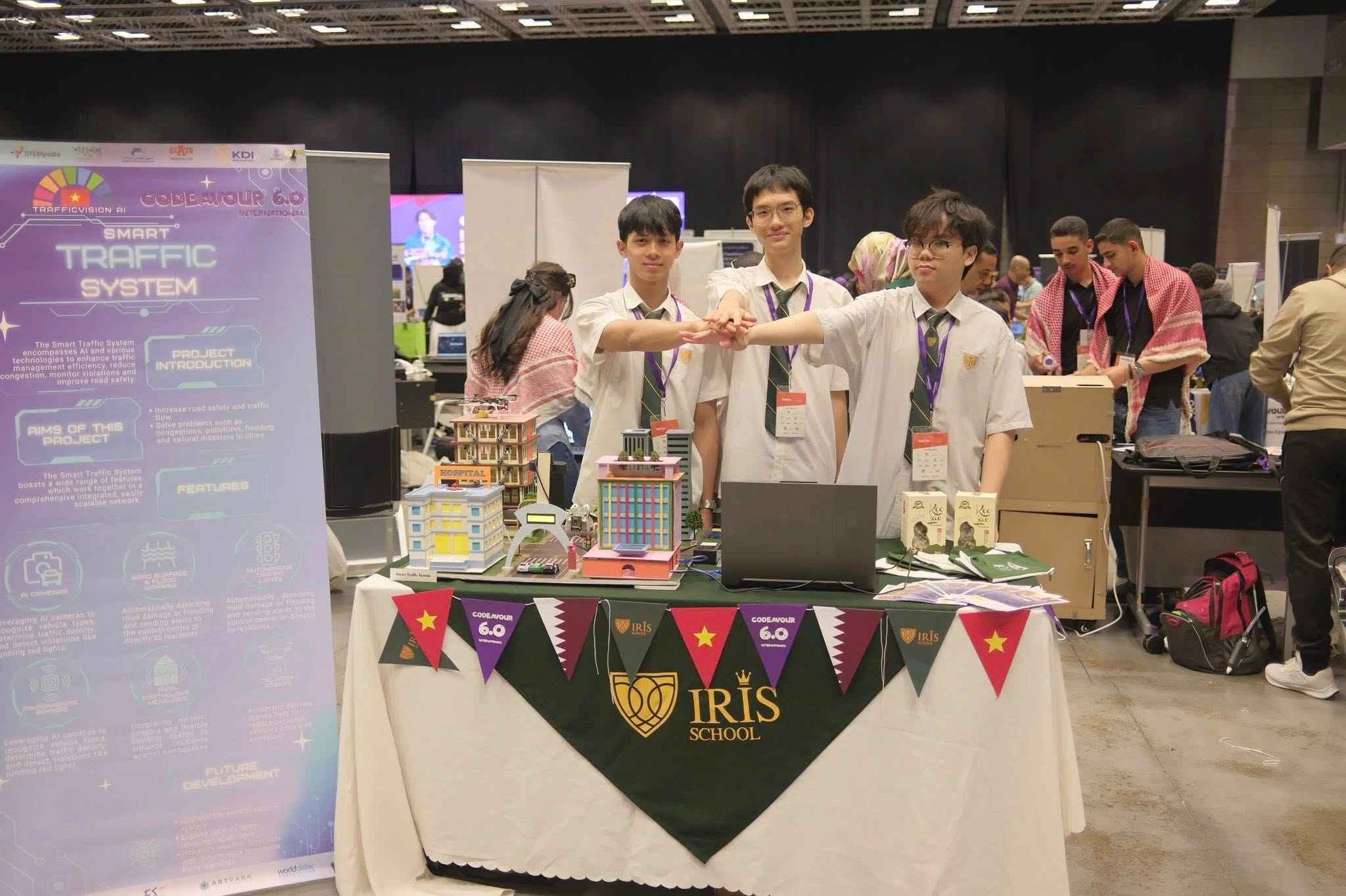 Sau hành trình nỗ lực bền bỉ, đội tuyển THPT gồm 3 Irisers: Lê Hồng Khải, Nguyễn Quốc Doanh và Bùi Đức Minh đã xuất sắc giành giải Khuyến khích tại Vòng Quốc tế cuộc thi lập trình Codeavour 6.0 với dự án “Hệ thống giao thông thông minh” – hướng đến xây dựng thành phố an toàn và hiện đại hơn nhờ công nghệ AI.