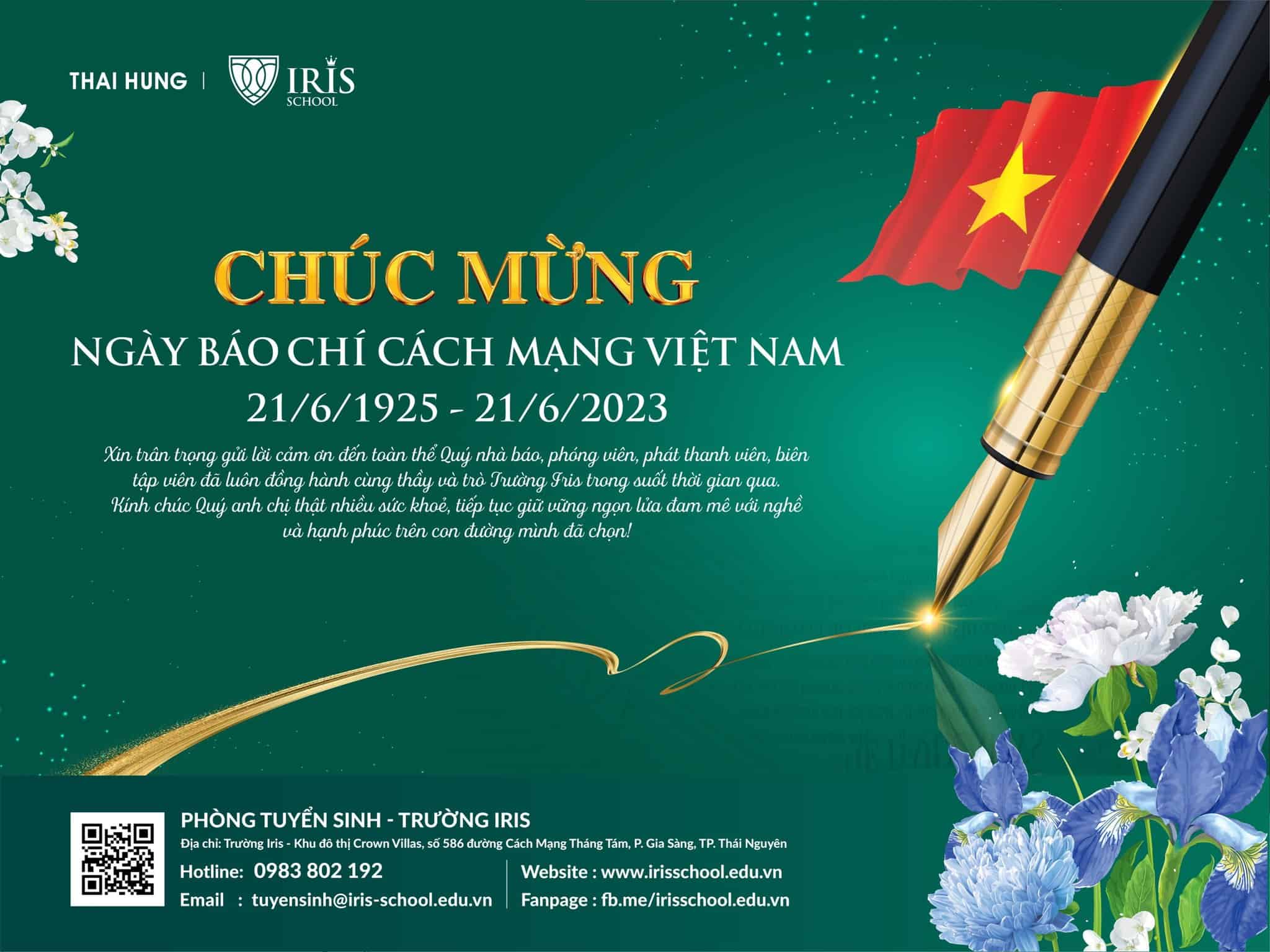 Nhân ngày Báo chí Cách mạng Việt Nam, Trường Iris xin gửi tới Quý nhà báo, phóng viên, phát thanh viên, biên tập viên, những người đang công tác trong ngành báo chí lời chúc sức khỏe, hạnh phúc.