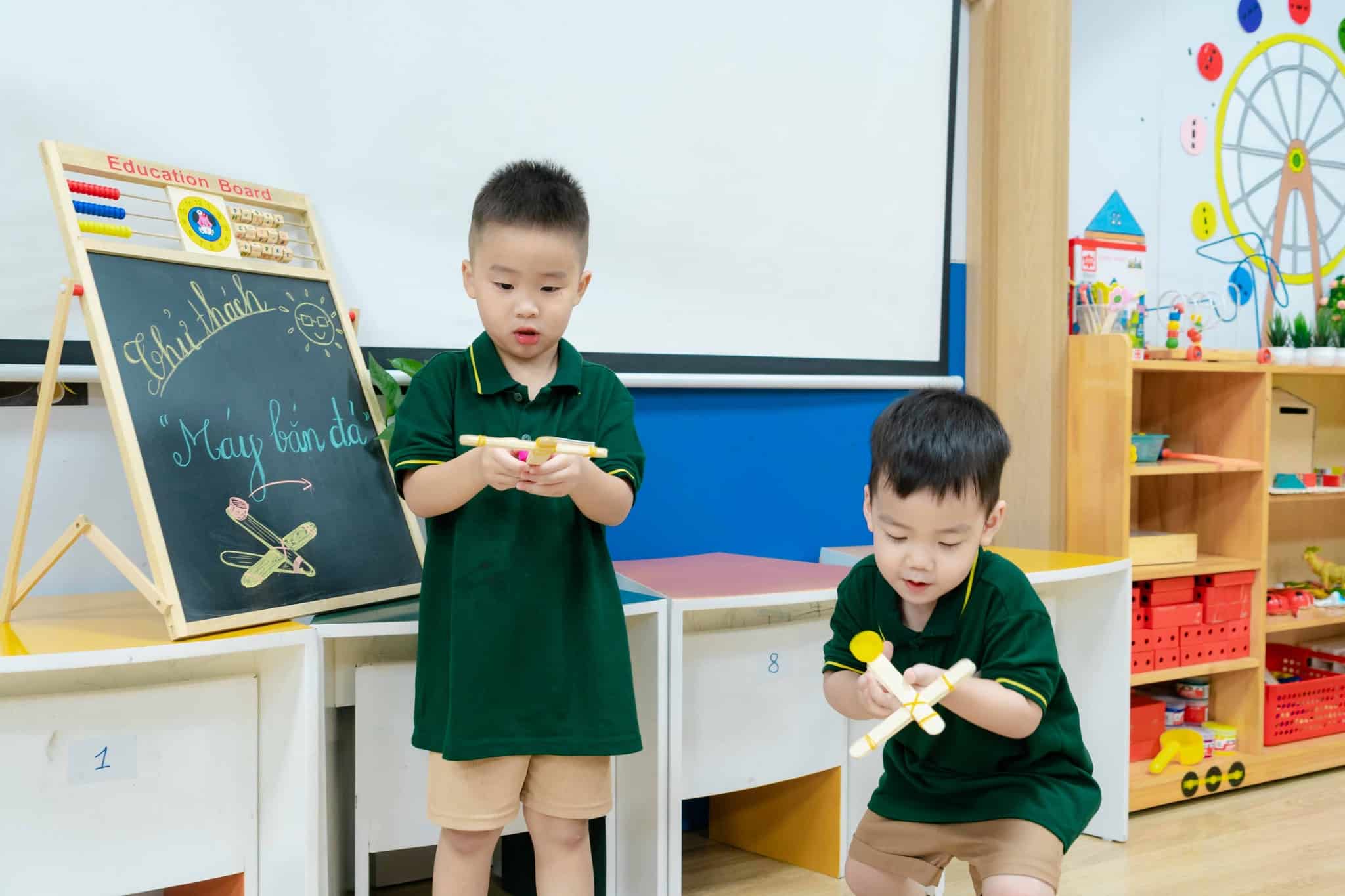 Với những nguyên liệu đơn giản như que đè lưỡi, nắp chai nhựa, dây thun… cùng sự hướng dẫn tận tình của cô giáo, các bạn nhỏ lớp Rainbow 2 đã tạo tự tay làm nên những chiếc máy bắn đá đồ chơi vô cùng thú vị. Các bạn được chia thành từng nhóm nhỏ, […]