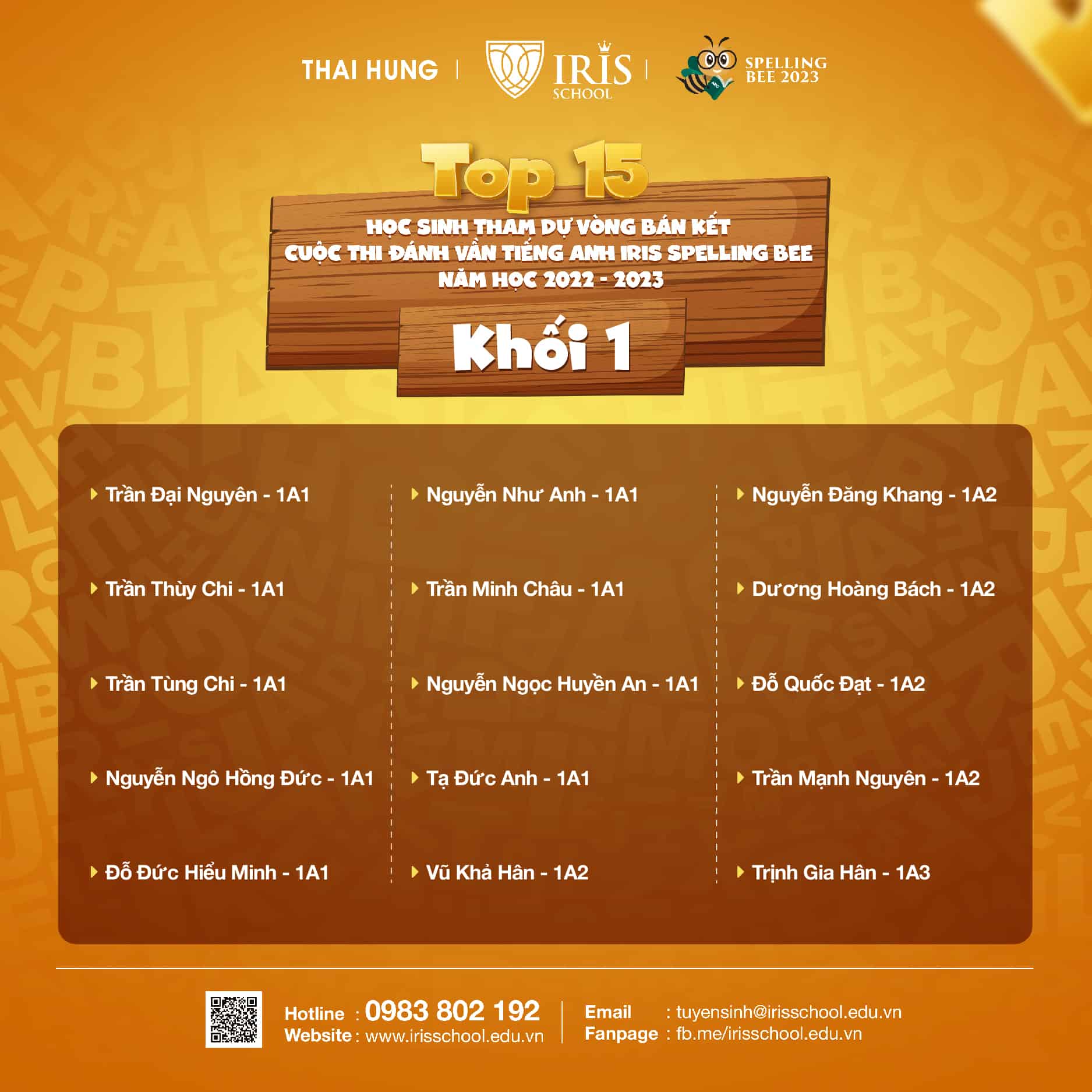 Theo điều chỉnh mới về thời gian tổ chức, vòng Bán kết “Iris Spelling Bee” năm nay sẽ được diễn ra tại nhà hát trường Iris vào ngày 16/02/2023 với hình thức thi tập trung loại trực tiếp theo khối lớp.