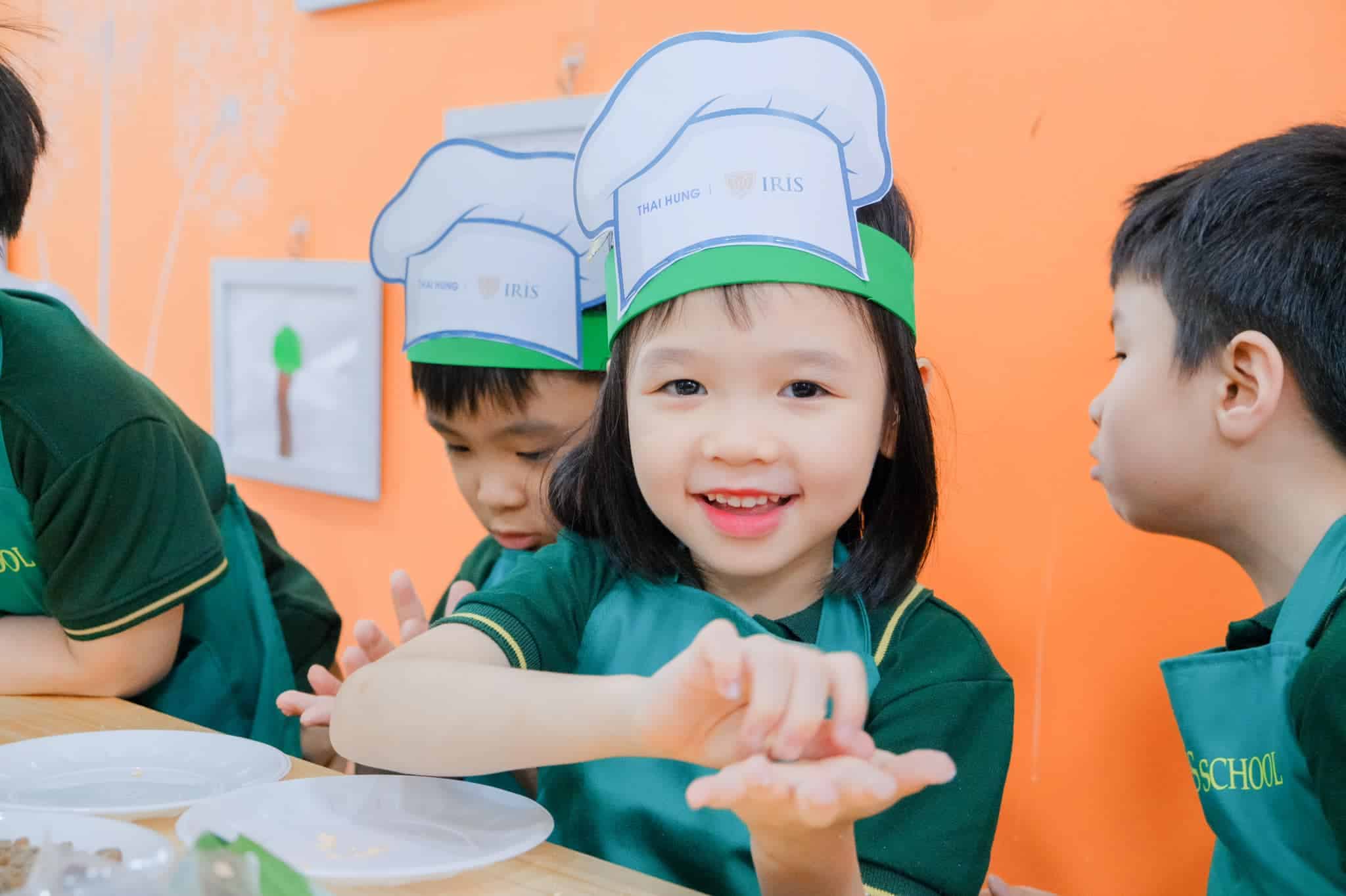 Prior to making the Banh Troi, the teachers had told Irisers the story of the origin of the Hanshi Festival, introduced the ingredients for making the glutinous rice balls as well as how to get delicious, smooth and even Banh Troi. After watching the teachers, the kids started to participate in each step: kneading the dough, shaping the cake, filling the cake with sugar, etc. The whole activity seemed very new and interesting, which contributed to doubling the joy for the children. The first few Banh Troi seemed a bit clumsy, but later on the kids showed their ingenuity by making really smooth and rounded glutinous rice balls.