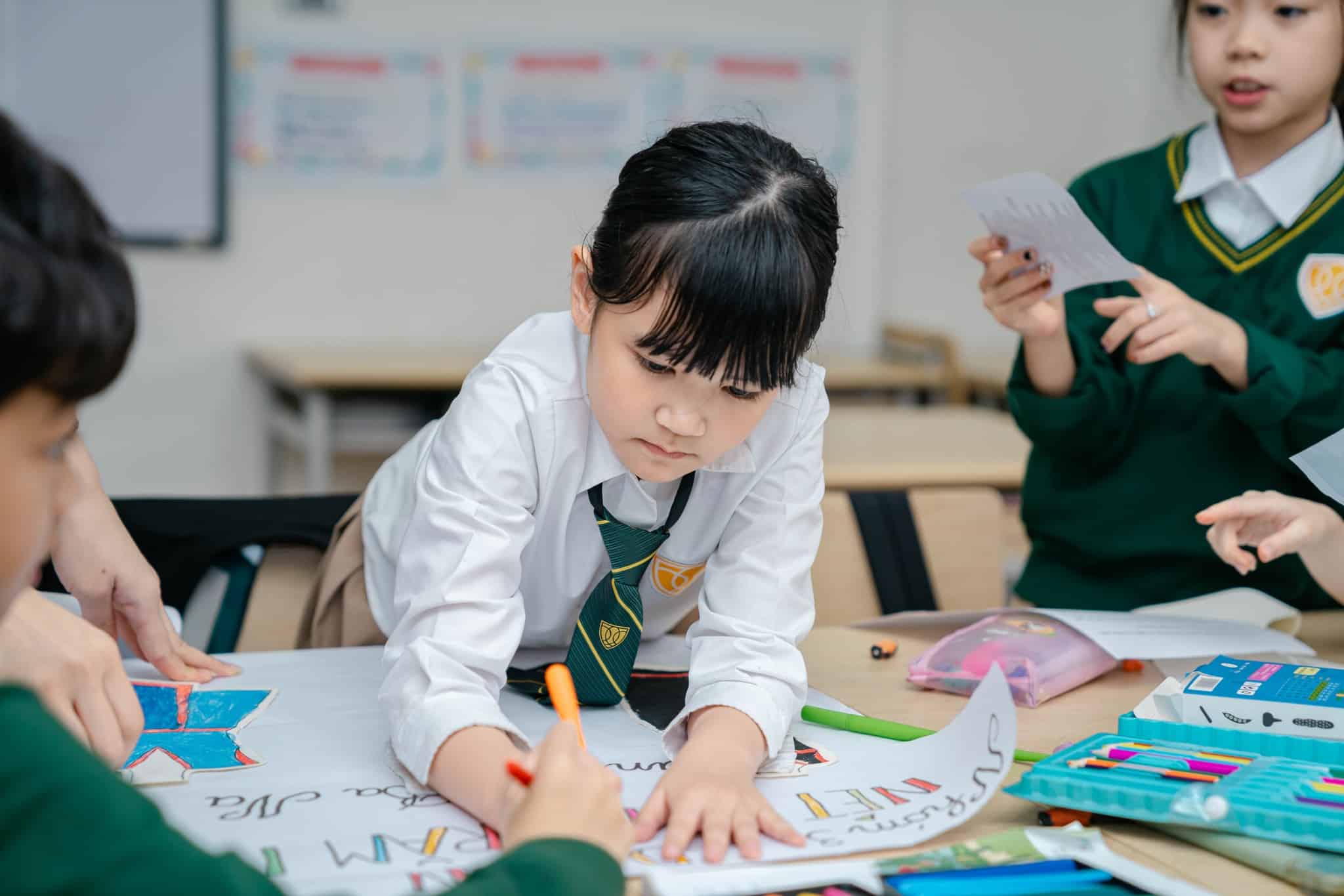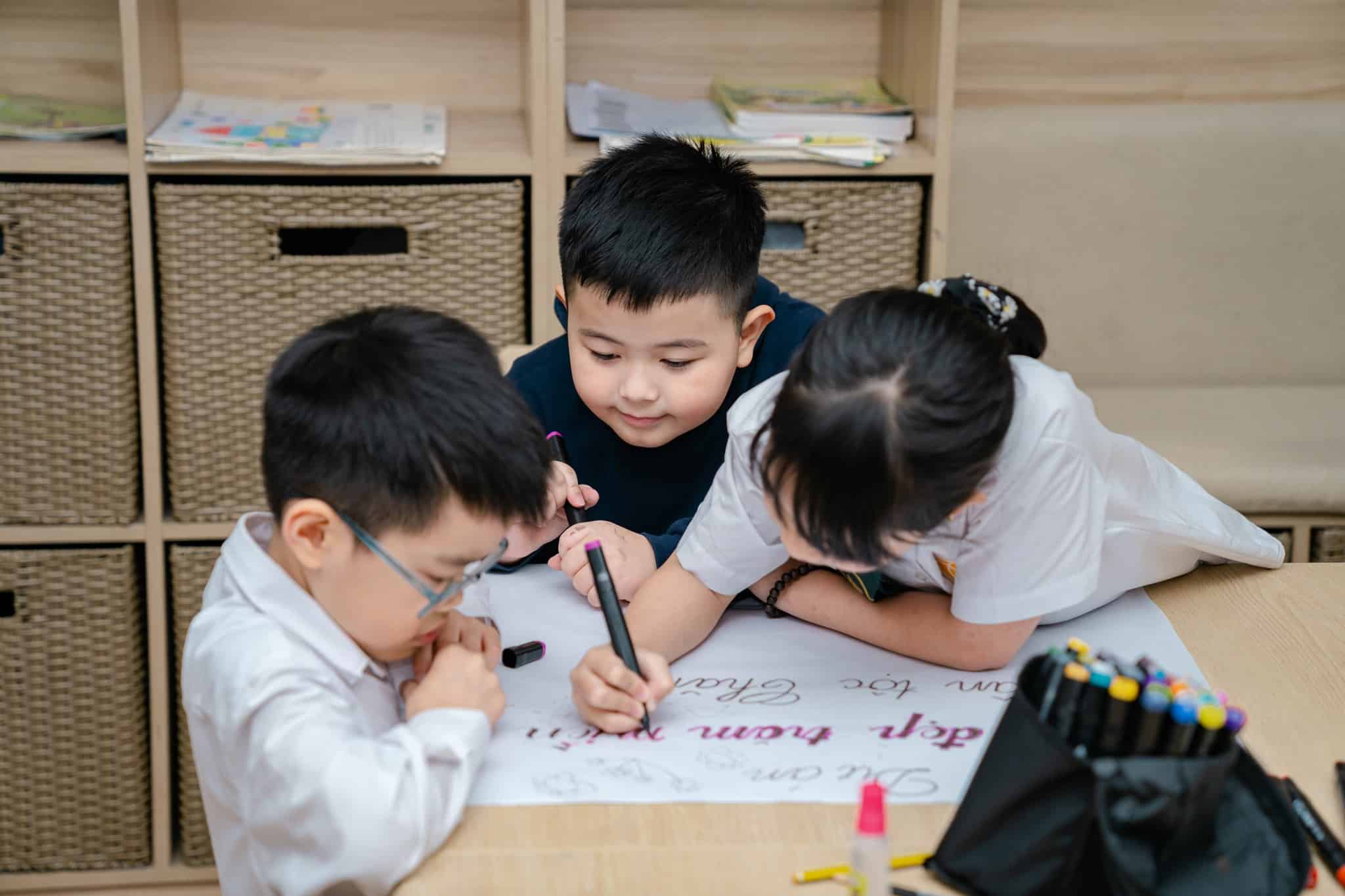Các bạn được làm việc theo nhóm và chia nhau cùng thực hiện dự án. Bạn vẽ tranh, bạn tìm ảnh, bạn tìm hiểu thông tin, bạn viết bài và thuyết trình. Tuy mỗi người được phân chia phụ trách một phần nhưng các bạn rất hào hứng và hỗ trợ nhau cùng hoàn thành công việc.
