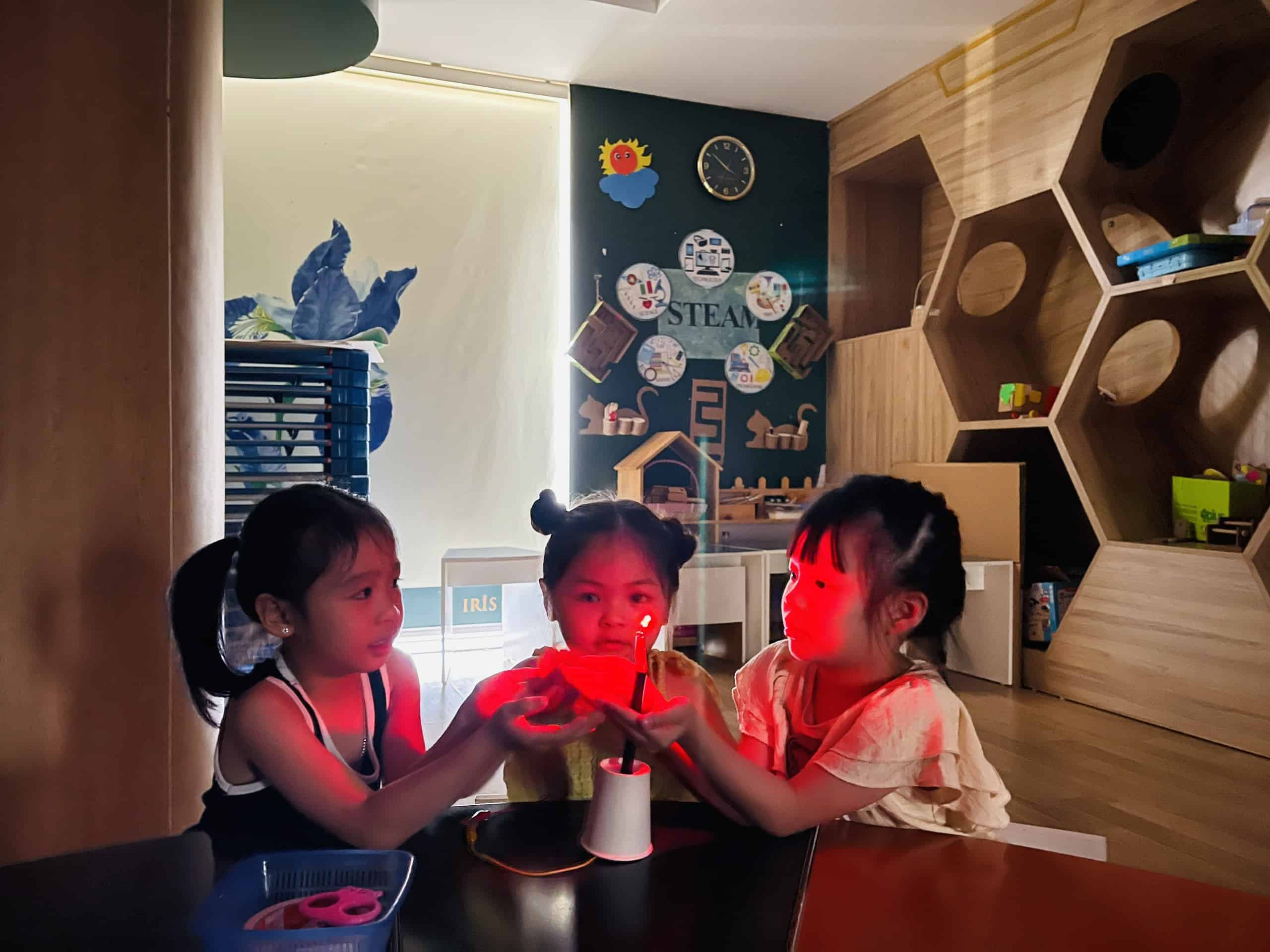 Các bạn nhỏ lớp Moon đã tự tay tạo nên những chiếc quạt mini làm mát trong nhà, các bạn lớp Rainbow phát triển hệ thống chiếu sáng còn các bạn lớp Sunny lại chế tạo những chú robot giúp việc nhà vô cùng sáng tạo và hữu ích.