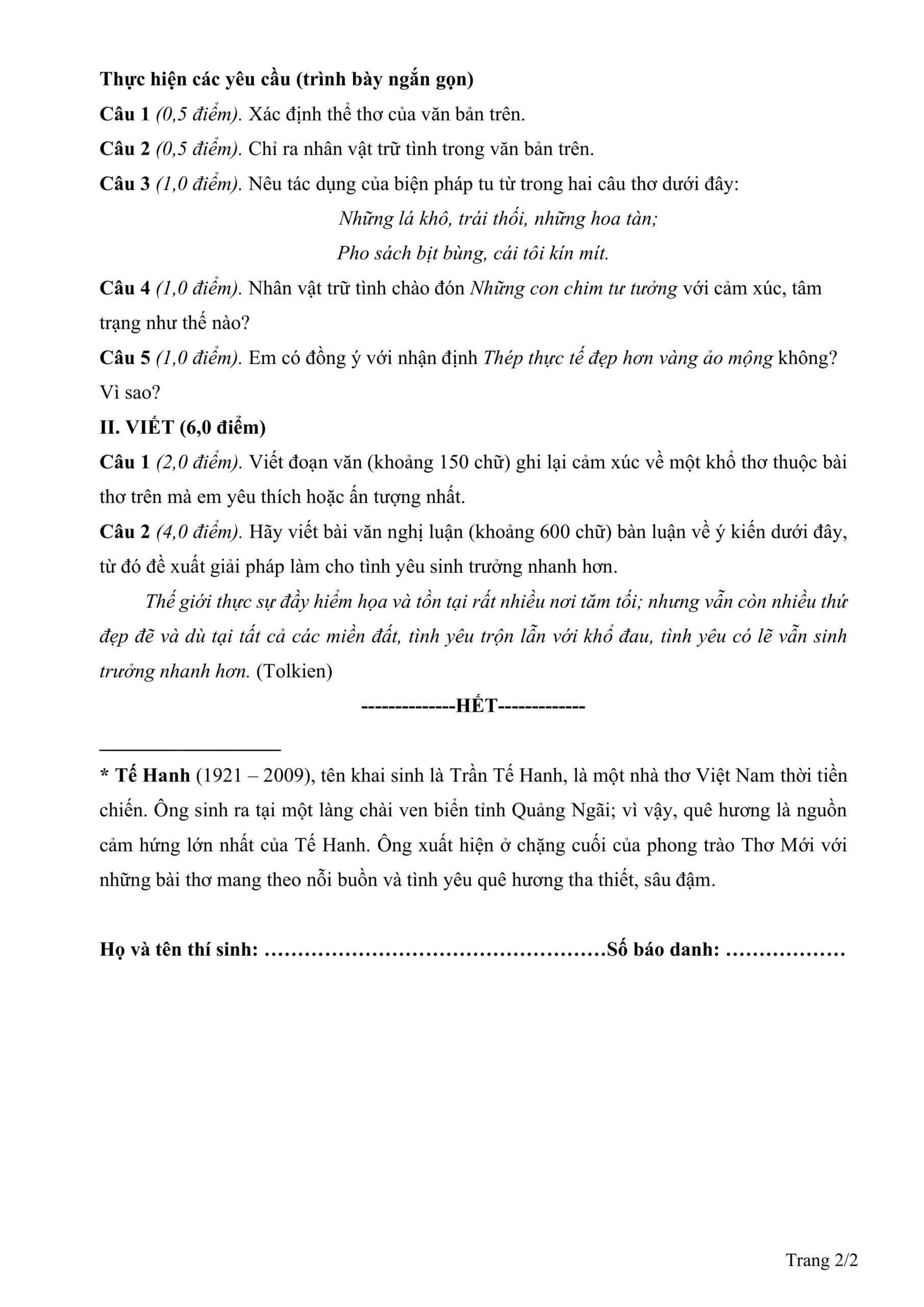 Đề thi thử vào lớp 10 môn Ngữ văn và hướng dẫn đáp án