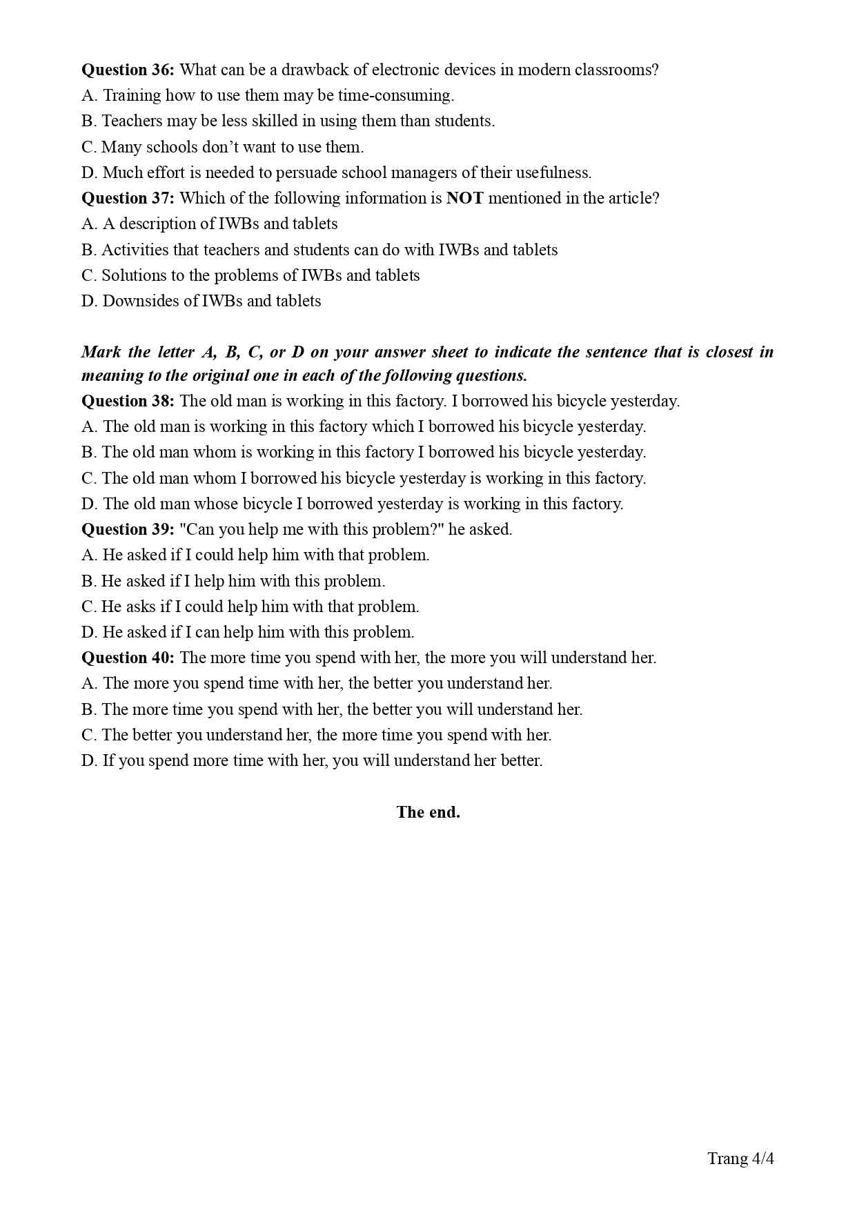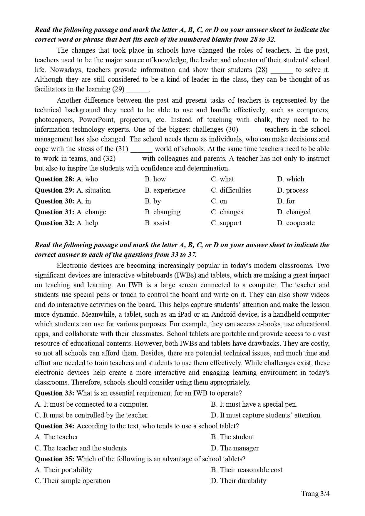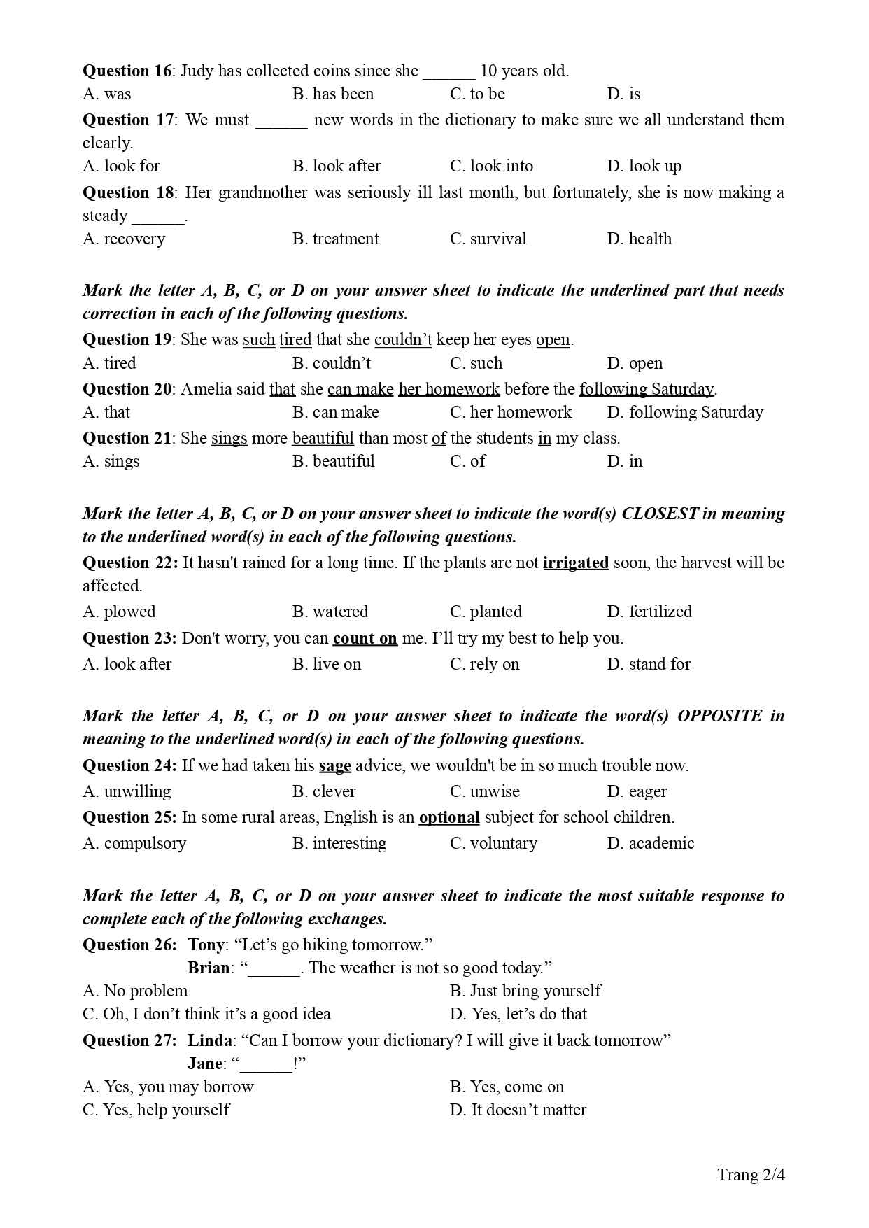 Đề thi thử vào lớp 10 môn Tiếng Anh và hướng dẫn đáp án