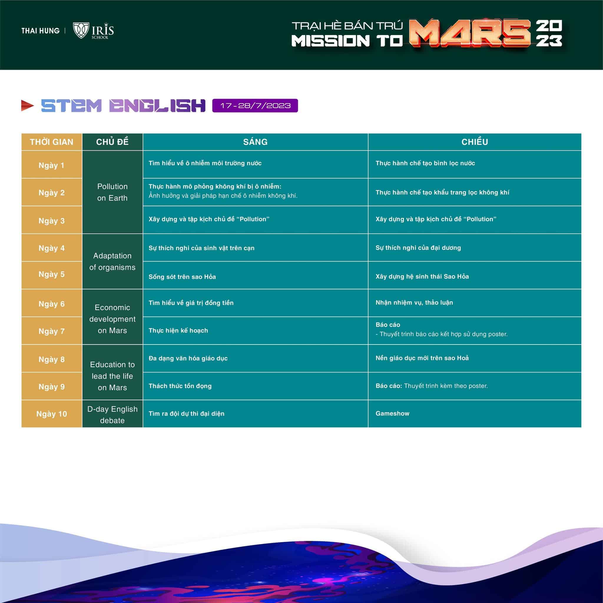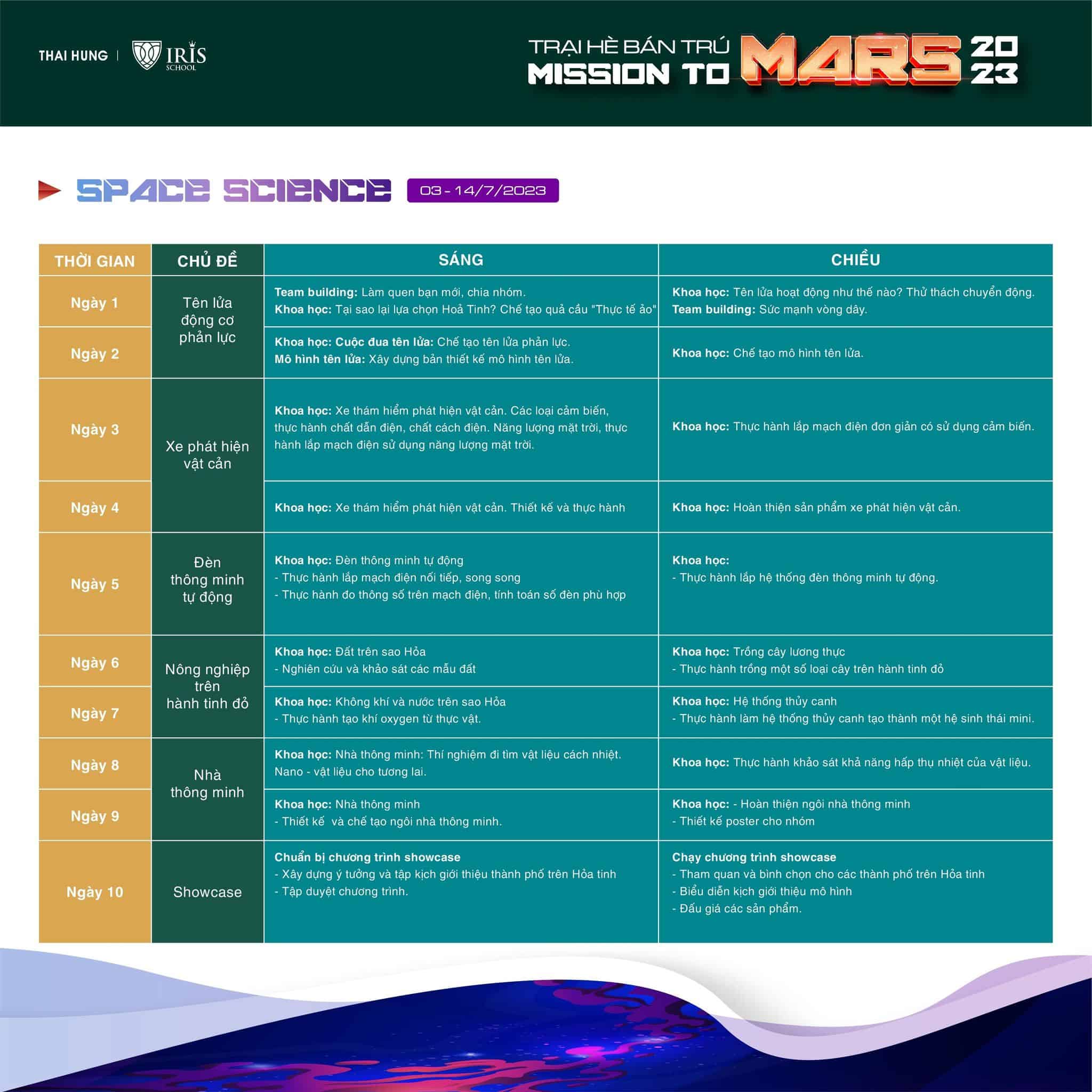 Và trong mùa hè này, Iris School sẽ mang đến cho các bạn học sinh một chuyến du hành vũ trụ “thám hiểm sao Hỏa” hứa hẹn vô vàn những điều thú vị và mới mẻ.