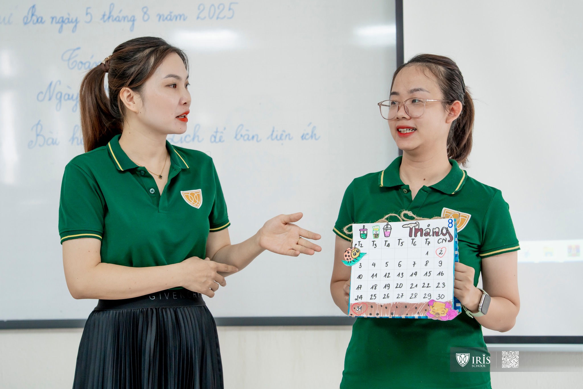 Không còn là những con số khô khan, bài học Toán trở nên sống động với hình ảnh, màu sắc và sản phẩm thủ công sáng tạo. Các nhóm giáo viên đã cùng nhau thiết kế những quyển lịch độc đáo từ bìa màu, kẹp gỗ, giấy thủ công… – kết quả của tư duy toán học kết hợp với óc sáng tạo và tinh thần làm việc nhóm tích cực.