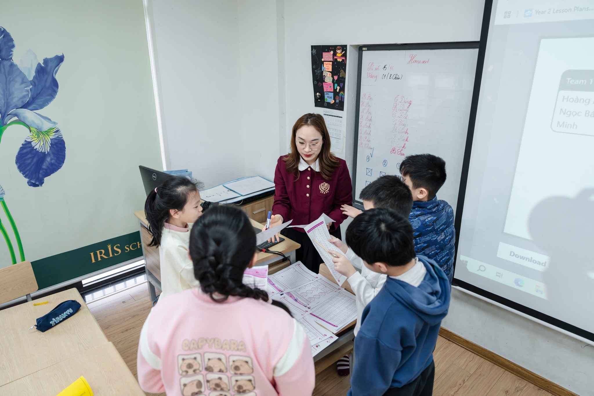Với mô hình Station Rotation, các nhóm học sinh lần lượt chinh phục các thử thách Toán học tại từng trạm, vận dụng toàn bộ tiếng Anh để giao tiếp, suy luận và giải bài toán. Việc cùng nhau hợp tác, tranh luận và khám phá đã khiến tiết học trở nên sôi động và đầy hứng khởi. Không chỉ ôn tập kiến thức Toán, các con còn phát triển tư duy logic, rèn luyện kỹ năng làm việc nhóm và tự tin hơn trong việc sử dụng tiếng Anh.