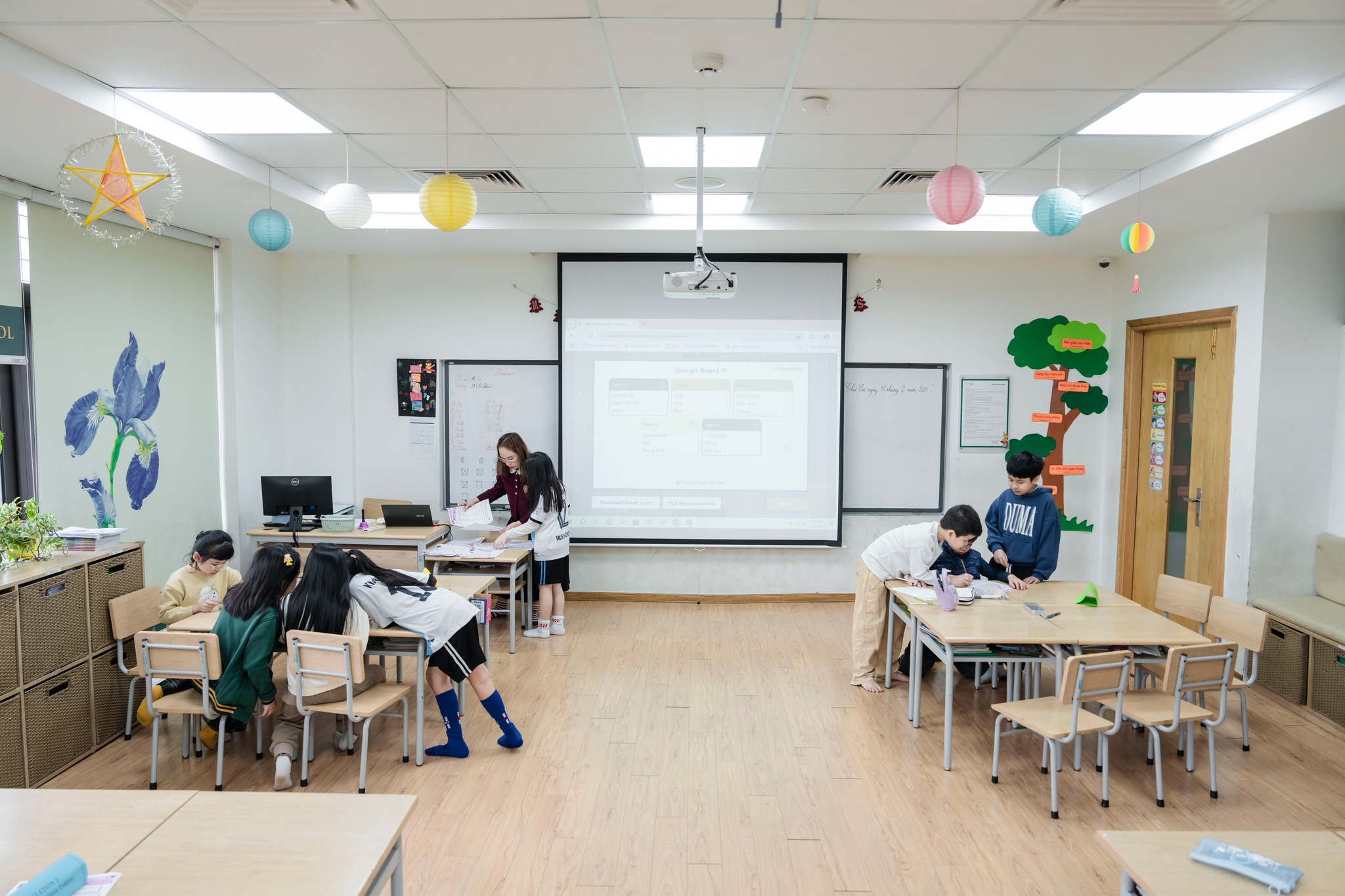 Với mô hình Station Rotation, các nhóm học sinh lần lượt chinh phục các thử thách Toán học tại từng trạm, vận dụng toàn bộ tiếng Anh để giao tiếp, suy luận và giải bài toán. Việc cùng nhau hợp tác, tranh luận và khám phá đã khiến tiết học trở nên sôi động và đầy hứng khởi. Không chỉ ôn tập kiến thức Toán, các con còn phát triển tư duy logic, rèn luyện kỹ năng làm việc nhóm và tự tin hơn trong việc sử dụng tiếng Anh.