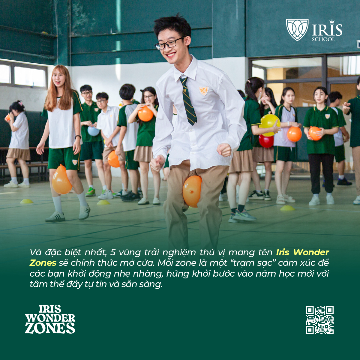 Và đặc biệt nhất, 5 vùng trải nghiệm thú vị mang tên Iris Wonder Zones sẽ chính thức mở cửa. Mỗi zone là một “trạm sạc” cảm xúc để các bạn khởi động nhẹ nhàng, hứng khởi bước vào năm học mới với tâm thế đầy tự tin và sẵn sàng: