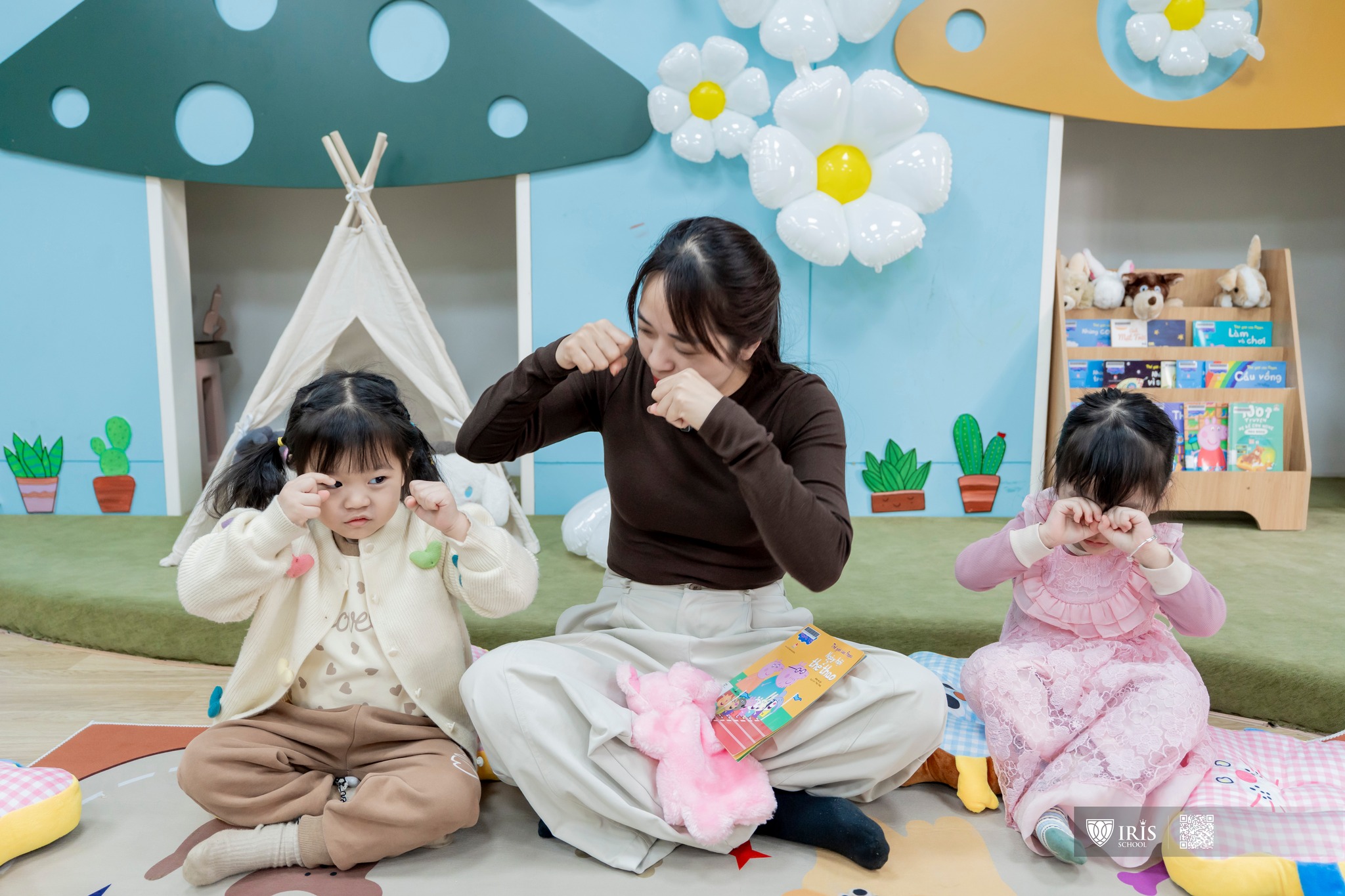 Trong giờ kể chuyện trên lớp, các bạn nhỏ đã lắng nghe thật chăm chú, đặt những câu hỏi rất ngây thơ và thử kể lại câu chuyện theo cách rất riêng của mình. Có bạn kể sát theo tranh, có bạn “thêm thắt” nhân vật mới. Đó là cách con học nói, học diễn đạt và tự tin thể hiện cảm xúc của mình.