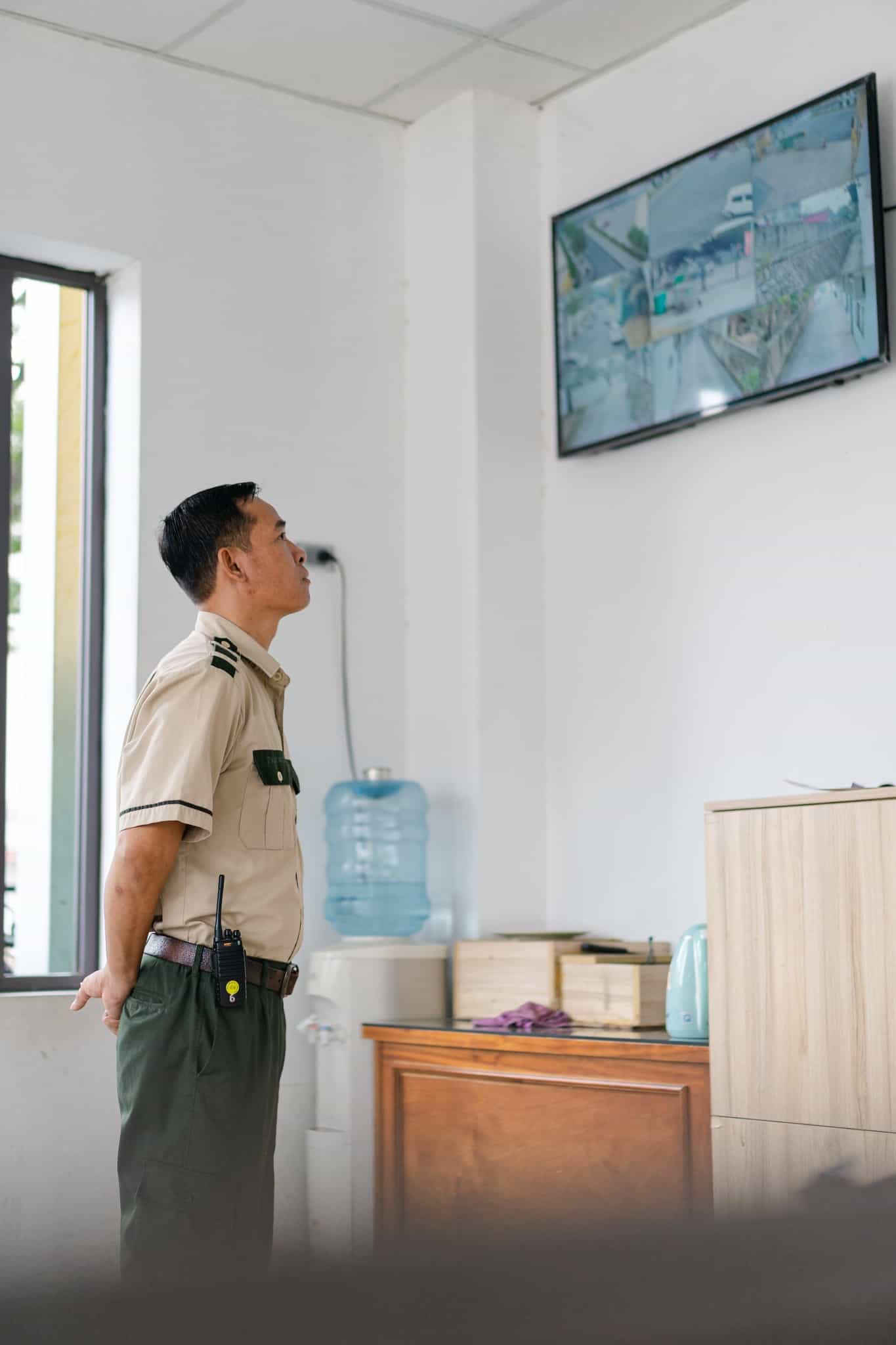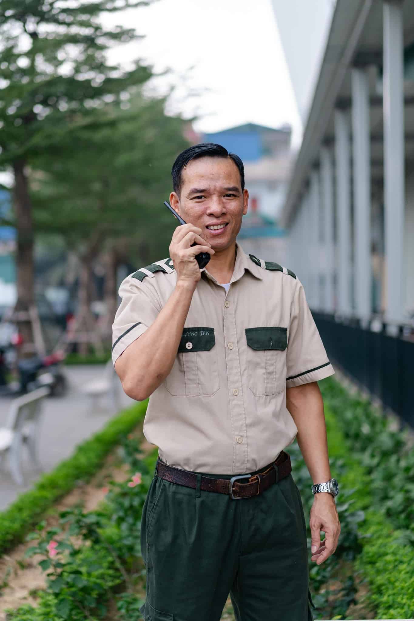 Bác Phương năm nay đã ngoài 40 tuổi và công việc bảo vệ rất nhiều vất vả, có những ngày phải đứng nắng canh gác, thức khuya trực đêm khiến da bác rám nắng cùng những vết đồi mồi, những nếp nhăn đã xuất hiện nhưng lúc nào bác cũng tràn đầy năng lượng và nhiệt huyết. Dù ngày nắng hay ngày mưa, ngày nóng bức hay buốt giá, bác đều thức dậy sớm để mở cổng trường, đảm bảo mọi điều kiện an toàn nhất để chúng con yên tâm học tập. Cuối buổi học bác hướng dẫn chúng con đi ra đúng vị trí bố mẹ đang chờ và tạm biệt chúng con. Khoảng 7 giờ tối, khi tất cả học sinh đã về nhà bác lại đi kiểm tra từ dãy phòng học này đến dãy phòng học khác để chắc chắn rằng bàn ghế ngay ngắn, cơ sở vật chất đầy đủ cho các buổi học tiếp theo.