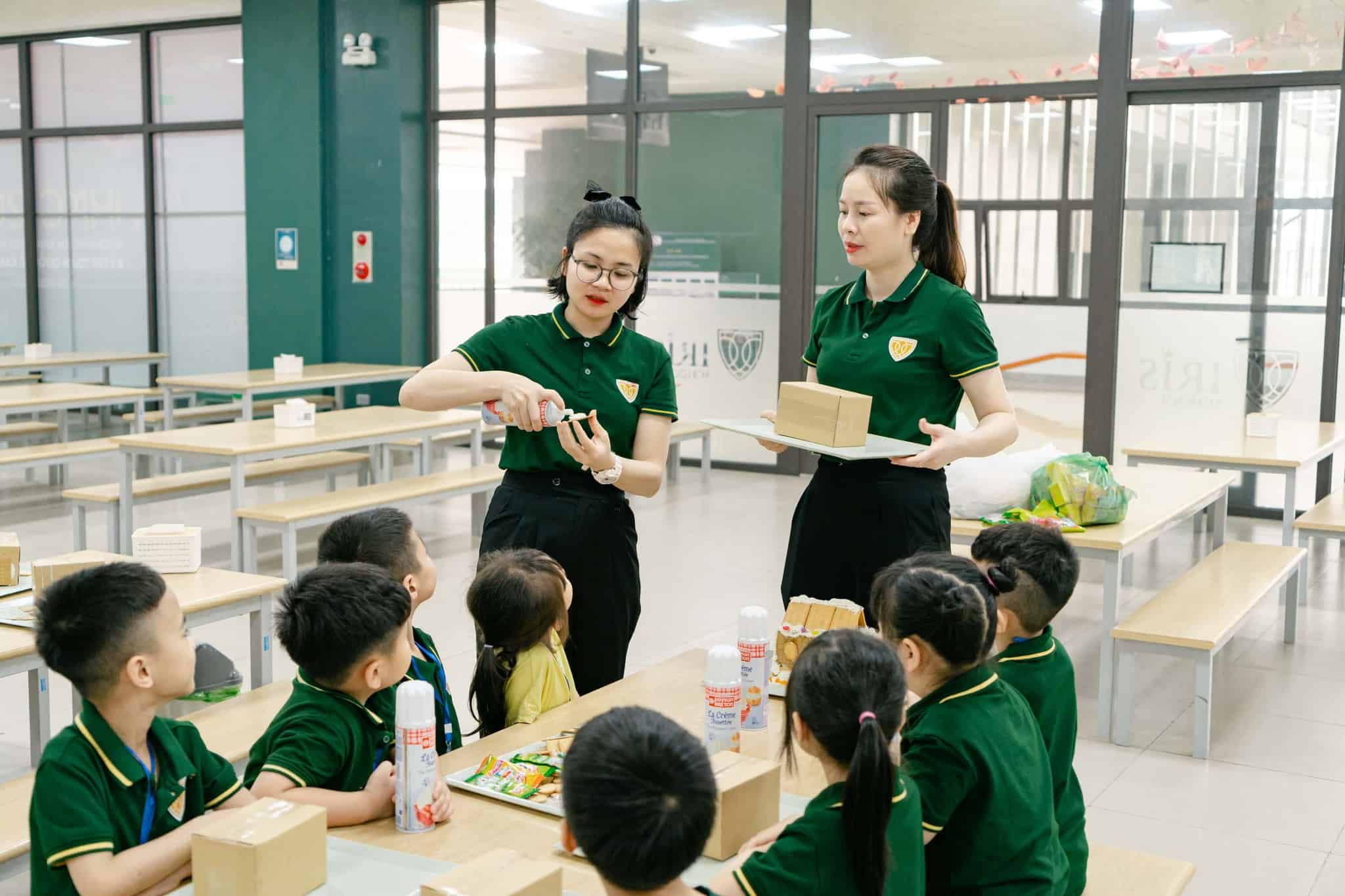 Ở buổi học thứ 2, các con lần lượt được tham gia vào các hoạt động học tập thú vị: Tìm hiểu các từ vựng Tiếng Anh về chủ đề động vật (Tiếng Anh); ôn tập các kiến thức số học thông qua các hoạt động ghép tranh (Toán tư duy); trổ tài sáng tạo với giờ học Mỹ thuật khi làm gingerbread house và tổ chim bằng giấy mỹ thuật; thỏa thích vận động trong làn nước mát lành của môn Bơi lội (Giáo dục thể chất), hòa mình với những điệu nhảy sôi động của hoạt động team-building…