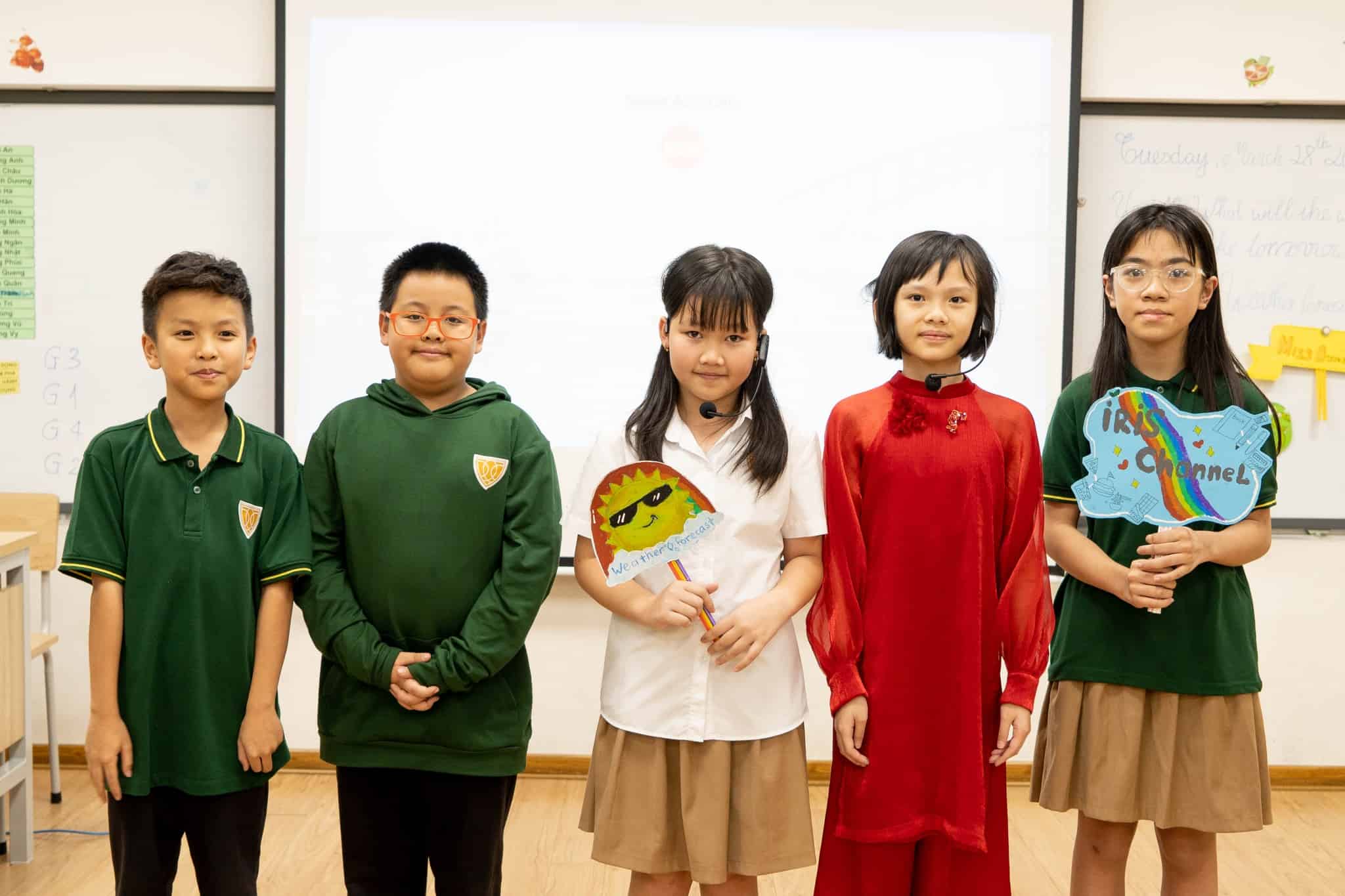 Trong tiết học tiếng Anh tuần này của Irisers lớp 5A1, cô Nguyễn Dương Hoàng Anh – Giáo viên tiếng Anh cấp Tiểu học đã cùng các bạn thực hiện một dự án vô cùng thú vị mang tên “Làm MC dự báo thời tiết”.