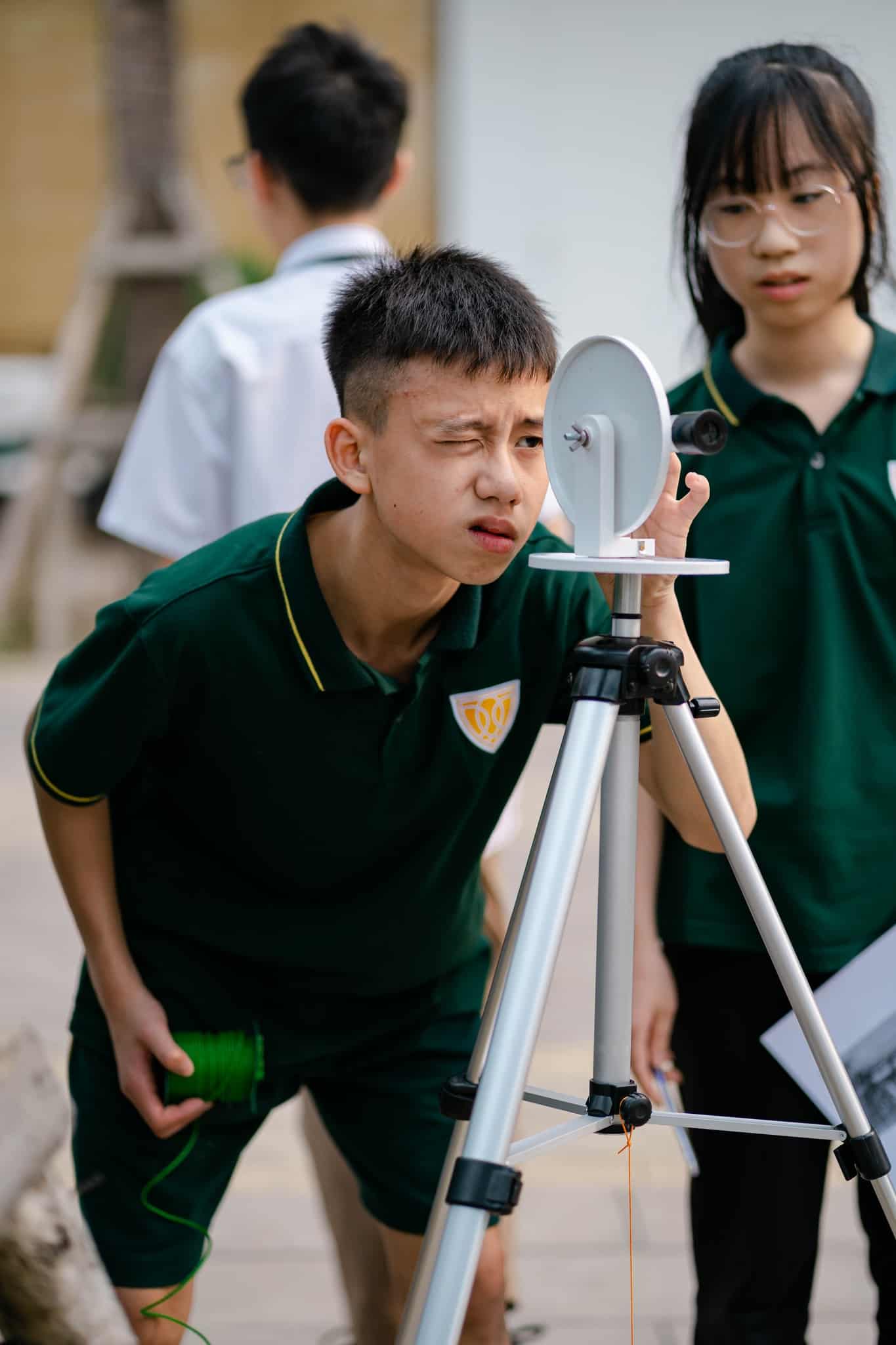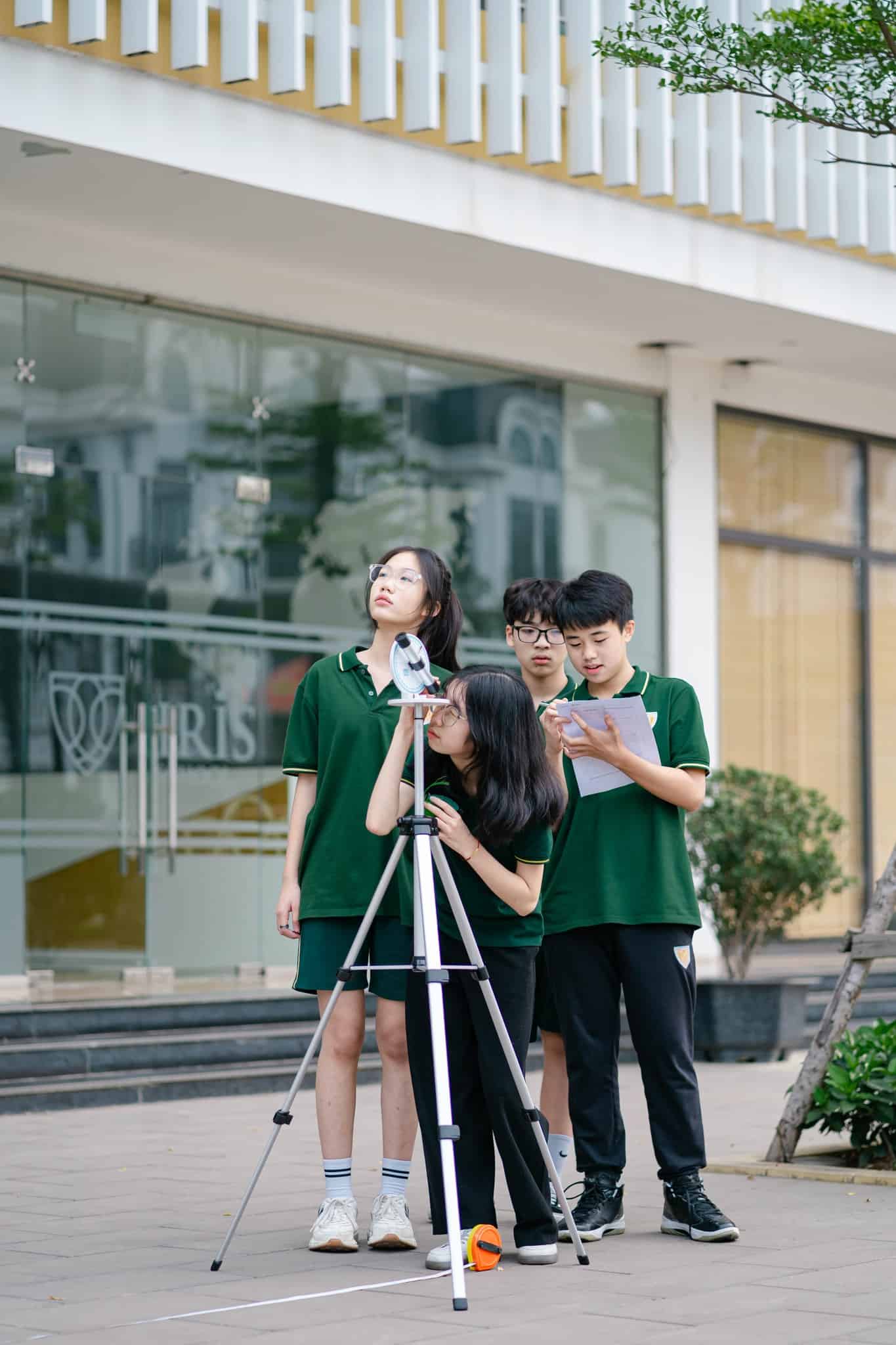 Trong tuần này, mời ba mẹ cùng “dự giờ” tiết thực hành Toán học ngoài trời – Ứng dụng của tam giác đồng dạng trong thực tế của Irisers lớp 8A1 nhé.