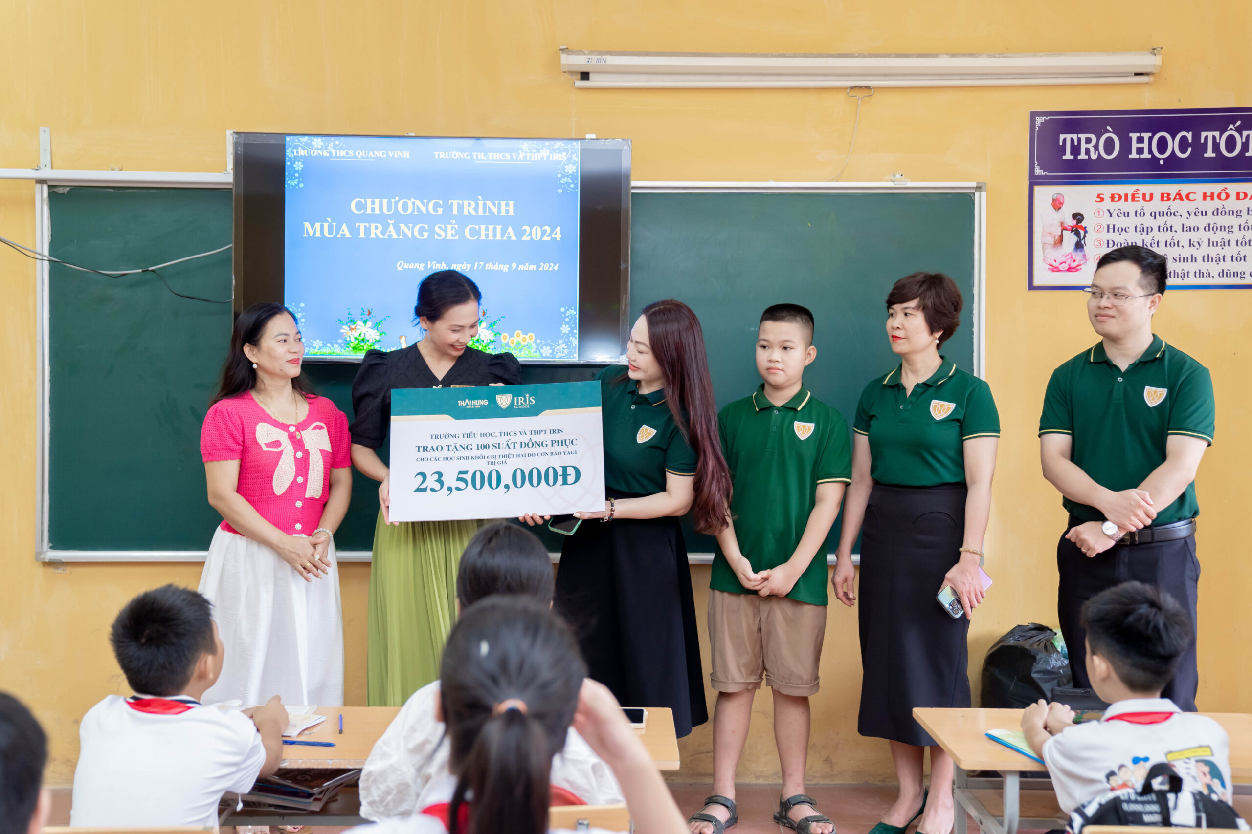 Sau khi trận lũ lịch sử đi qua, đời sống của người dân những khu ngập sâu vẫn gặp rất nhiều khó khăn. Chính vì vậy, thay vì tổ chức Lễ hội Trung thu như thường lệ, năm nay Iris School đã tổ chức chương trình “Mùa trăng sẻ chia” nhằm gây quỹ hỗ trợ các em học sinh tại Trường Tiểu học và Trường THCS Quang Vinh – một trong những nơi chịu ảnh hưởng nặng nhất tại TP. Thái Nguyên.