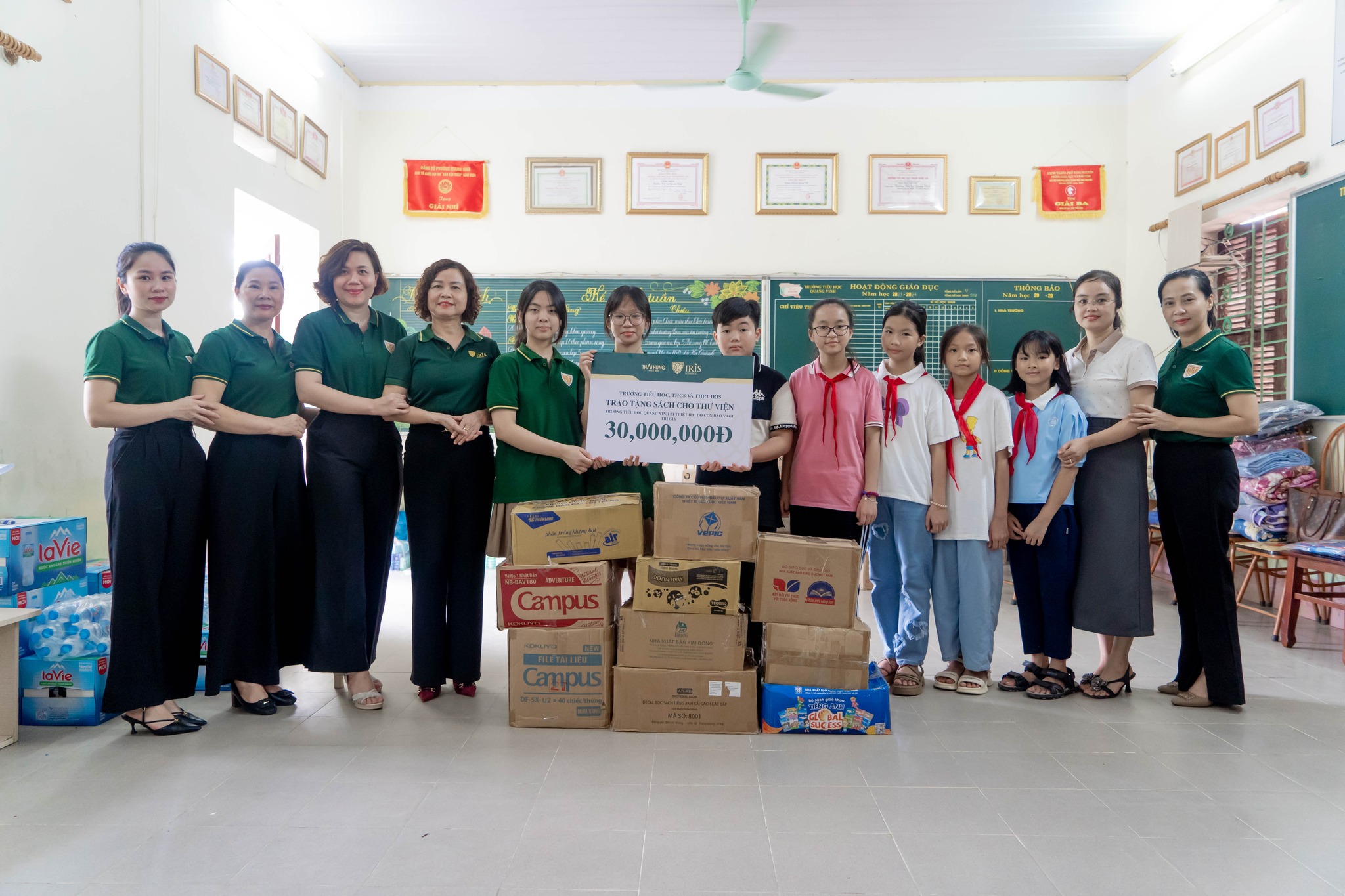 Tại trường Tiểu học Quang Vinh, nơi thư viện đã bị hư hại hoàn toàn do ngập úng, Iris School đã trao tặng 215 đầu sách với 464 cuốn sách mới. Những cuốn sách này không chỉ giúp các em tiếp tục học tập, mở rộng tri thức mà còn mang lại niềm vui và cảm hứng trong những ngày tới trường. Đây là món quà mang ý nghĩa sâu sắc, góp phần khôi phục nguồn tài liệu học tập quan trọng cho các em. Tổng giá trị phần quà là 30.000.000 đồng.
