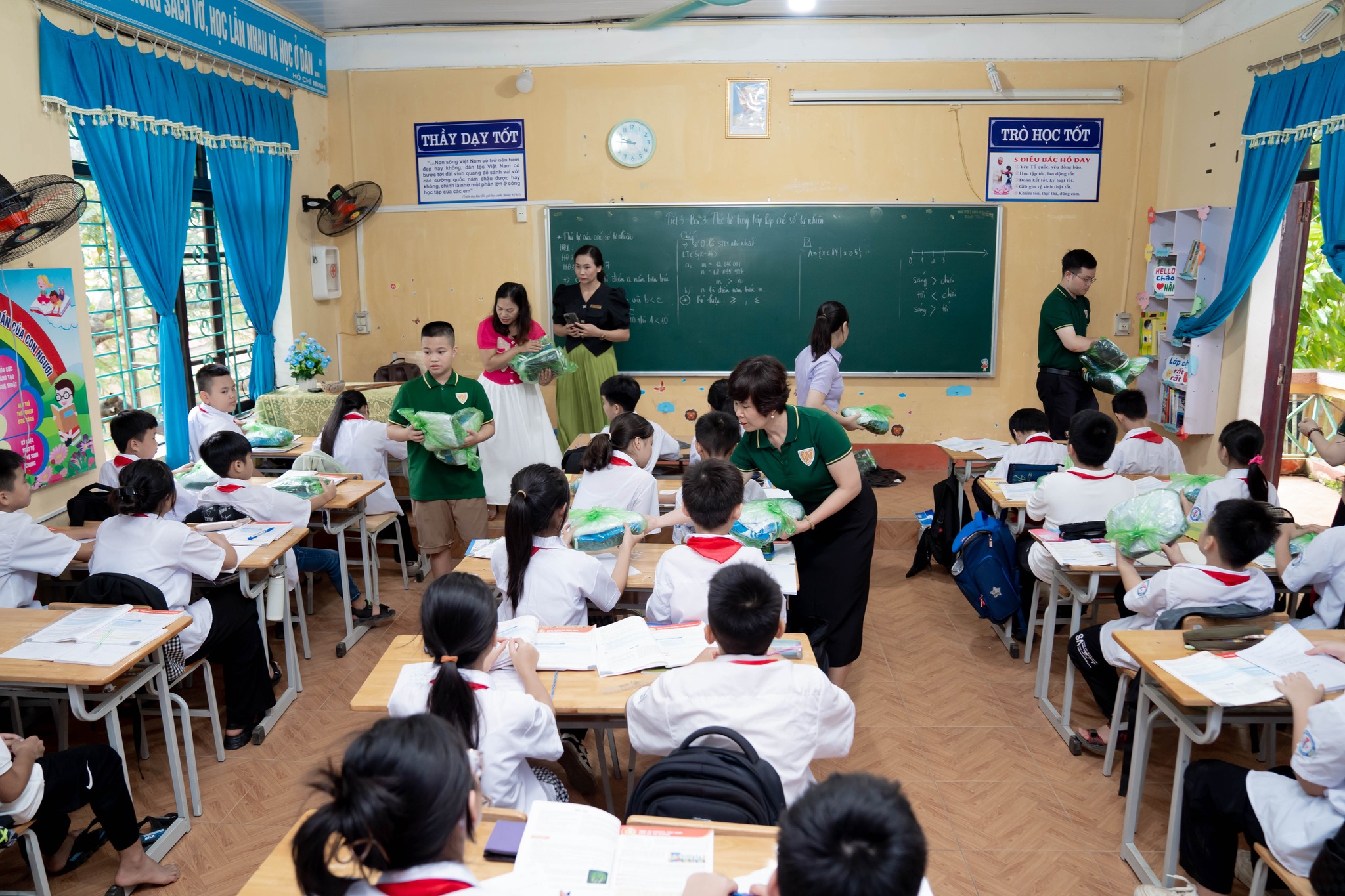Tại trường THCS Quang Vinh, nhà trường đã trao tặng 100 suất đồng phục mới cho toàn bộ học sinh khối 6. Đây là món quà thiết thực giúp các em có trang phục mới để tự tin đến trường sau những ngày bão lũ đầy khó khăn. Mỗi bộ đồng phục không chỉ mang giá trị vật chất mà còn là lời động viên tinh thần, giúp các em vững tin bước tiếp trên hành trình học tập. Tổng giá trị phần quà này là 23.500.000 đồng.