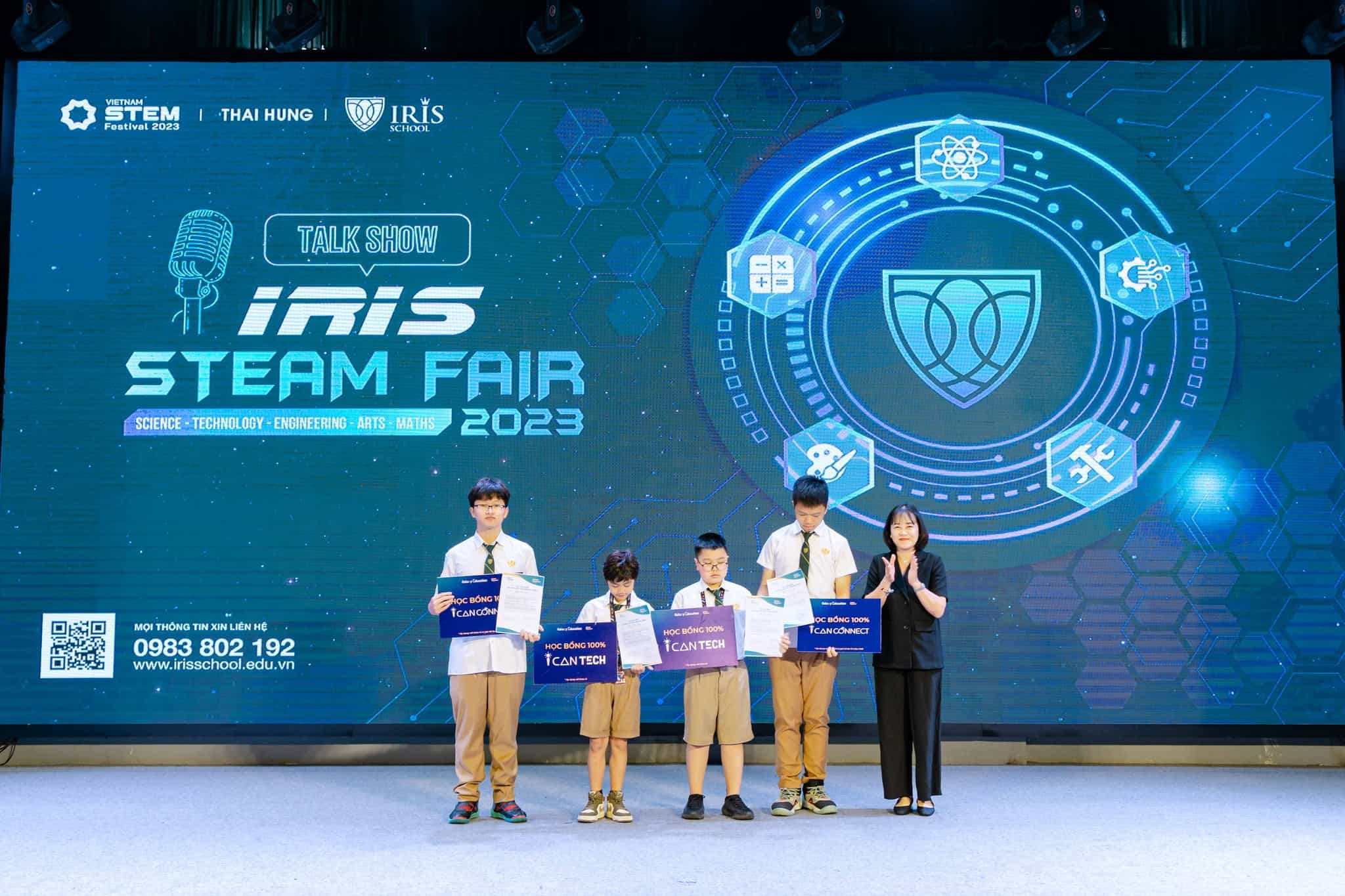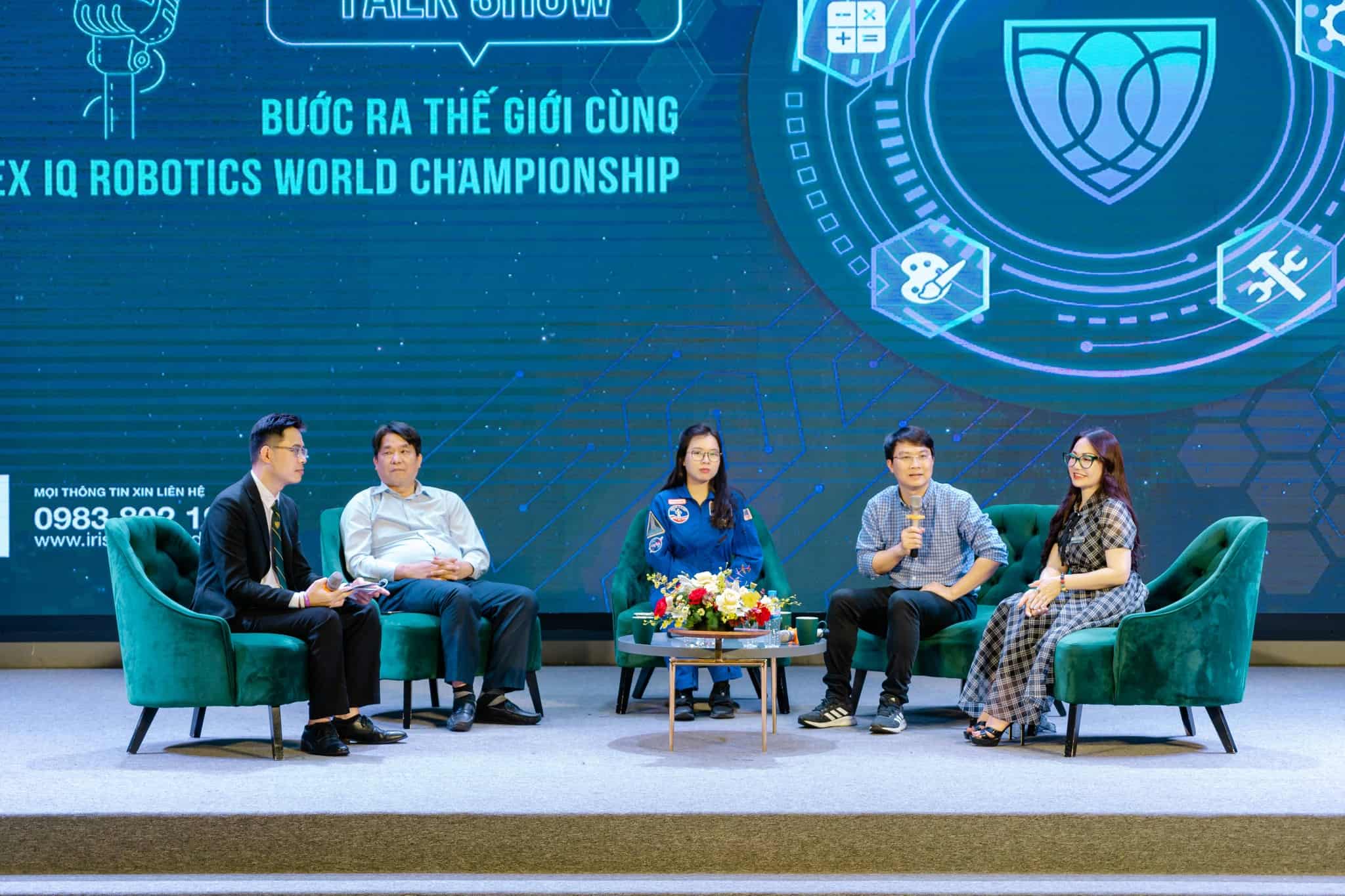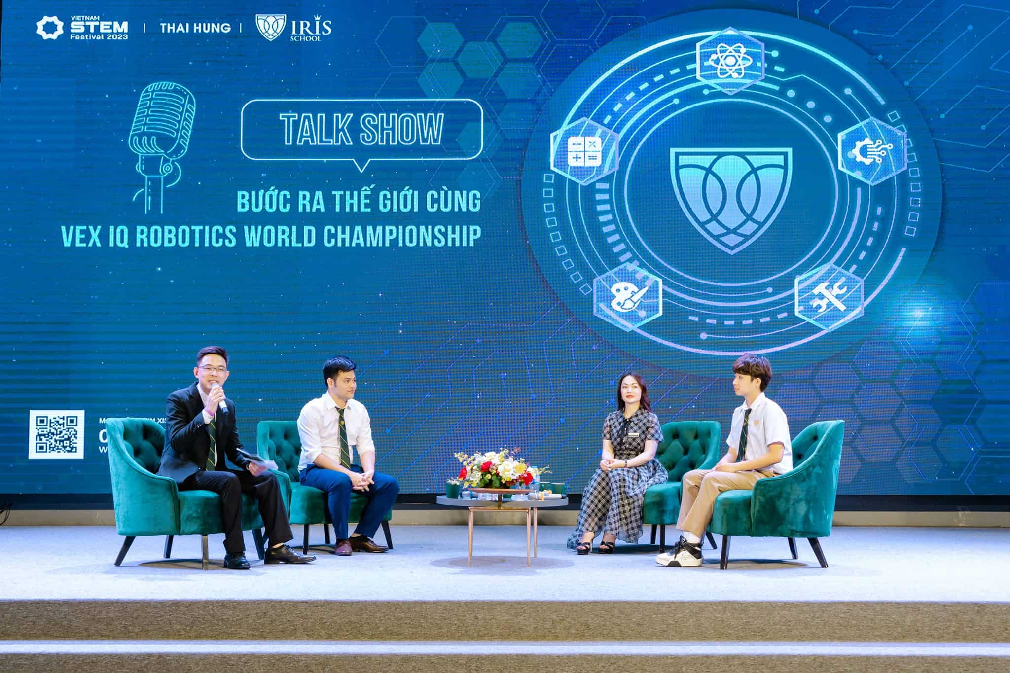 Đặc biệt, trong khuôn khổ IRIS STEAM FAIR 2023, Trường Iris tổ chức Talkshow “Bước ra thế giới cùng VEX IQ Robotics World Championship” với sự tham gia của các chuyên gia hàng đầu trong lĩnh vực STEM tại Việt Nam như: Kỹ sư Đỗ Hoàng Sơn – Thành viên Liên minh STEM – nhân vật của năm của STEAM for Vietnam, cô Đào Thị Hồng Quyên – Trưởng bộ môn Khoa học, phụ trách Xưởng sáng tạo xanh và Nhà giáo dục Xanh tại Hệ thống Trường Genesis – giáo viên Việt Nam đầu tiên nhận giải thưởng POR – Tỏa sáng sức mạnh tri thức, thông qua đề cử trực tiếp từ UNICEF, ThS. Hoàng Vân Đông, giảng viên Khoa Điện tử Viễn thông – Trường Đại học điện lực – Nhà sáng lập Học viện Kidscode và TS. Bạch Phương Vinh – Tổng Hiệu trưởng Trường Iris