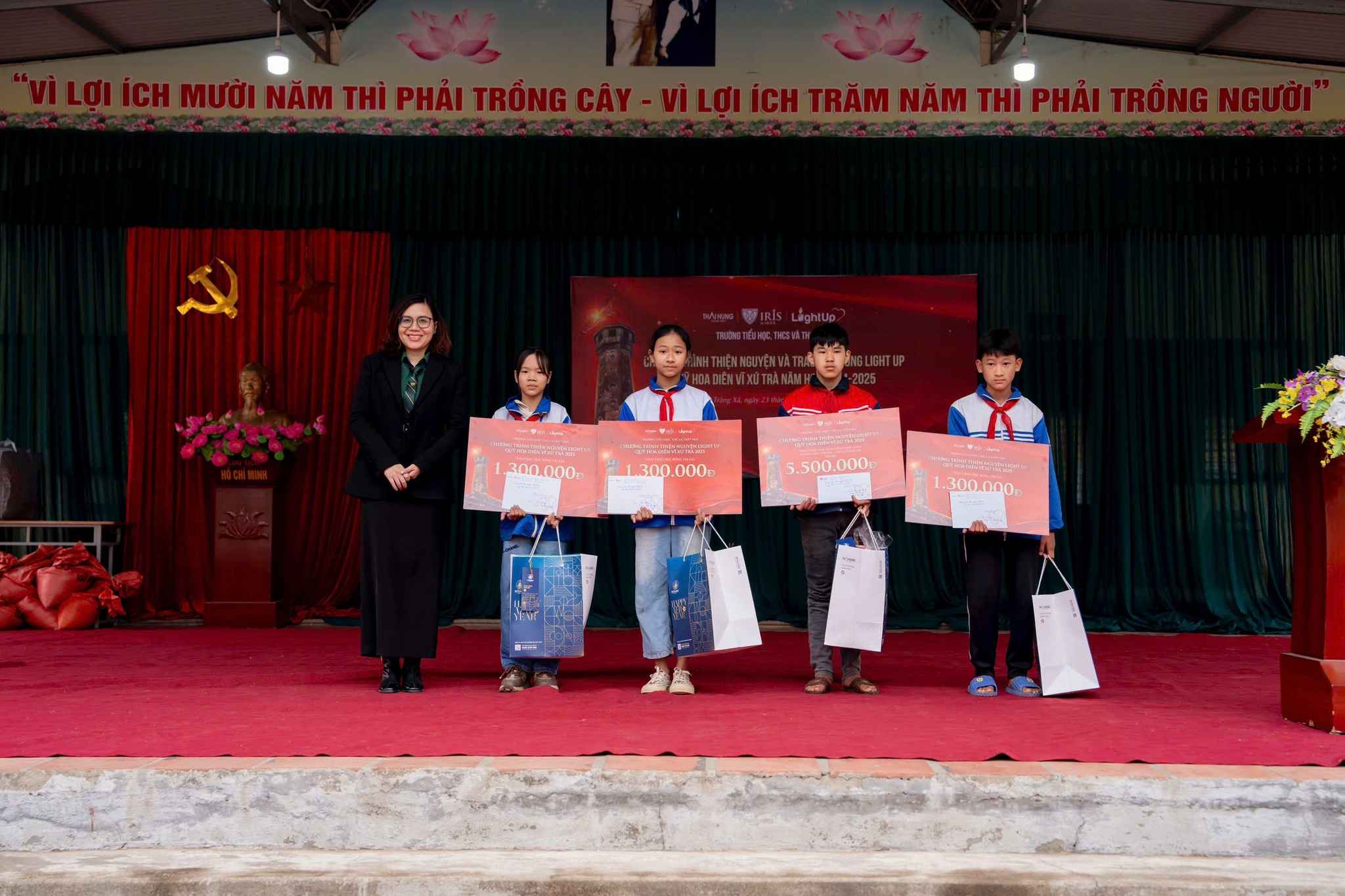 Hoạt động này là một phần trong chương trình học tập dự án liên môn “Light Up” của cấp THCS trong học kỳ I, năm học 2024 – 2025. Trong suốt thời gian thực hiện dự án, Irisers từ khối 6 đến khối 9 đã cùng nhau tổ chức nhiều hoạt động gây quỹ từ thiện như bán hàng gây quỹ, triển lãm học tập và các buổi biểu diễn nghệ thuật. Qua chương trình, Quỹ Hoa diên vĩ xứ Trà đã nhận được sự đóng góp tận tâm của Quý đối tác, Quý Phụ huynh, các thầy cô giáo và tất cả các con học sinh. Số tiền ủng hộ đã được chuyển thành những phần quà ý nghĩa dành tặng cho những hoàn cảnh khó khăn, những nạn nhân bị nhiễm chất độc da cam nhân dịp Tết Nguyên đán Ất Tỵ 2025.