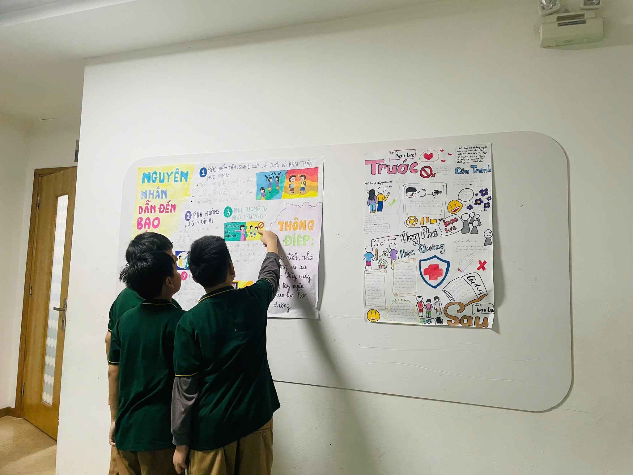 Những ngày qua, hành lang lớp học cấp THCS Iris School đã trở nên sinh động hơn bao giờ hết với những tấm poster tuyên truyền chống bạo lực học đường do chính các bạn học sinh khối 7 thiết kế.