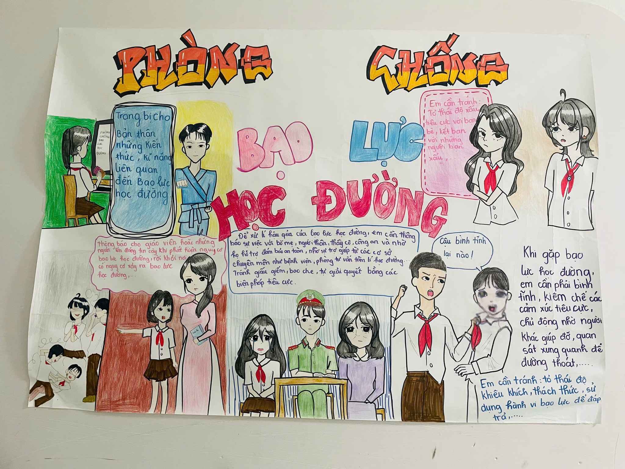 Những ngày qua, hành lang lớp học cấp THCS Iris School đã trở nên sinh động hơn bao giờ hết với những tấm poster tuyên truyền chống bạo lực học đường do chính các bạn học sinh khối 7 thiết kế.