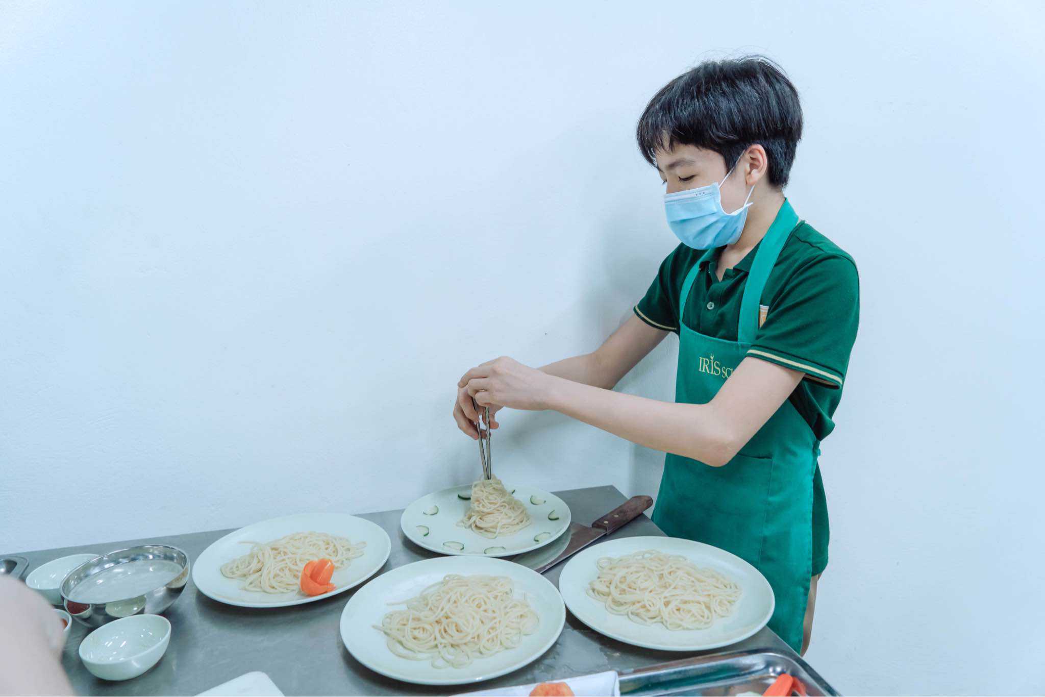Khi chế biến xong, món Spaghetti được các đầu bếp Irisers trang trí vô cùng đẹp mắt và hấp dẫn. Sau khi hoàn thiện, các con thuyết trình về sản phẩm để nhận thêm những đánh giá và góp ý của giáo viên phụ trách môn học để các món ăn sau này được hoàn thiện hơn.