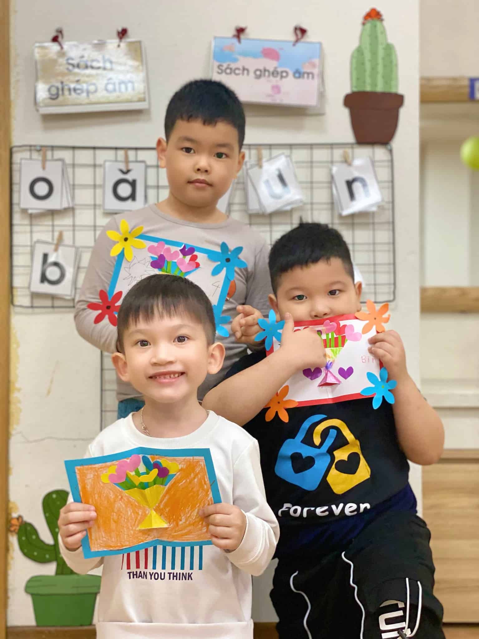 Nhân Ngày Quốc tế Phụ nữ 8/3, các bạn nhỏ dễ thương lớp Sunny 3 đã tự tay cắt, dán, tô màu để tạo nên những tấm thiệp thật nhiều màu sắc và gửi những lời chúc yêu thương dành tặng bà và mẹ.