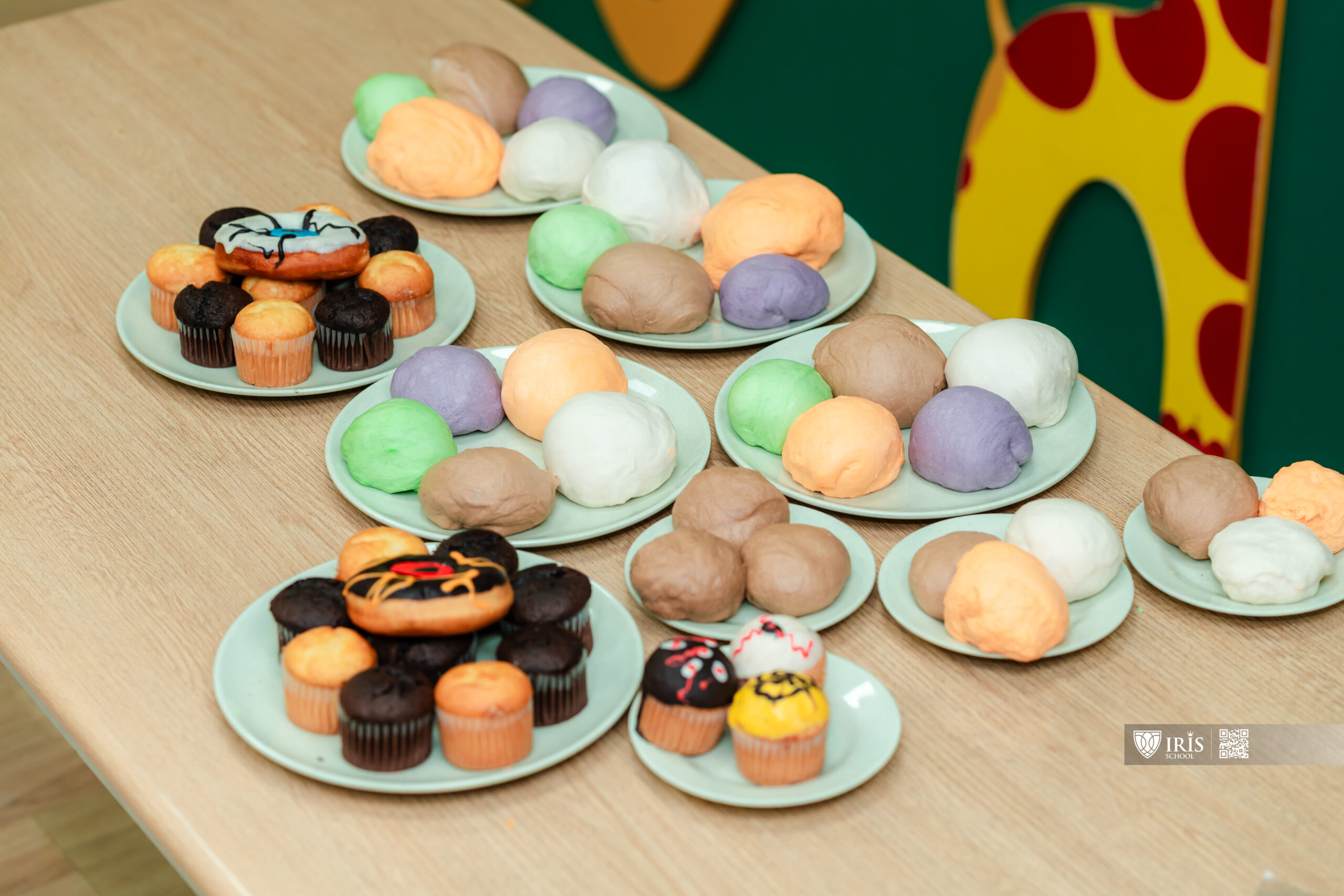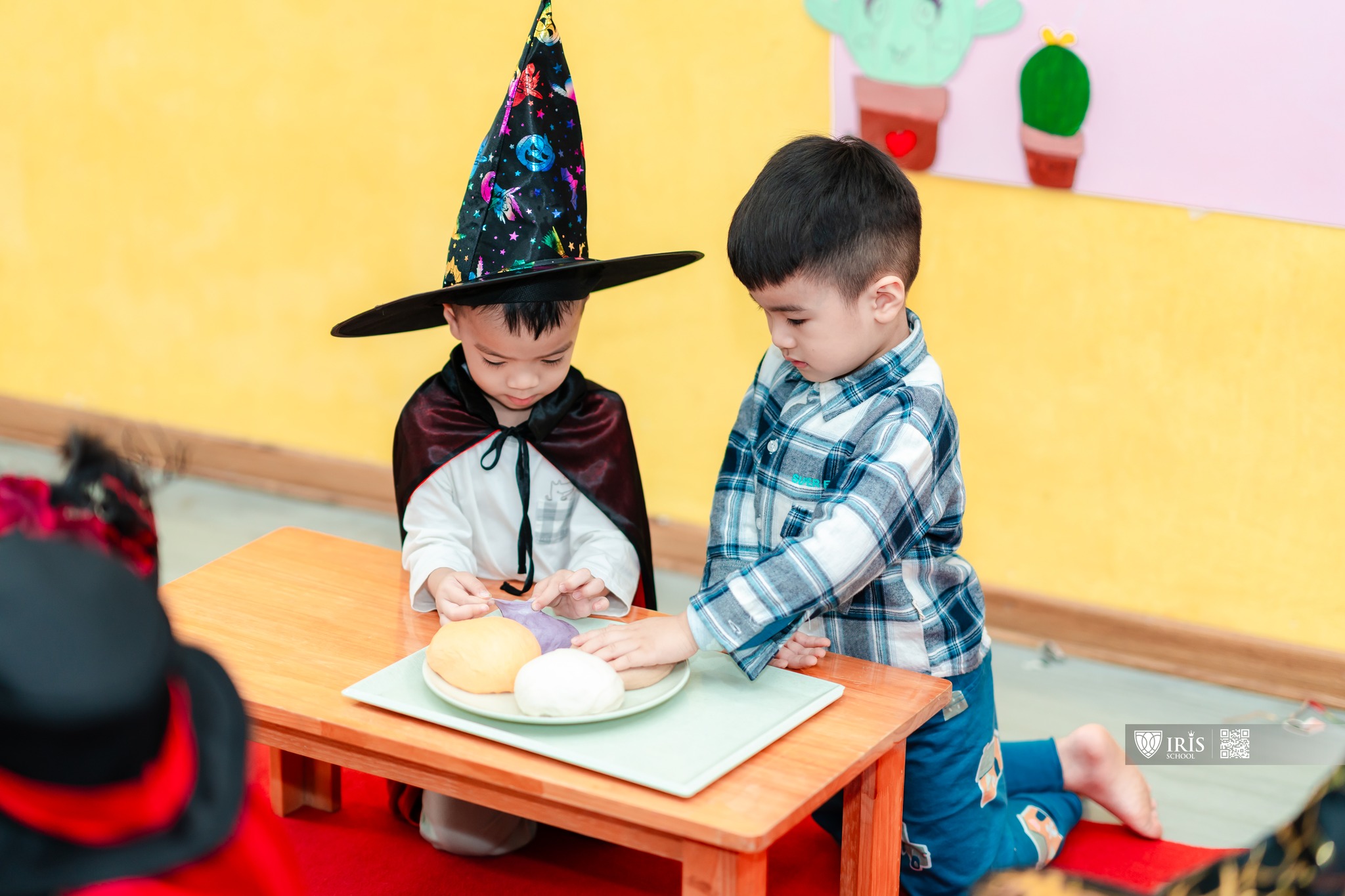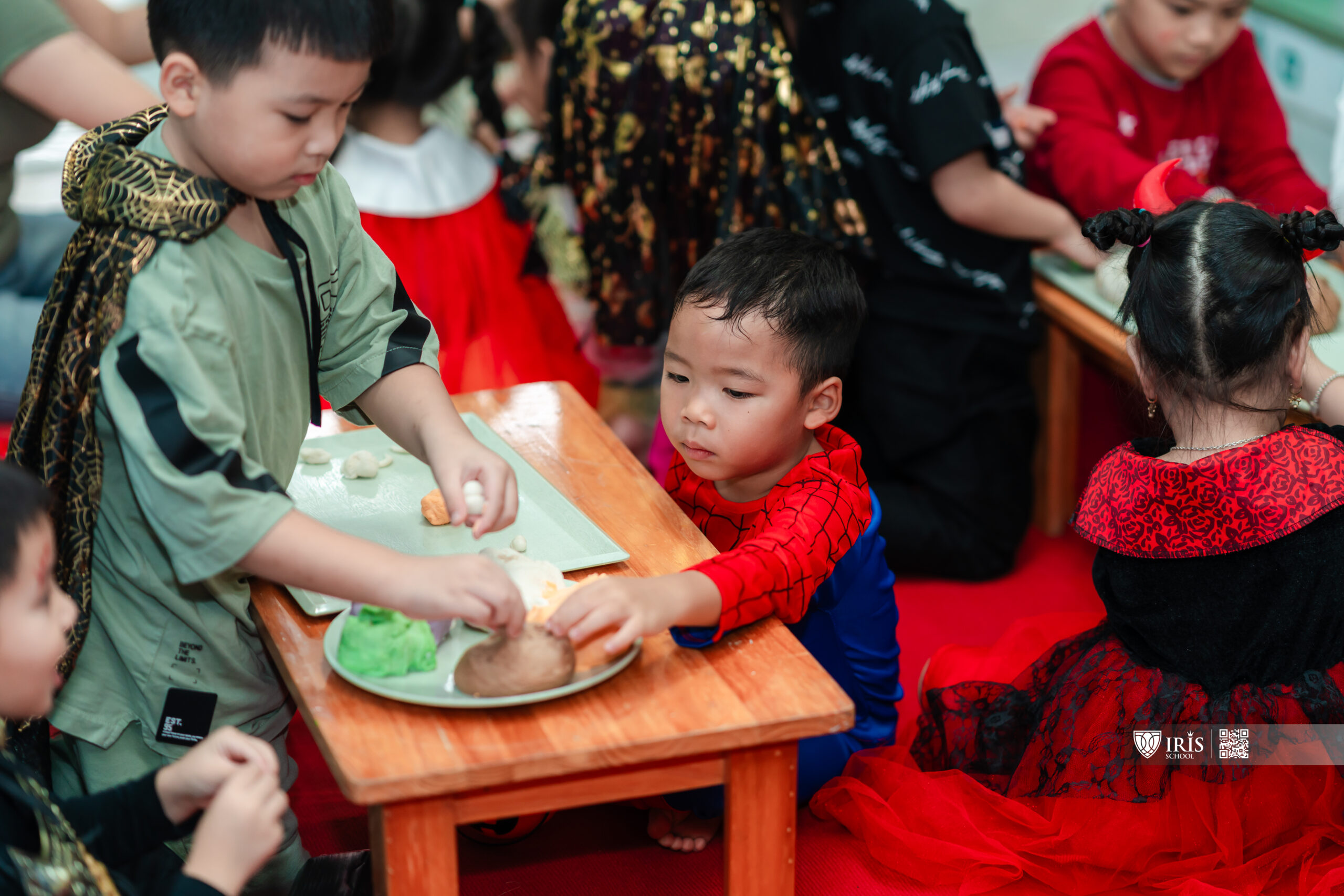 Không chỉ dừng lại ở phần hóa trang, các bạn nhỏ còn được tìm hiểu về nguồn gốc ngày lễ Halloween, tự tay làm bánh bao Halloween xinh xắn, và tham gia trò chơi “Trick or Treat” để rèn luyện sự tự tin, khéo léo.