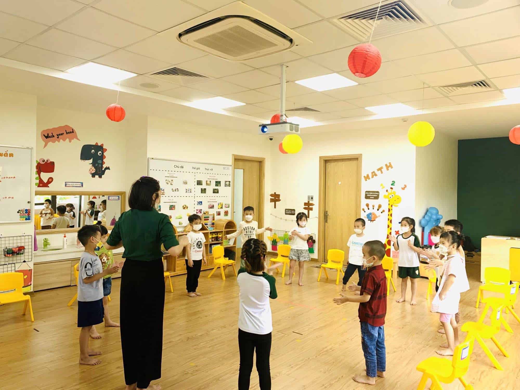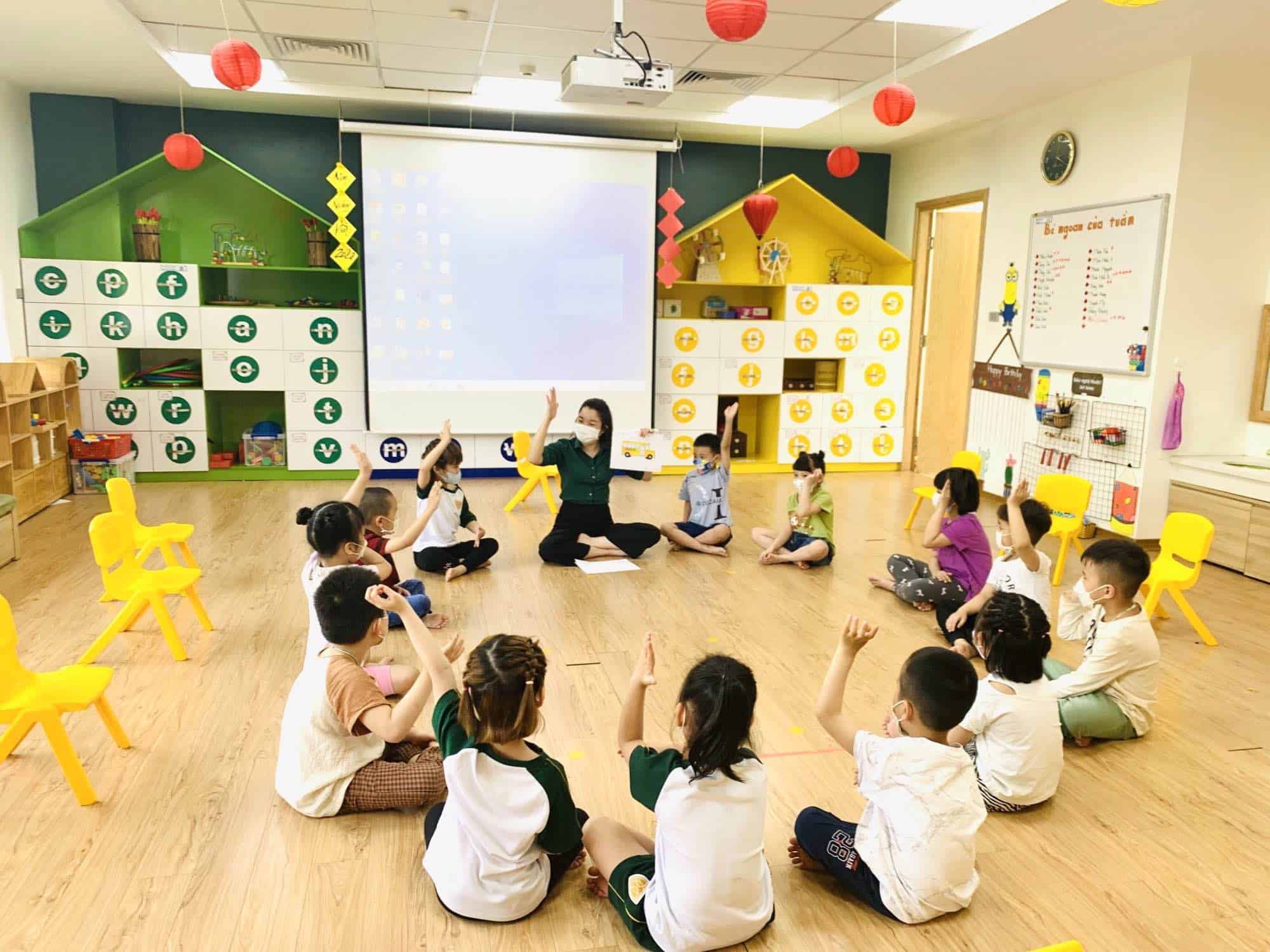 Cuối tiết học các con được củng cố những từ vựng được học thông qua ca khúc sôi động “My town song” và cùng nhau nhảy múa, vui vẻ.