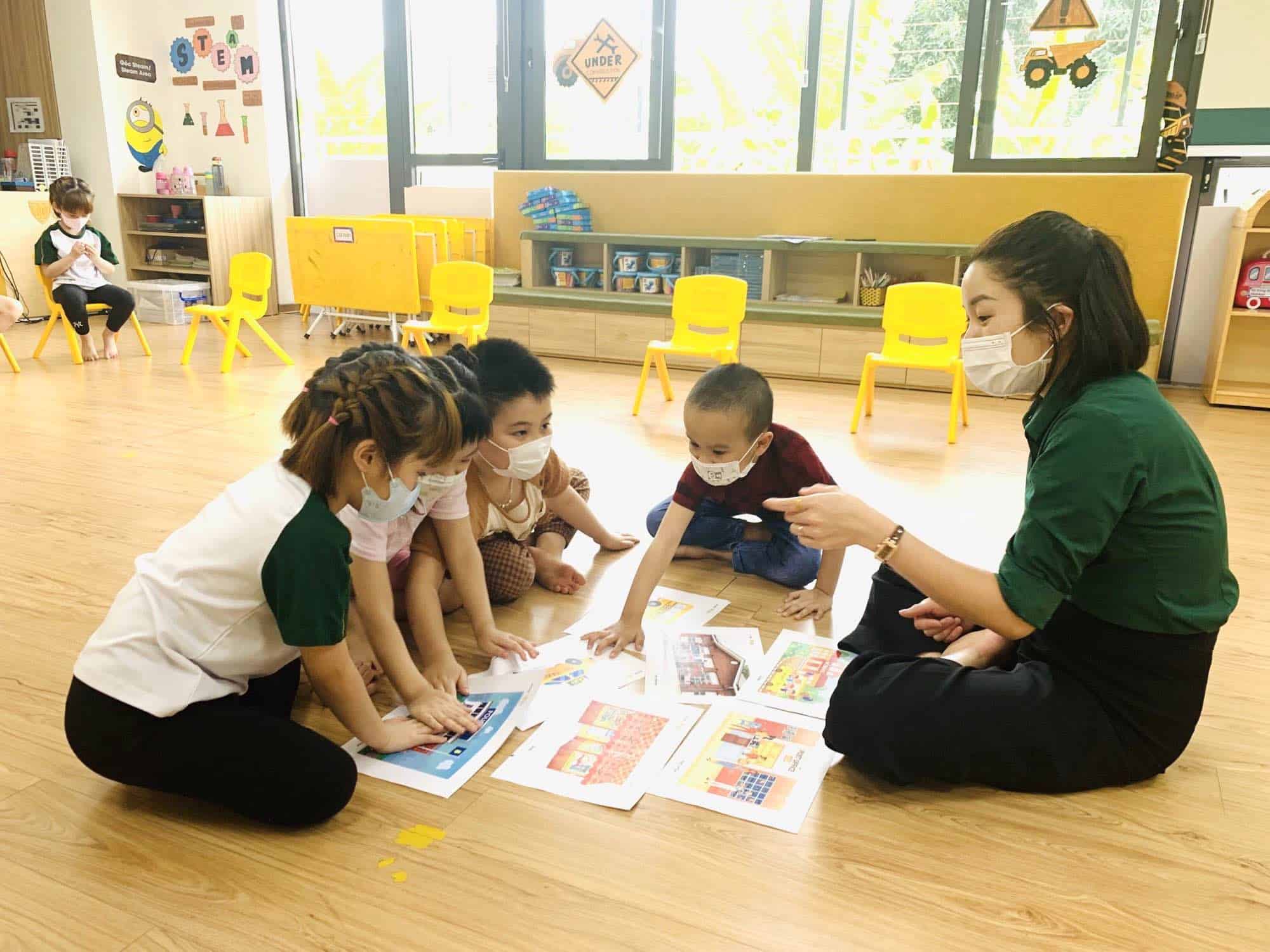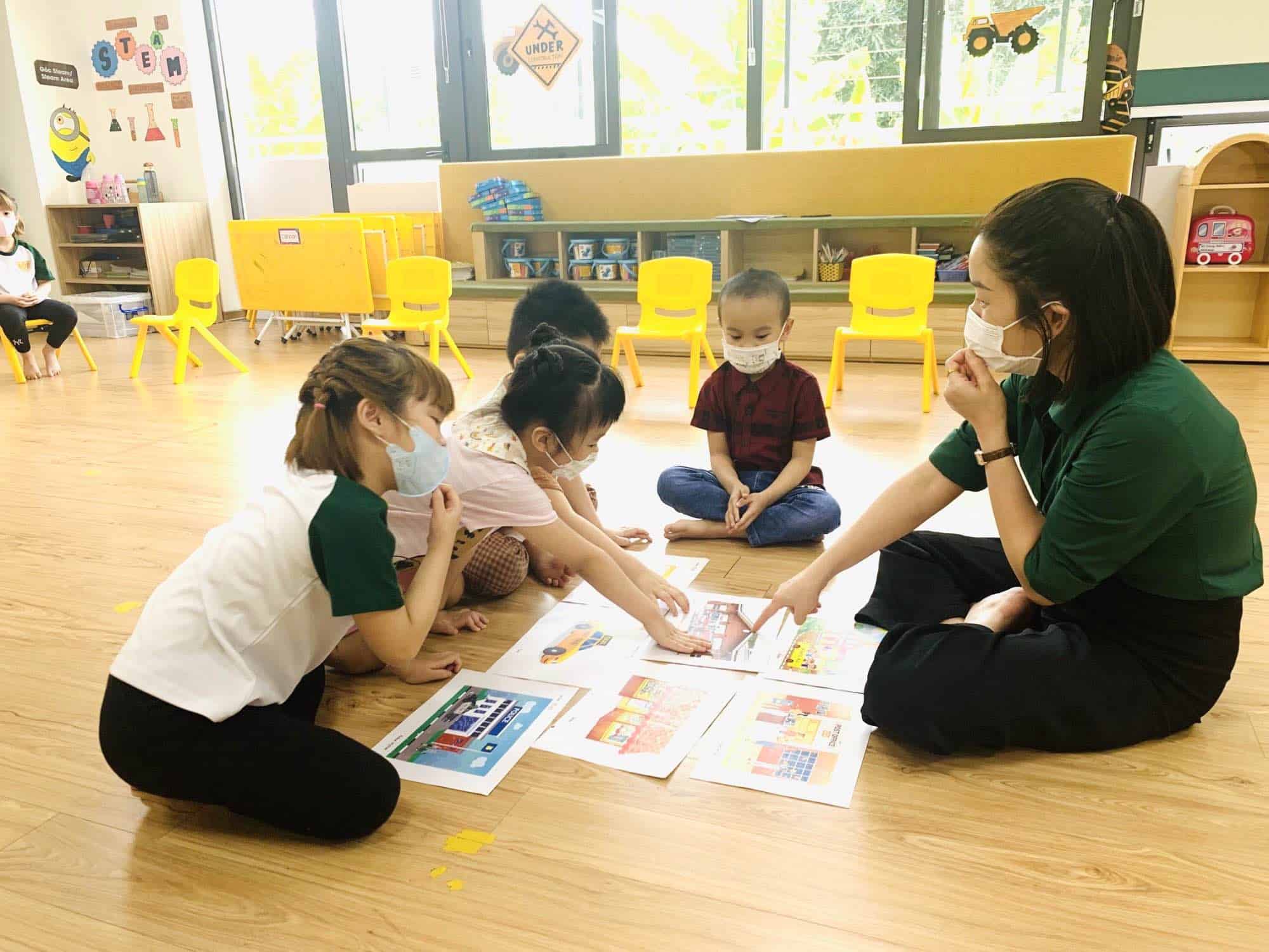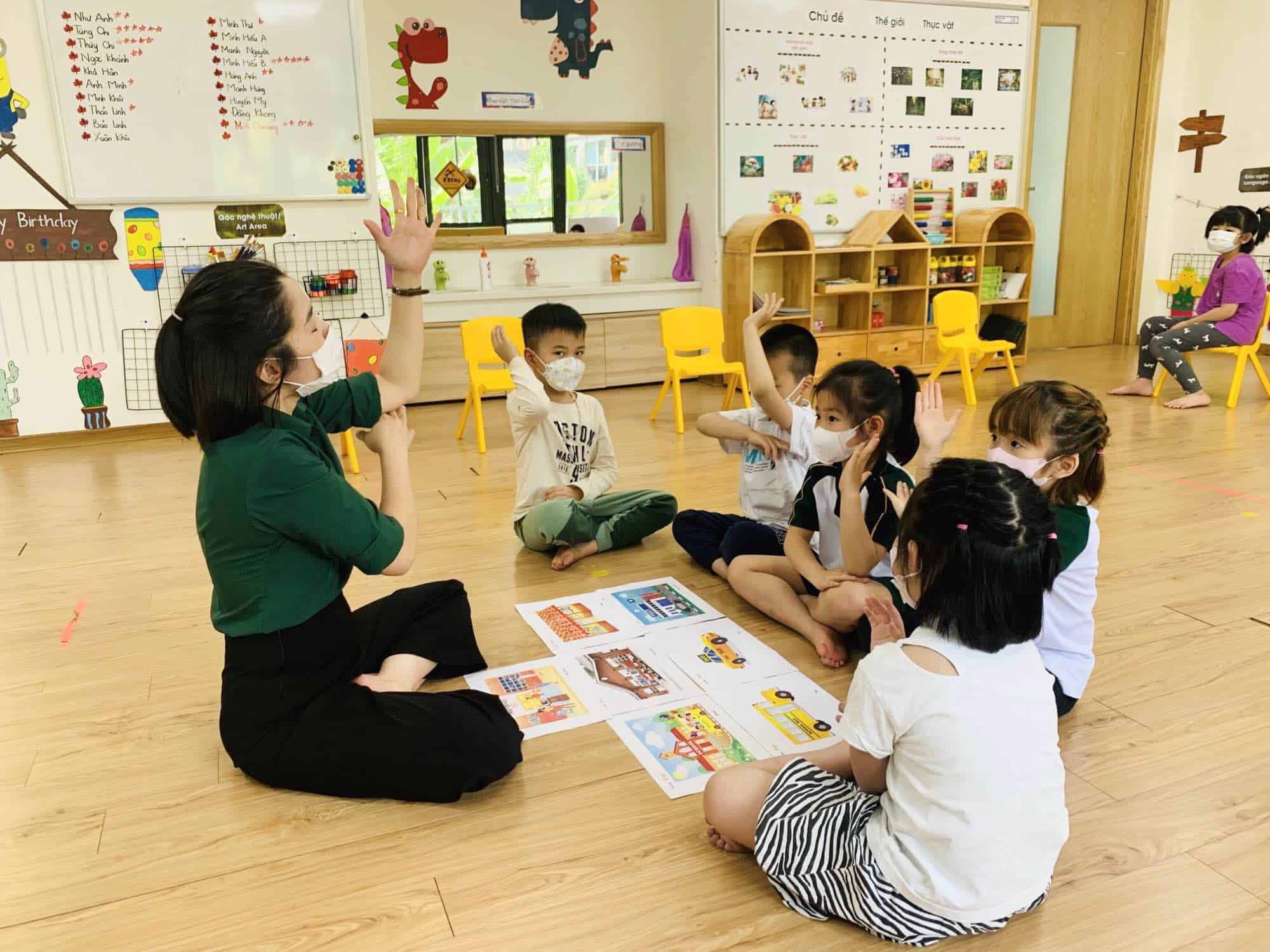 Đồng thời, các con cũng đươc tìm hiểu kỹ hơn về nghĩa của từ và mở rộng kiến thức thực tế thông qua phần hỏi – đáp đơn giản như: Con đến trường bằng gì? Ba mẹ con làm việc ở đâu?… từ đó giúp các con nhớ cách phát âm và nghĩa của từ lâu hơn và chính xác hơn.