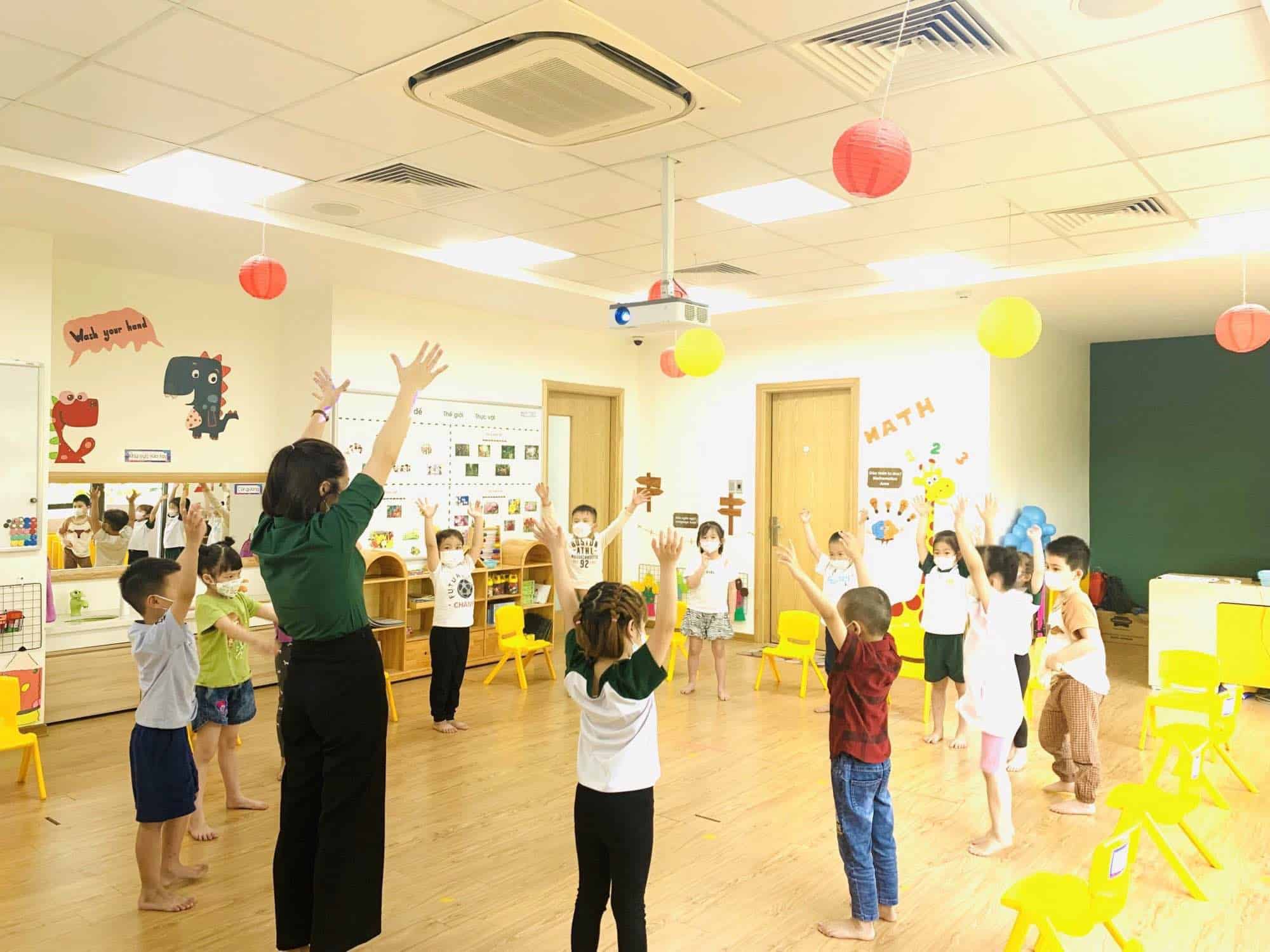 Cuối tiết học các con được củng cố những từ vựng được học thông qua ca khúc sôi động “My town song” và cùng nhau nhảy múa, vui vẻ.