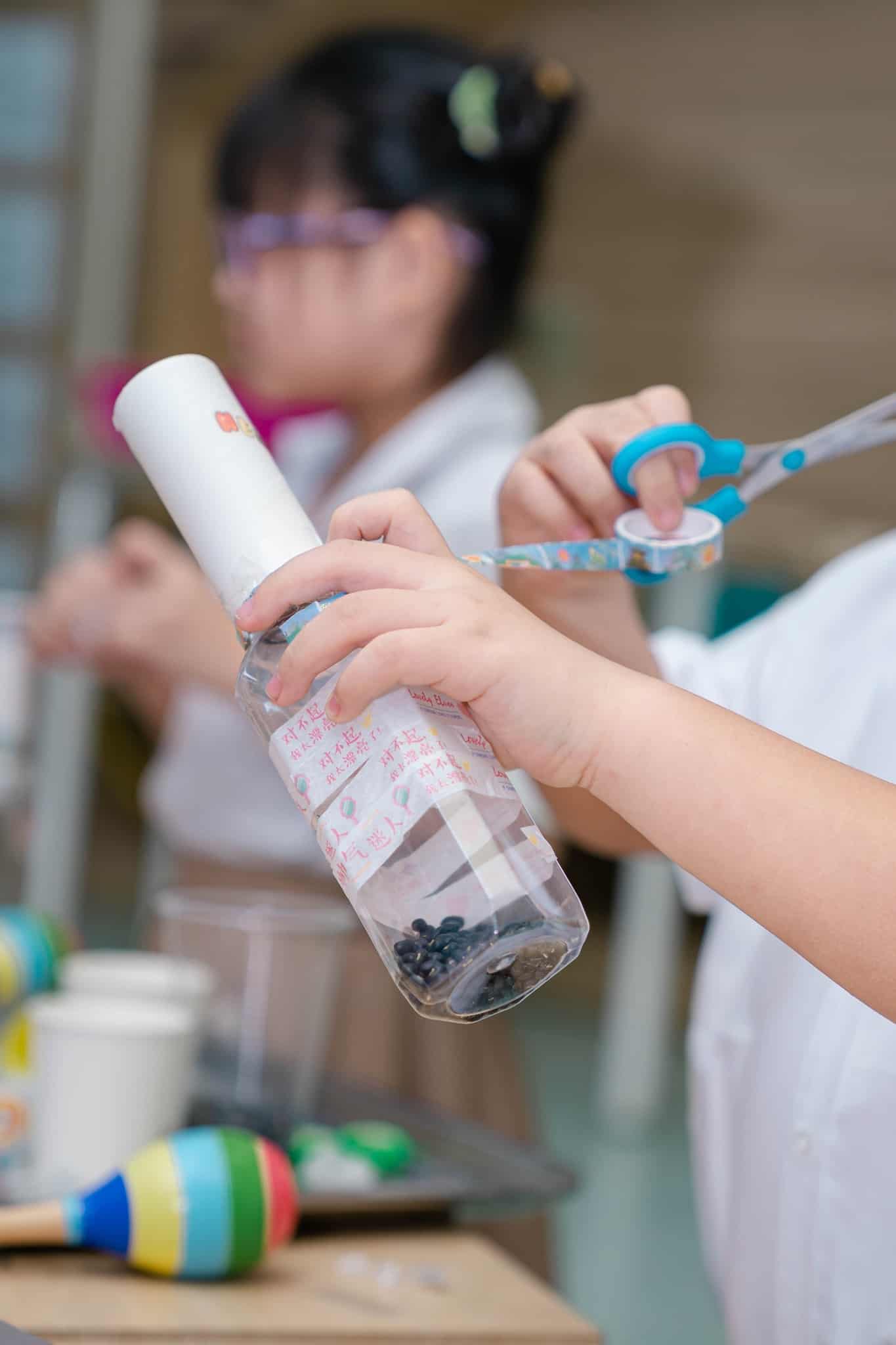 Đồng thời, Irisers cũng được cô Thu Hiền hướng dẫn làm nhạc cụ Maracas bằng các vật liệu tái chế như: Chai nhựa đã qua sử dụng, lõi giấy vệ sinh, hạt đỗ, băng dính, và sticker trang trí. Thành quả của các bạn nhỏ chính là những chiếc Maracas tràn ngập sắc màu với những âm thanh tuyệt vời.
