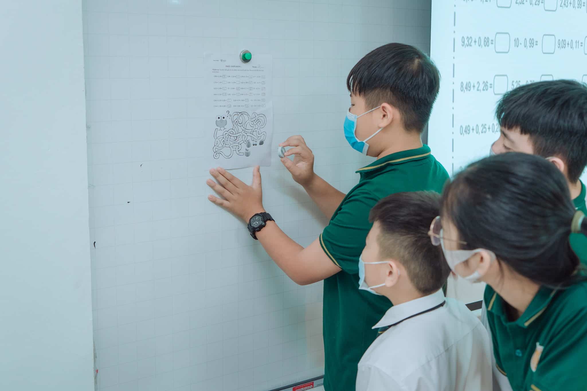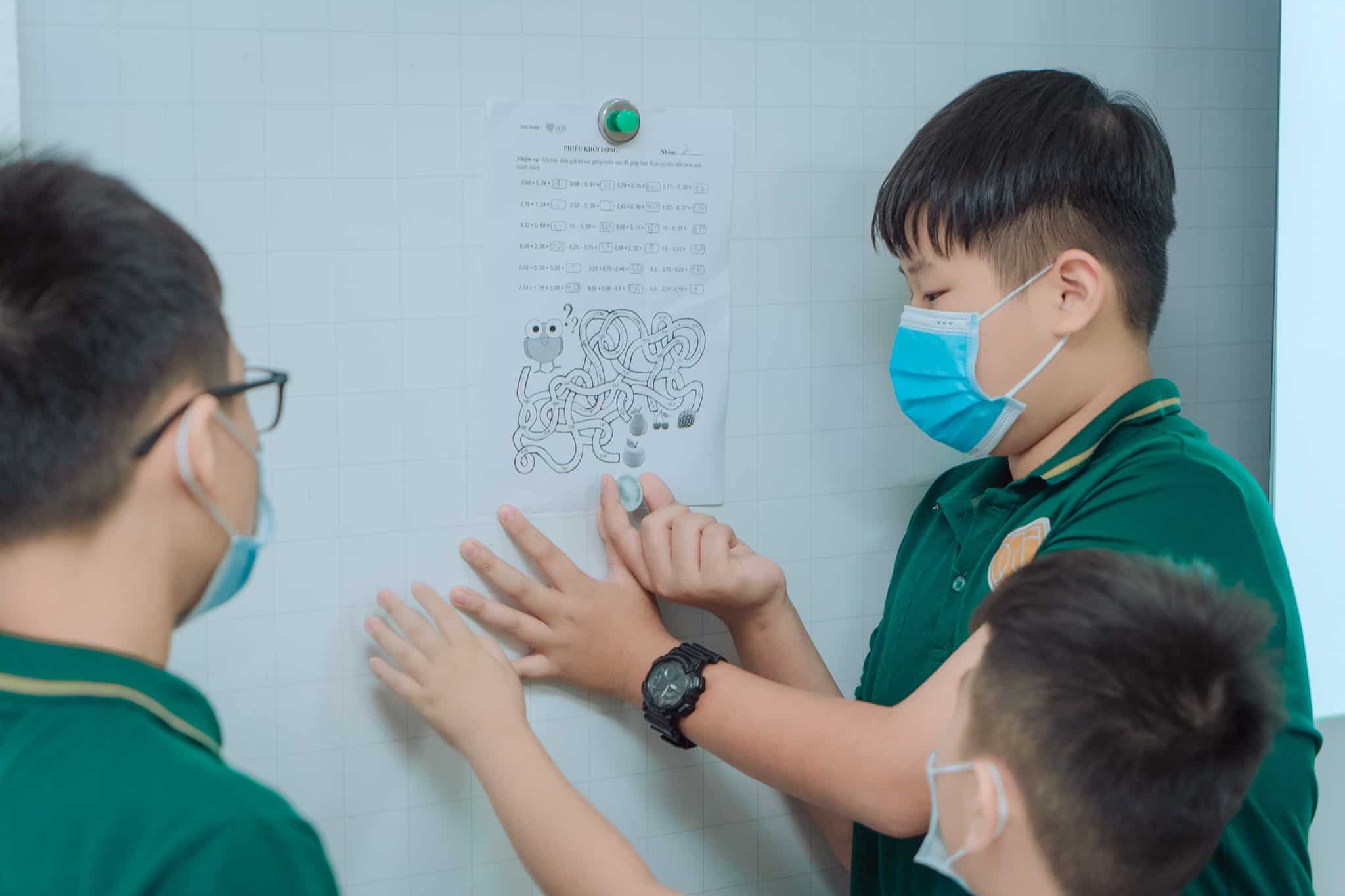 Mở đầu tiết Toán học của lớp 7A1, các con đã được tham gia trò chơi “Tìm đường đi đúng cho Họa mi”. Tham gia trò chơi, các bạn được làm việc theo nhóm và cùng nhau giải các phép toán được đưa ra phù hợp với nội dung kiến thức của cấp học và từ đó vẽ đường đi của bạn Họa mi tìm đến với loại hoa quả mà mình thích. Chỉ trong vài phút làm việc hăng say, hứng khởi các nhóm đều đã giải đúng các phép toán và dẫn đường cho bạn Họa mi một cách xuất sắc. Thông qua trò chơi này, các con đã ôn lại được kiến thức của bài cũ và có một màn khởi động rất vui vẻ, tạo cảm hứng cho một ngày học tập hiệu quả.