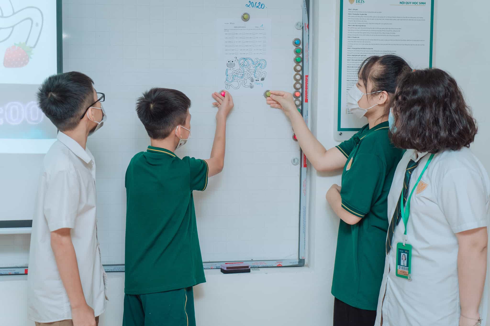 Để tạo hứng thú cho Irisers xuyên suốt tiết học, các thầy cô giáo tại Iris School luôn triển khai những cách vào bài học lôi cuốn, hấp dẫn học sinh. Thay vì vào bài trực tiếp thì các thầy cô bắt đầu với một vấn đề, trò chơi, câu đố để thu hút các con tham gia và nhanh chóng bắt nhịp bài học.