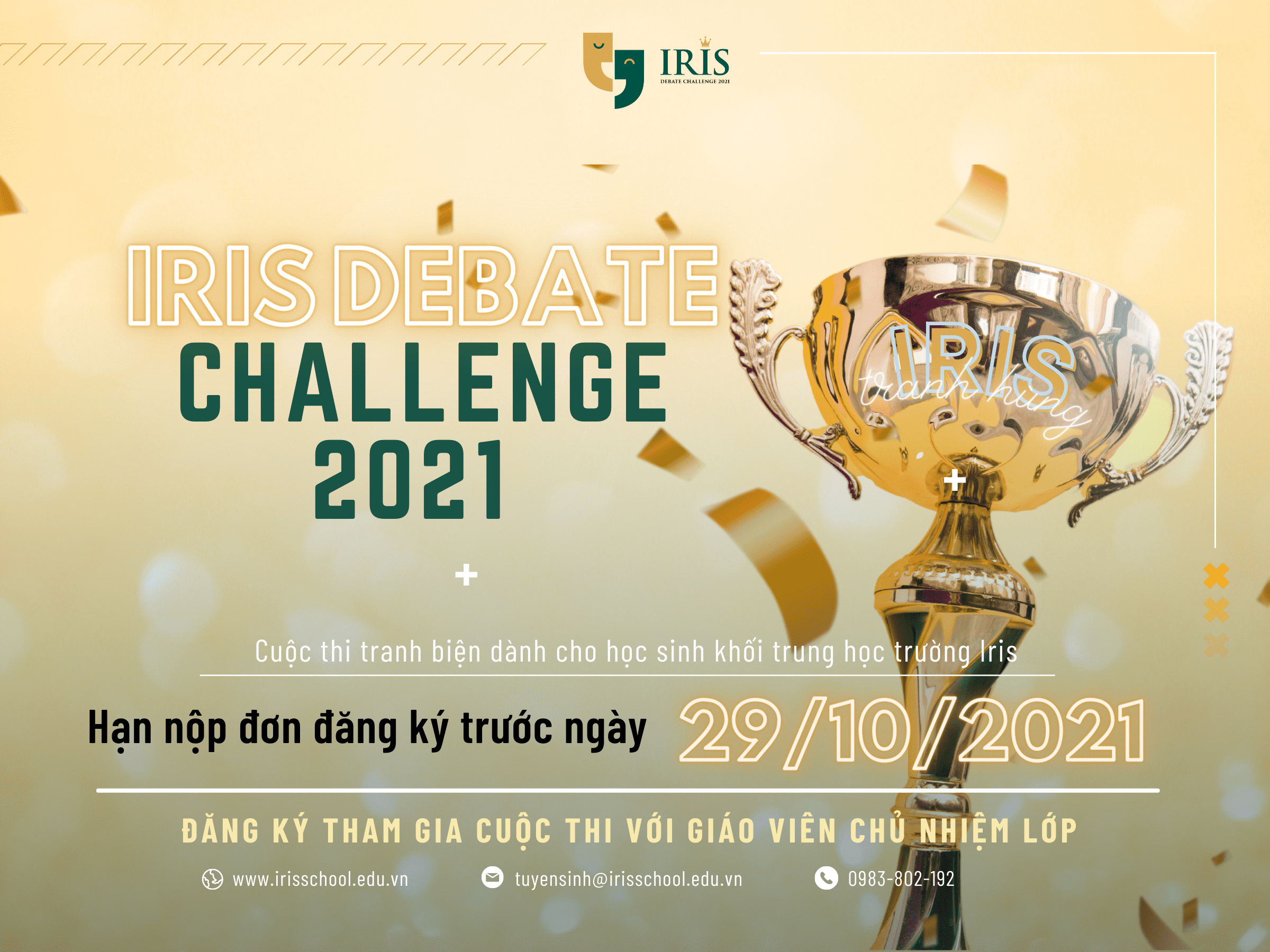 Hiểu được những vai trò và ý nghĩa quan trọng của kĩ năng này, trường Iris tổ chức sân chơi mang tên: Iris Debate Challenge dành cho các em học sinh cấp THCS và THPT. Lần đầu tiên được tổ chức, BTC mong muốn thông qua cuộc thi, các em học sinh sẽ được trải nghiệm, thực hành và vận dụng các kiến thức xã hội, được thể hiện quan điểm, góc nhìn và tiếng nói riêng của mình về những vấn đề trong cuộc sống.