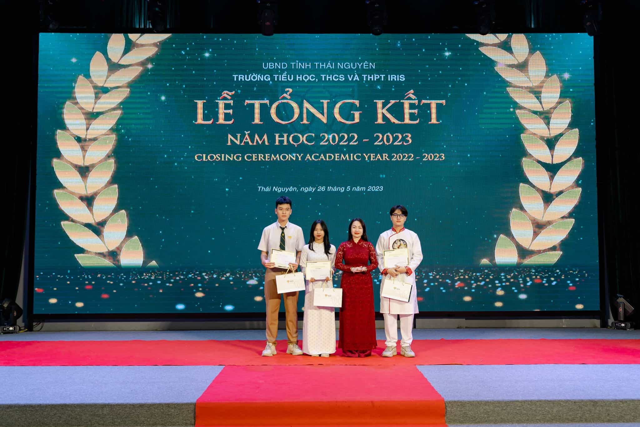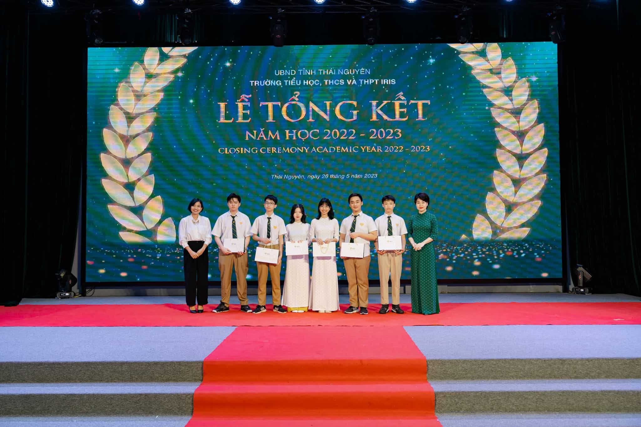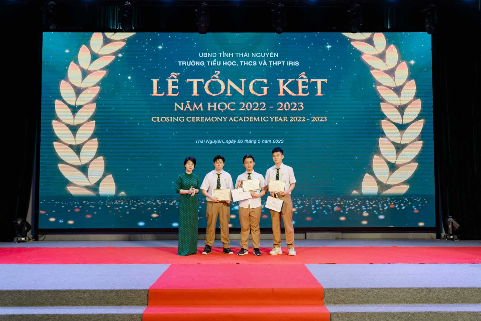 Tại buổi lễ, Nhà trường đã ghi nhận và biểu dương những thành tích xuất sắc mà Irisers cấp THPT đã giành được trong năm học vừa qua. Đó là những giải thưởng cao tại Cuộc thi Khoa học kỹ thuật, Kỳ thi Olympic quốc tế Toán, Khoa học và tiếng Anh – ASMO, Kỳ thi Olympic tiếng Anh trên Internet – IOE, Kỳ thi chọn học sinh giỏi các cấp… Đây là trái ngọt của một hành trình nỗ lực, chăm chỉ của các thầy giáo, cô giáo và tất cả các em học sinh.