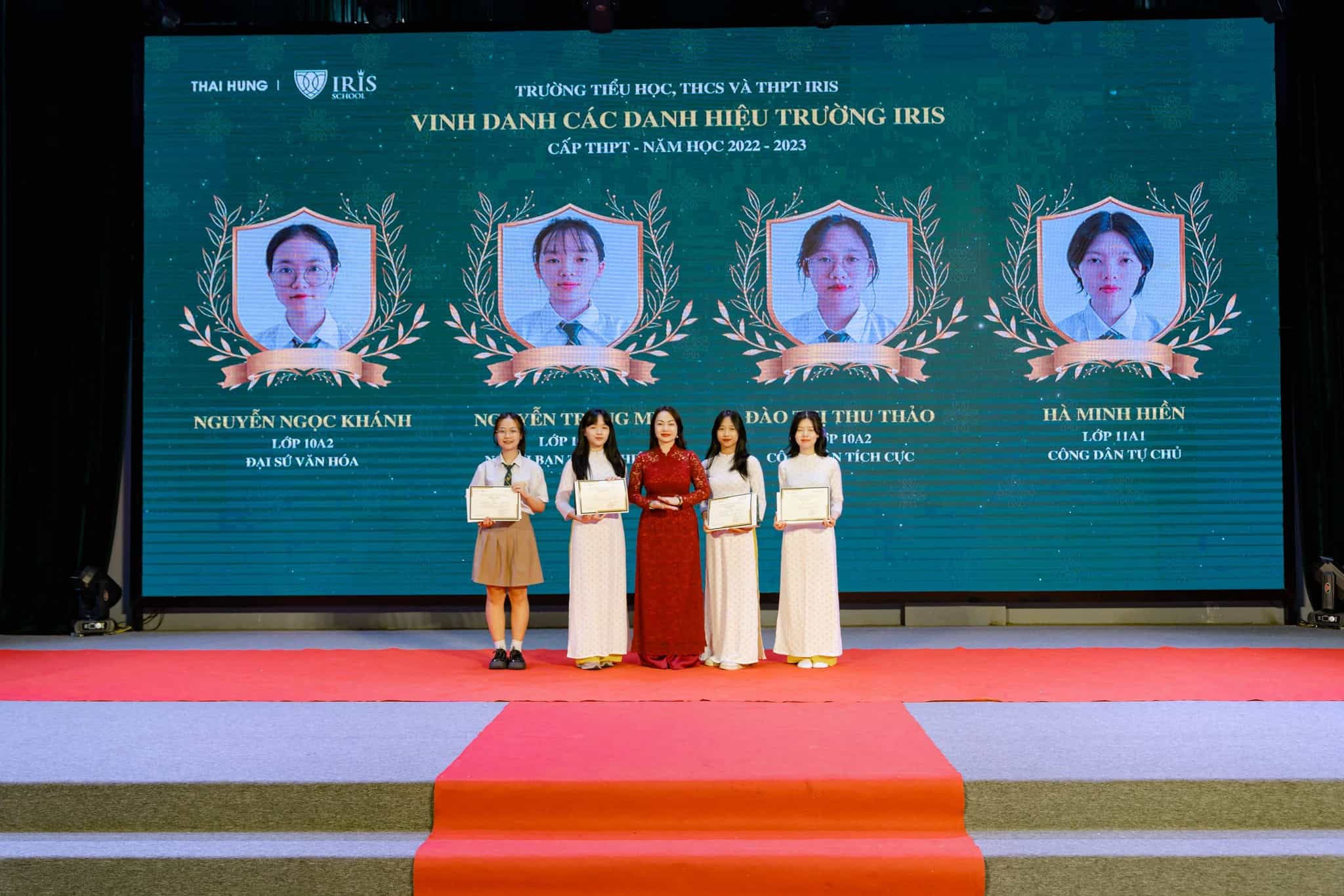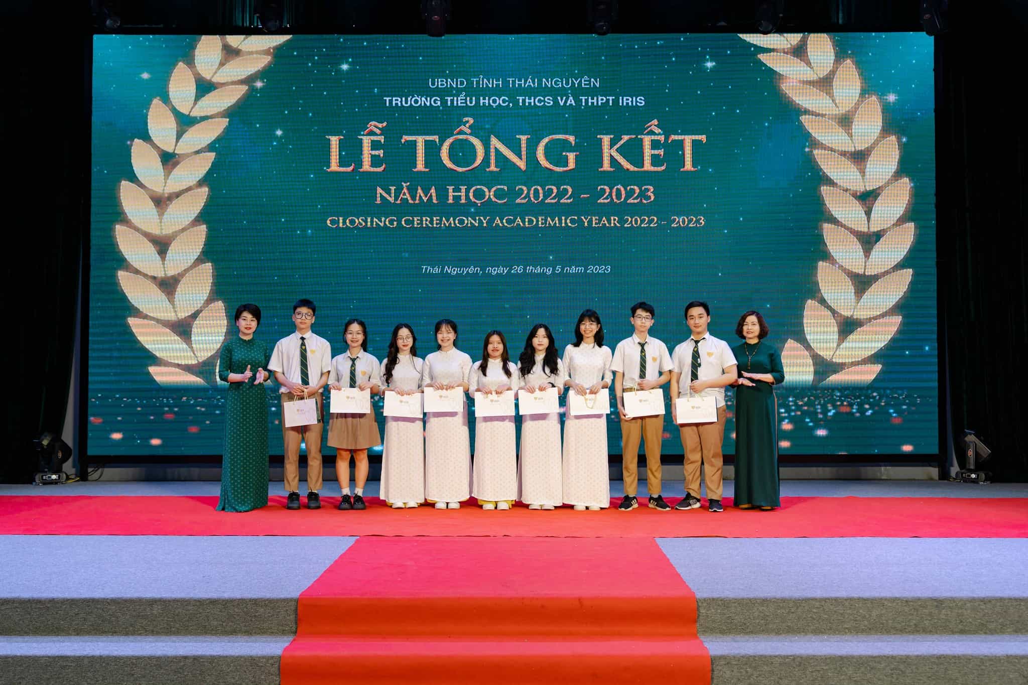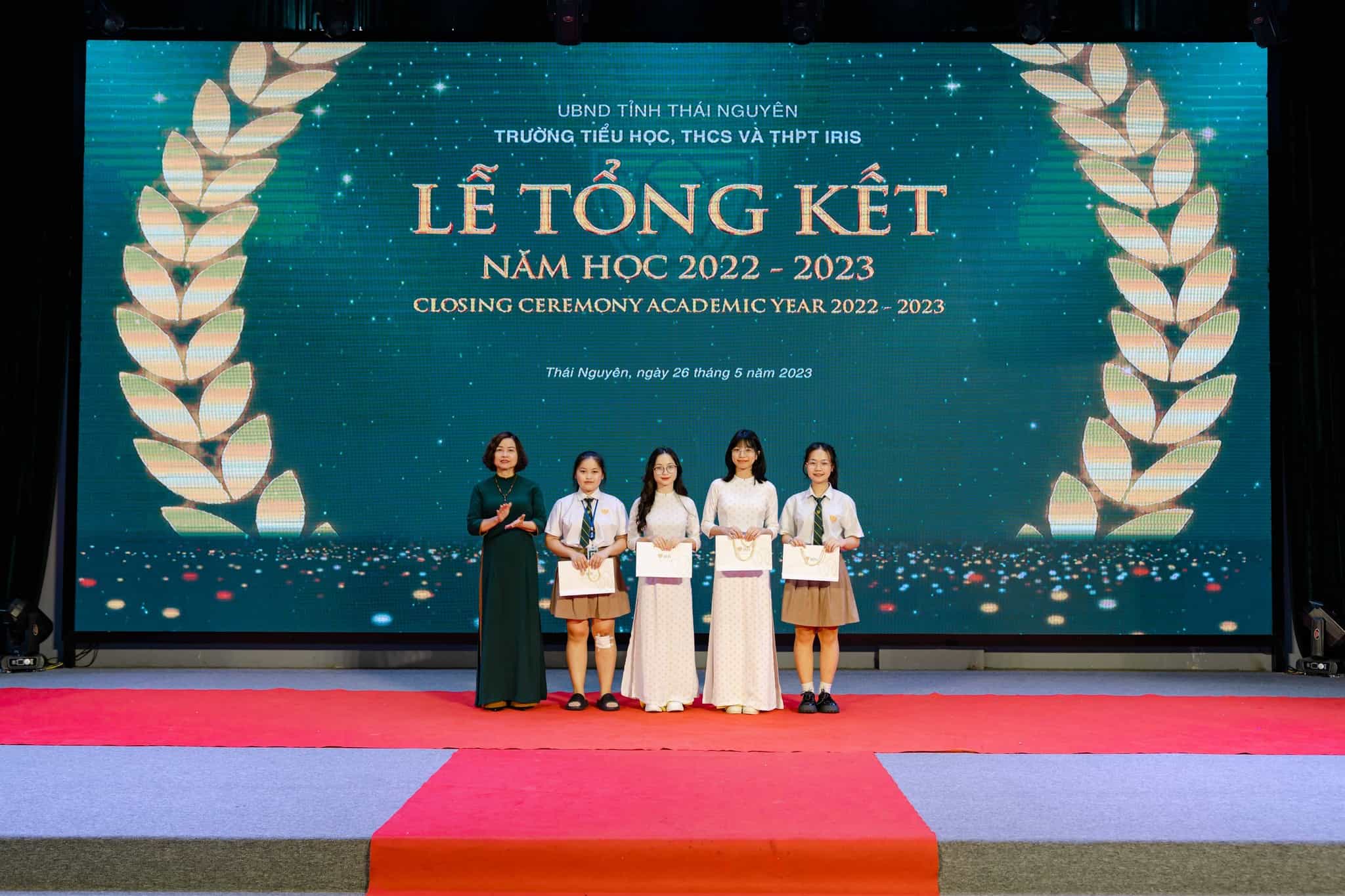 Tại buổi lễ, Nhà trường đã ghi nhận và biểu dương những thành tích xuất sắc mà Irisers cấp THPT đã giành được trong năm học vừa qua. Đó là những giải thưởng cao tại Cuộc thi Khoa học kỹ thuật, Kỳ thi Olympic quốc tế Toán, Khoa học và tiếng Anh – ASMO, Kỳ thi Olympic tiếng Anh trên Internet – IOE, Kỳ thi chọn học sinh giỏi các cấp… Đây là trái ngọt của một hành trình nỗ lực, chăm chỉ của các thầy giáo, cô giáo và tất cả các em học sinh.