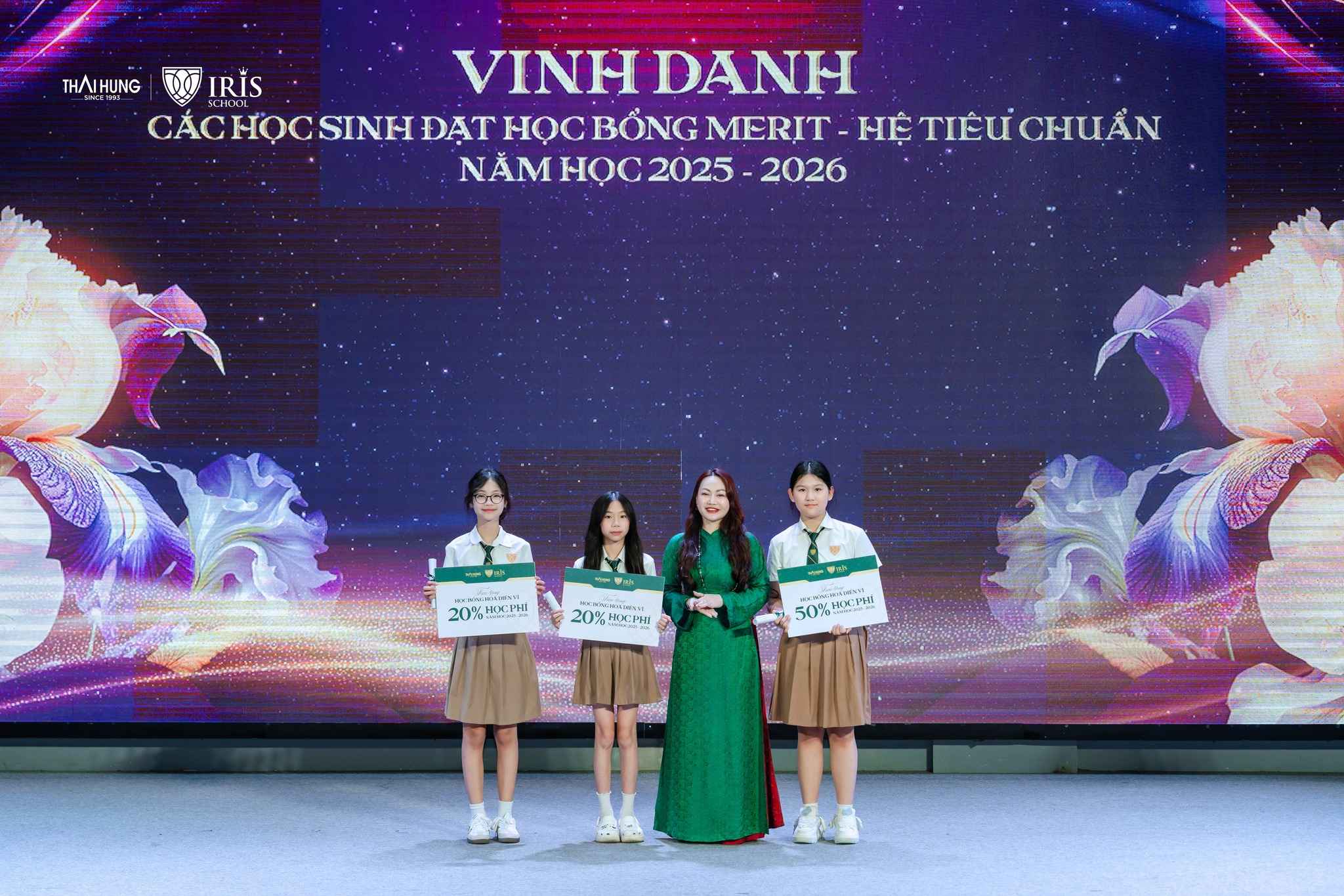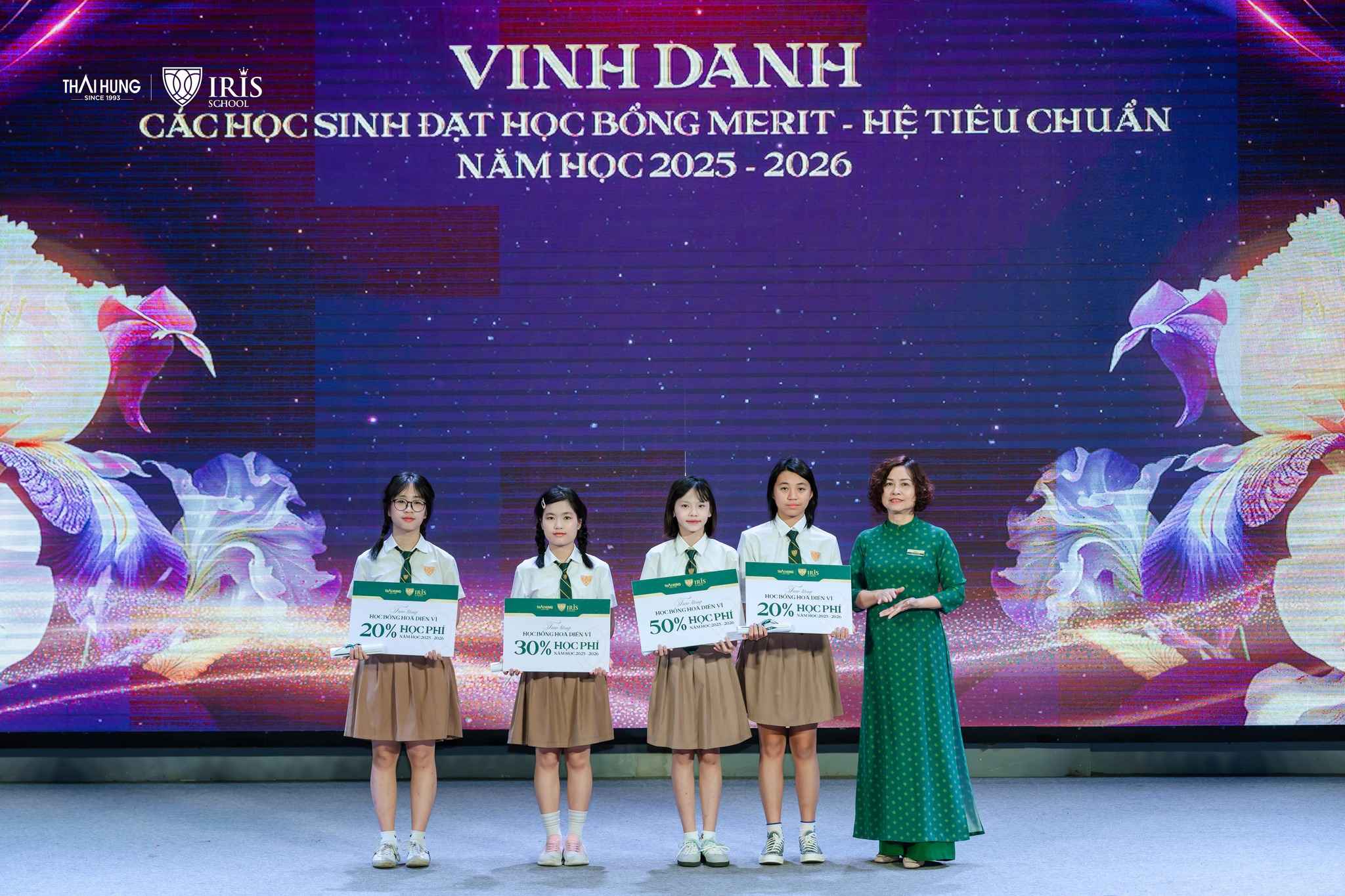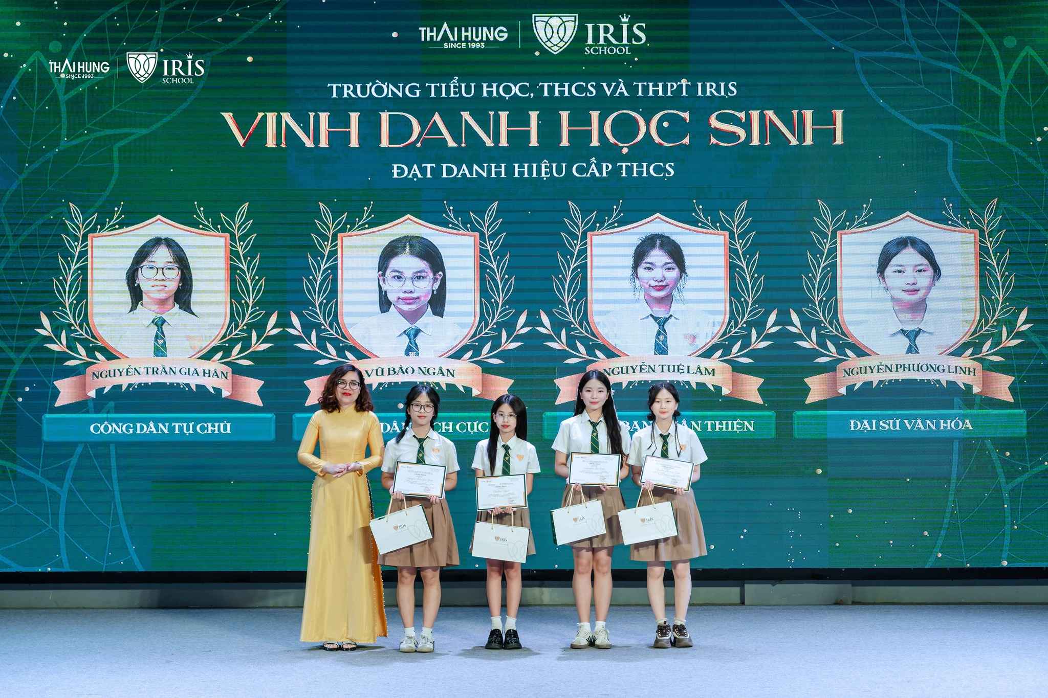 Lễ Tổng kết là dịp để nhà trường vinh danh và trao thưởng cho các tập thể lớp tiêu biểu, học sinh xuất sắc trong học tập và rèn luyện, cũng như những gương mặt năng động, sáng tạo trong hoạt động phong trào. Đặc biệt, Học bổng Hoa diên vĩ đã được trao cho những học sinh nổi bật nhất cấp THCS, những ngôi sao sáng của ngôi nhà chung Iris.