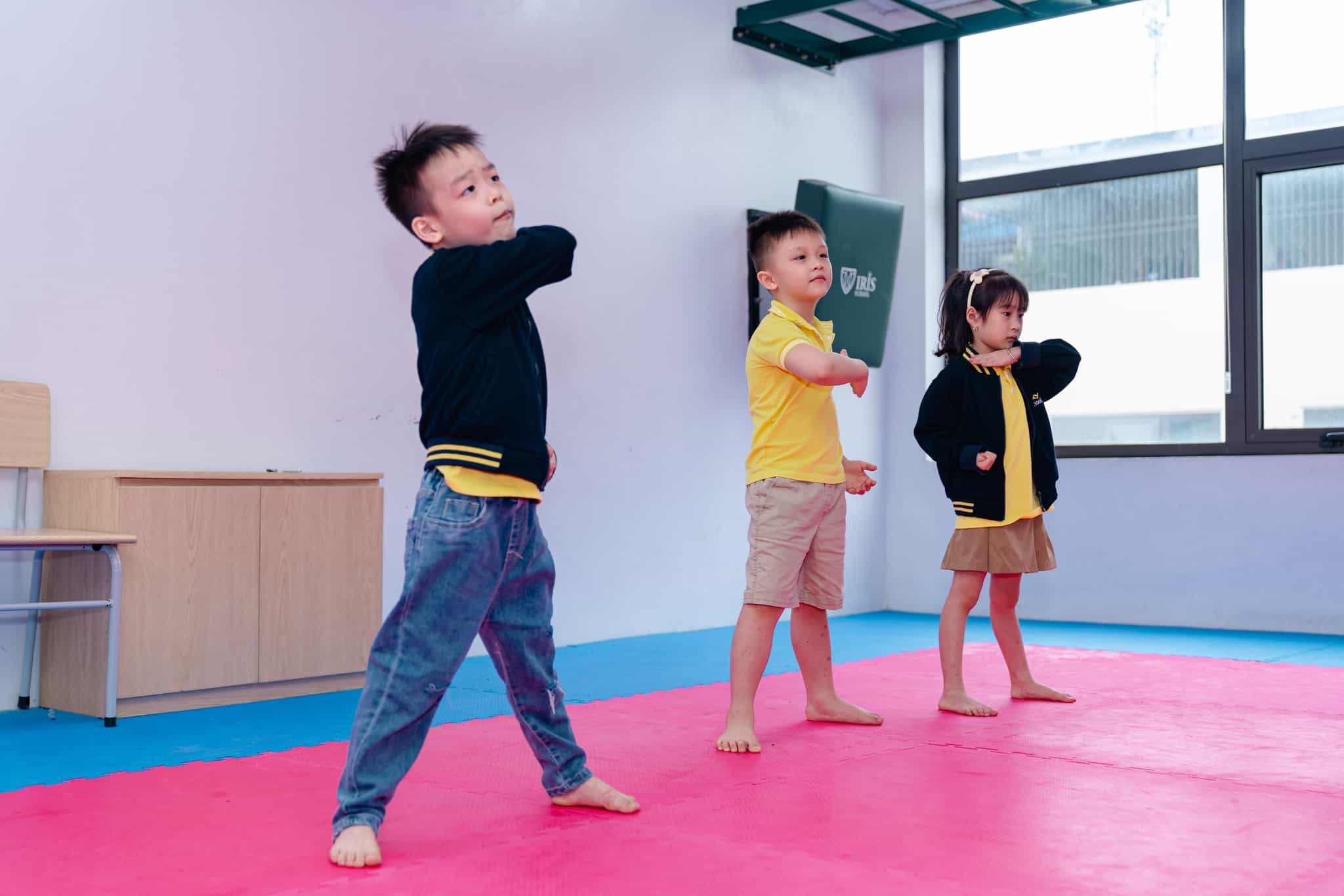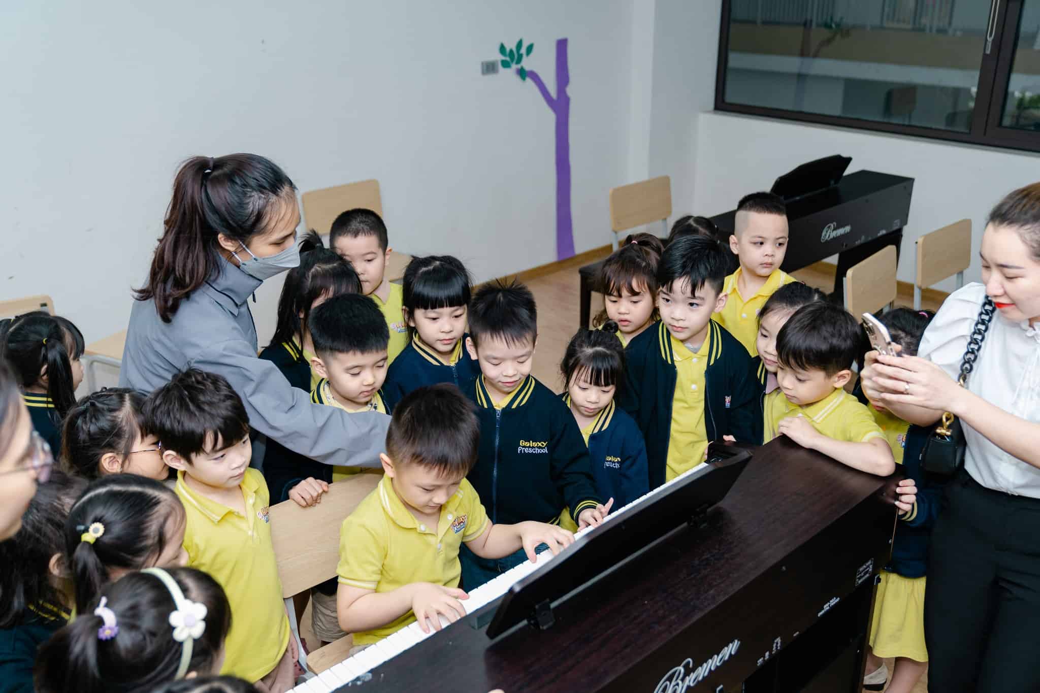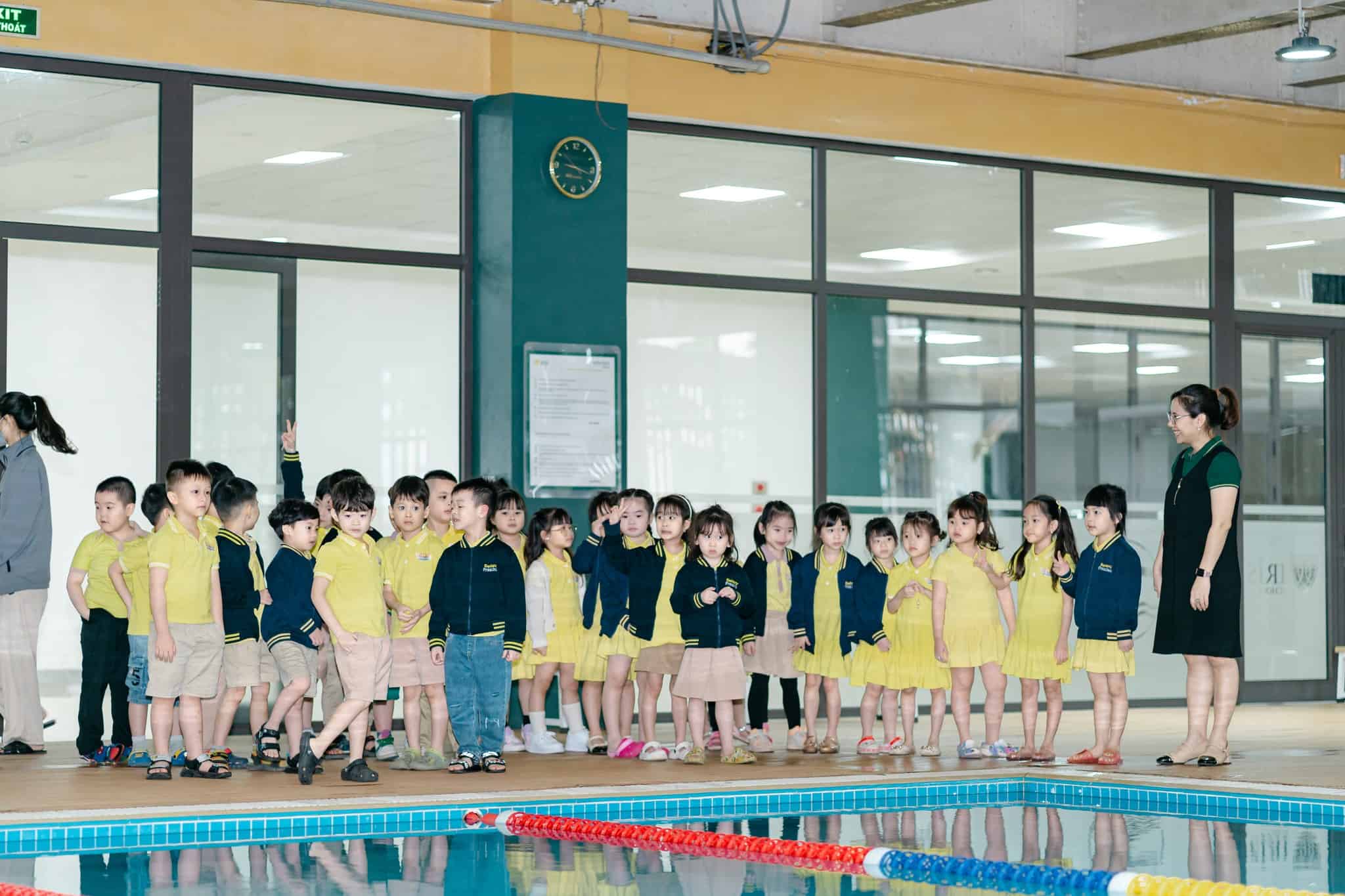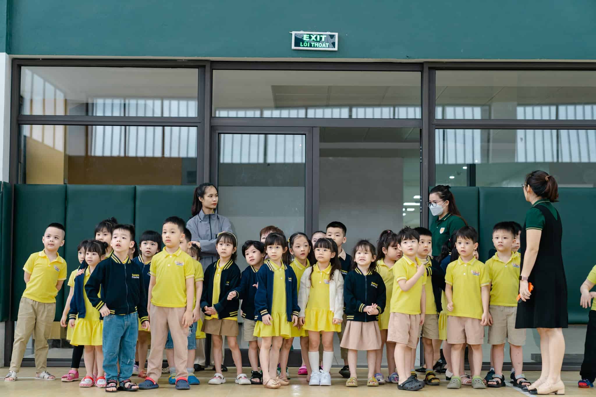 Các bạn nhỏ đã được các thầy cô của Iris School đưa đi khám phá dãy phòng học và các phòng chức năng như phòng vẽ, phòng đàn, phòng võ, bể bơi, thư viện và toàn bộ khuôn viên trường.