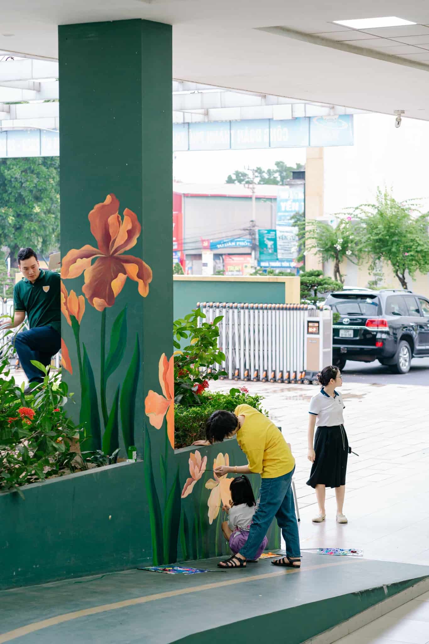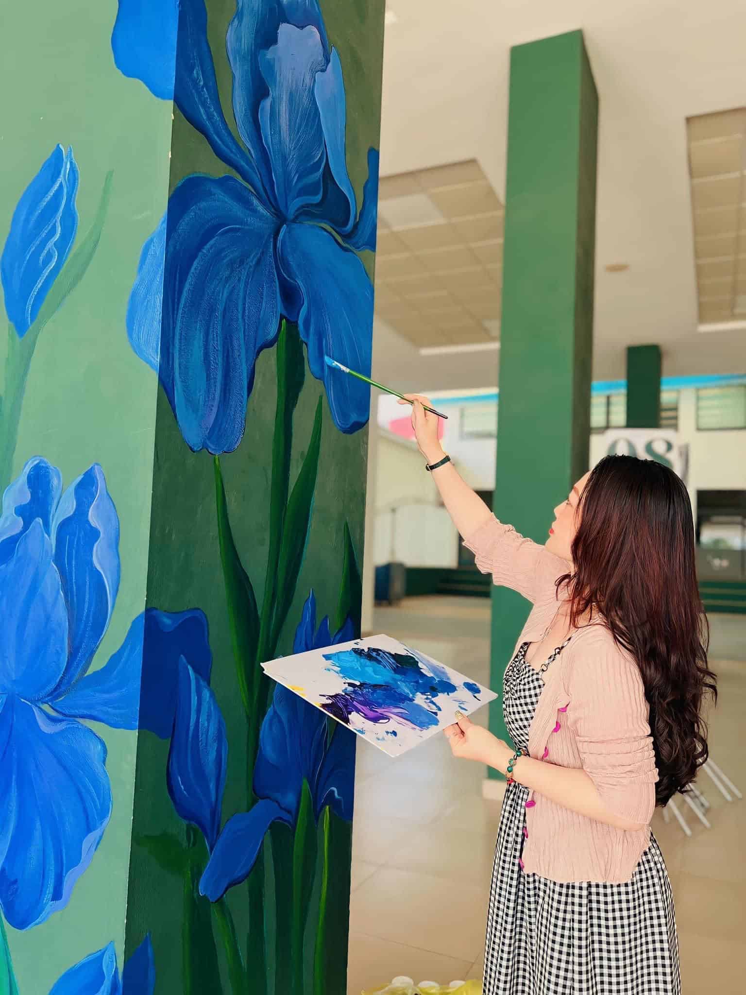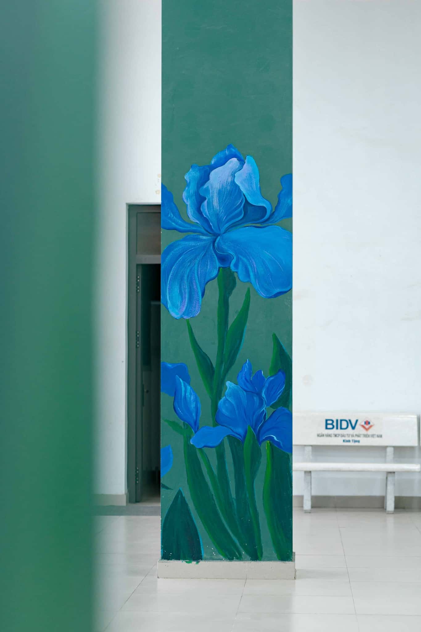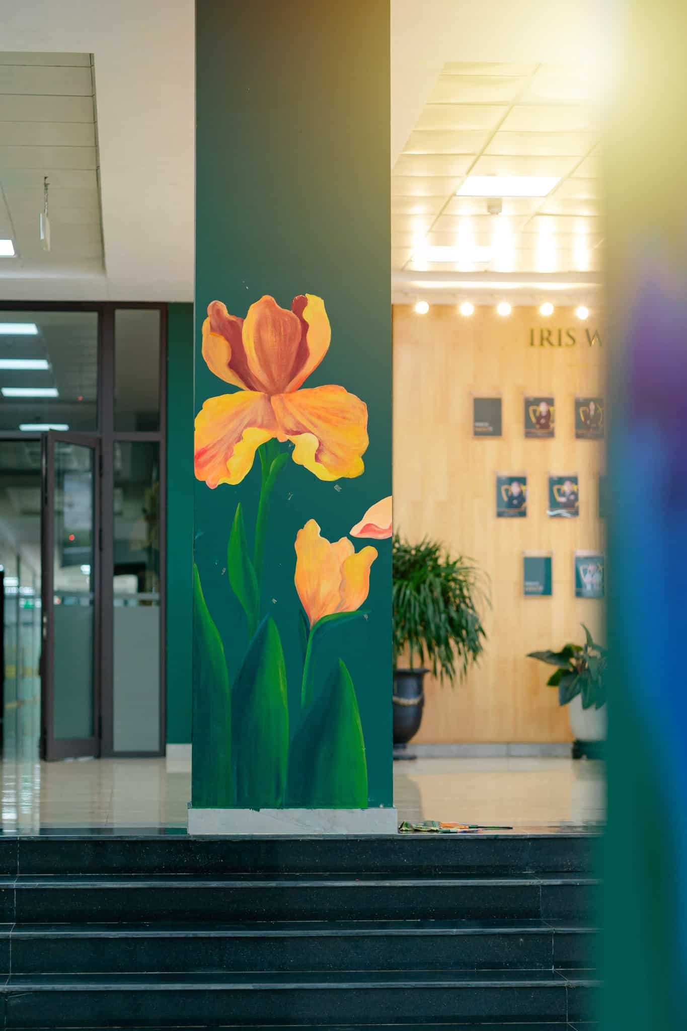 Hôm nay, bật mí với chúng mình một trong những góc vô cùng mới mẻ tại Iris School nha. Đó chính là những chiếc cột, những bức tường màu xanh đơn sắc đặc trưng của Iris qua bàn tay khéo léo của cô Tổng Hiệu trưởng, các thầy cô giáo tổ ATM và Irisers đam mê hội hoạ đã trở nên vô cùng sống động với những bông hoa diên vỹ xinh đẹp đua nhau khoe sắc.