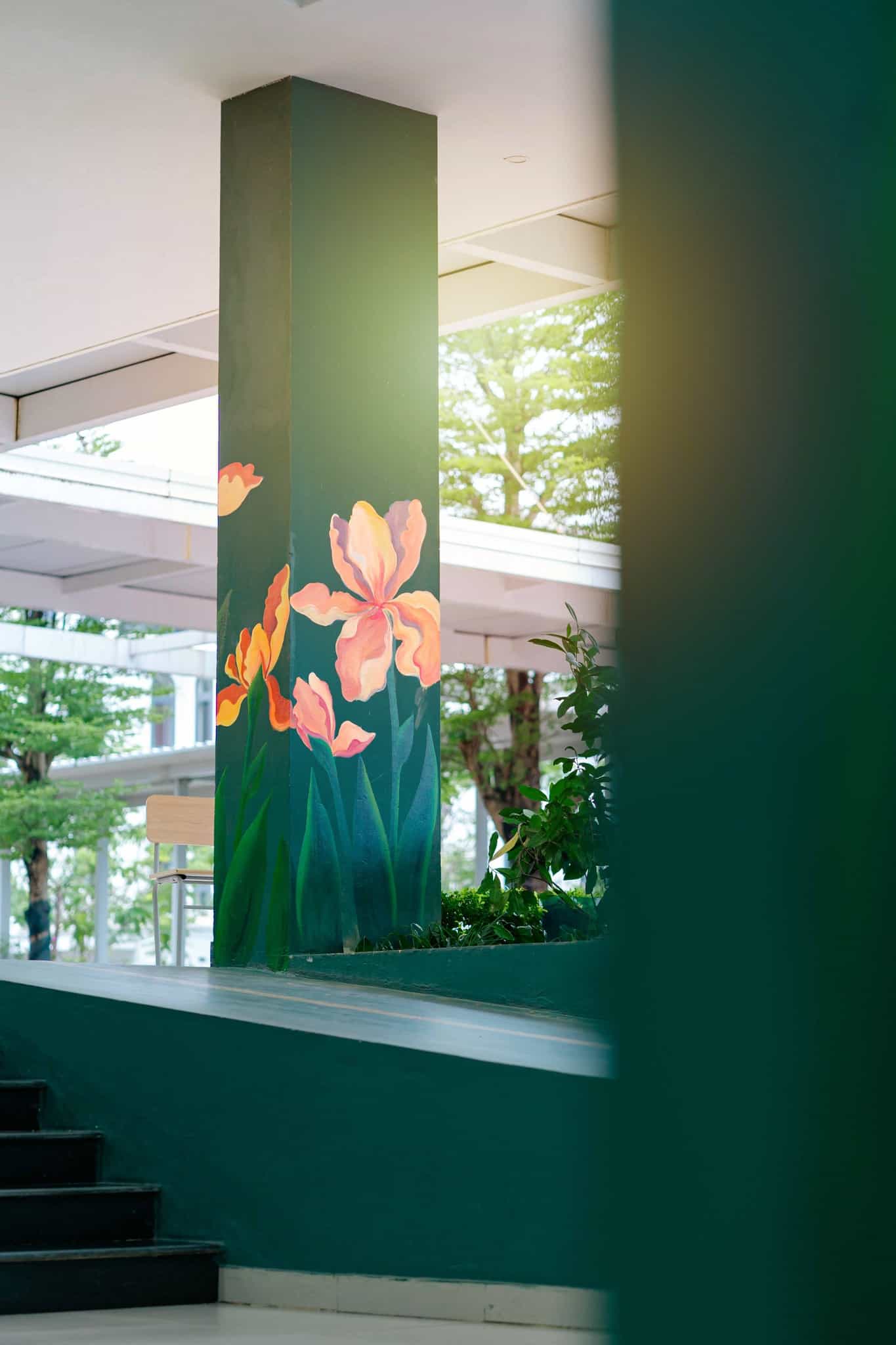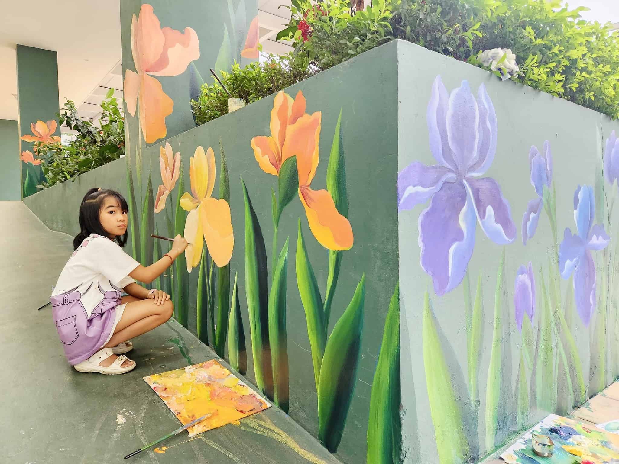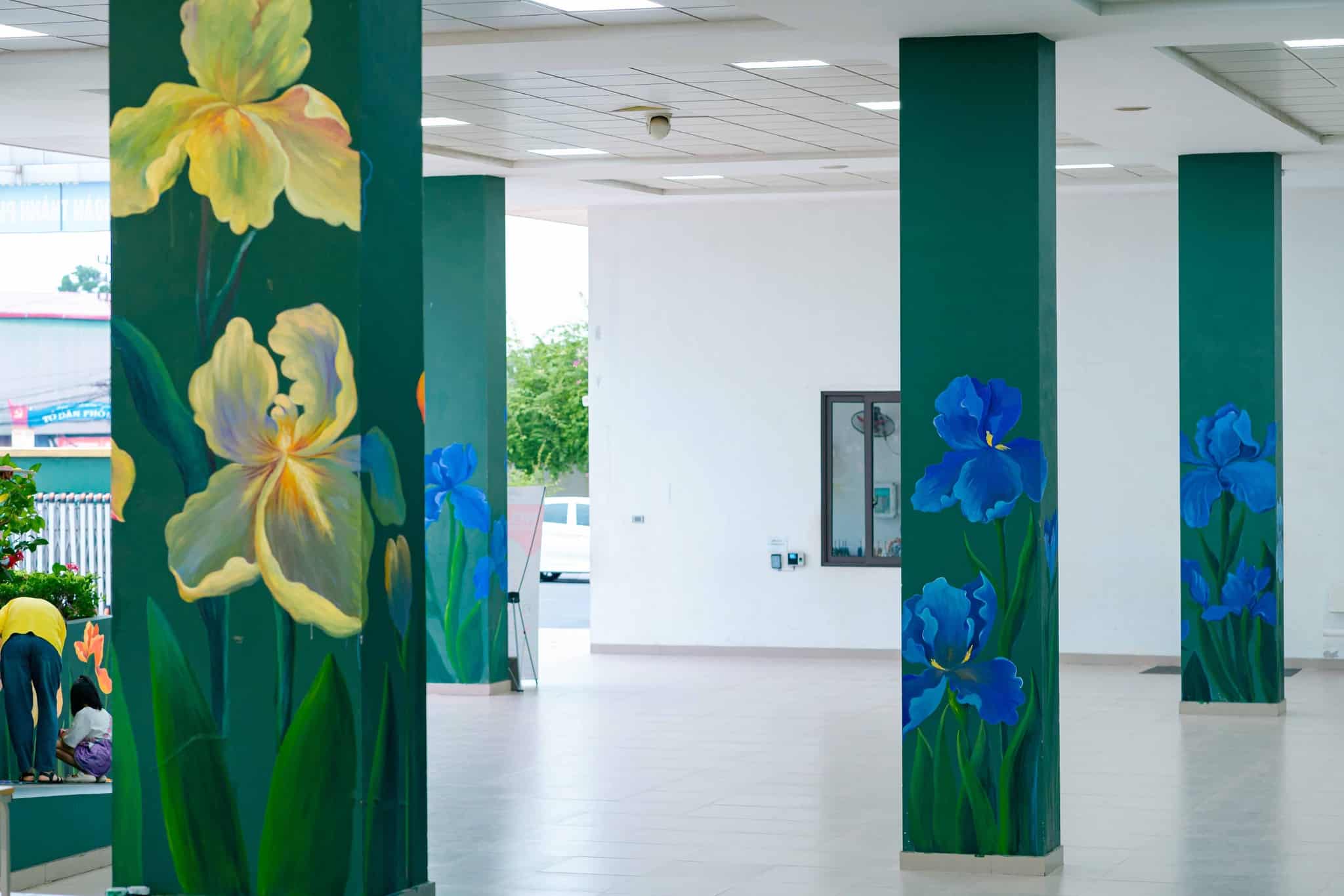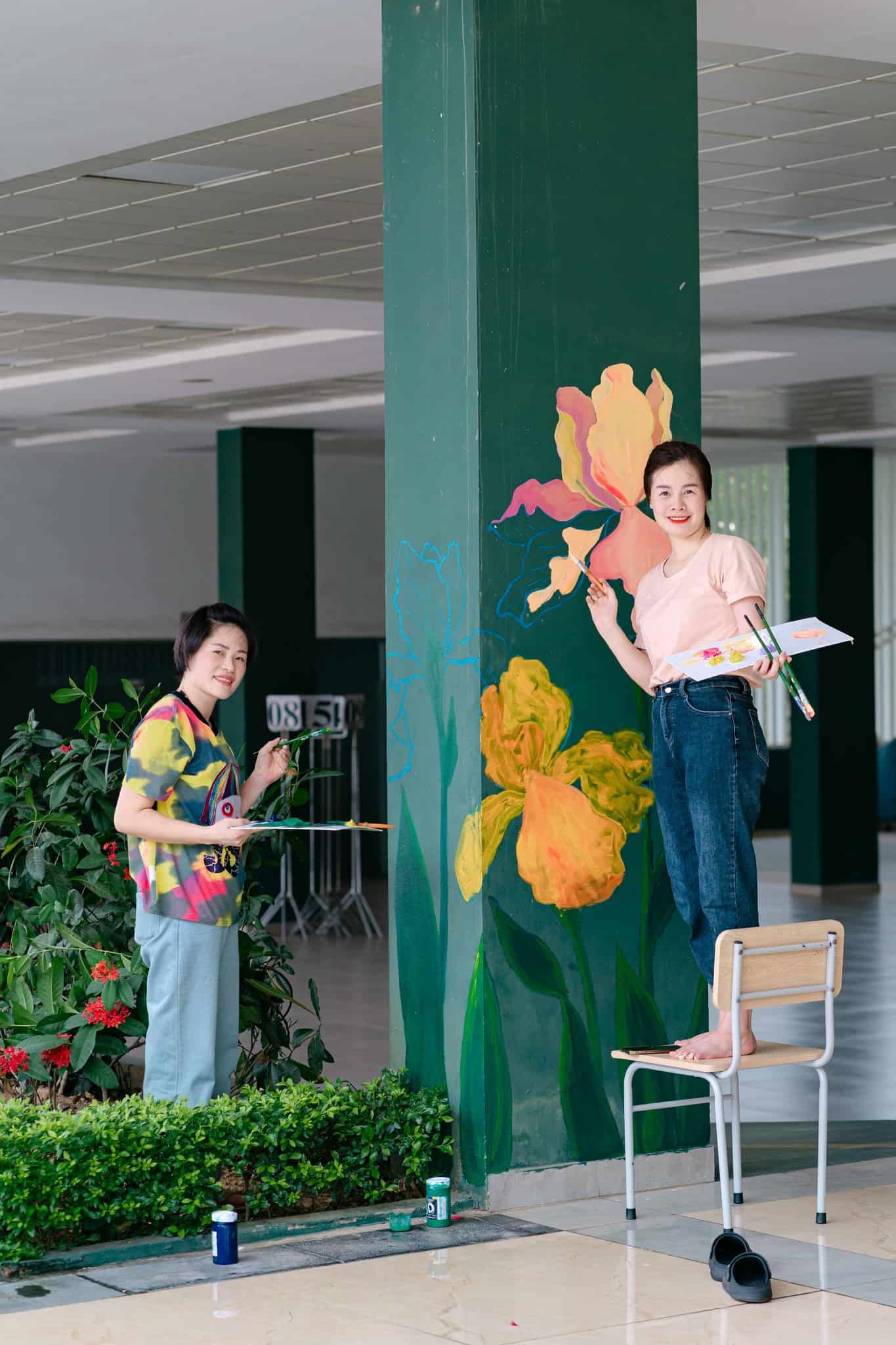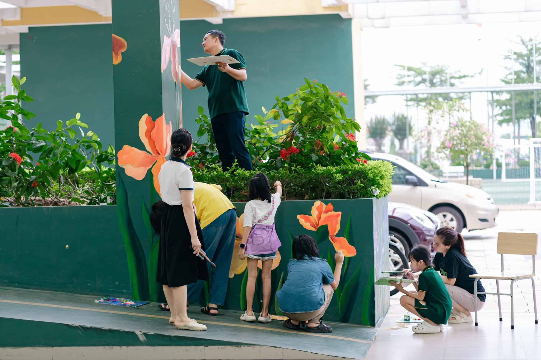 Hôm nay, bật mí với chúng mình một trong những góc vô cùng mới mẻ tại Iris School nha. Đó chính là những chiếc cột, những bức tường màu xanh đơn sắc đặc trưng của Iris qua bàn tay khéo léo của cô Tổng Hiệu trưởng, các thầy cô giáo tổ ATM và Irisers đam mê hội hoạ đã trở nên vô cùng sống động với những bông hoa diên vỹ xinh đẹp đua nhau khoe sắc.